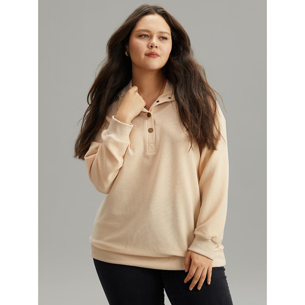 Plus Size Plisse Lapel Collar Button Up Sweatshirt Women Apricot Casual Elastic cuffs Lapel Collar Dailywear Sweatshirts BloomChic 30/6X