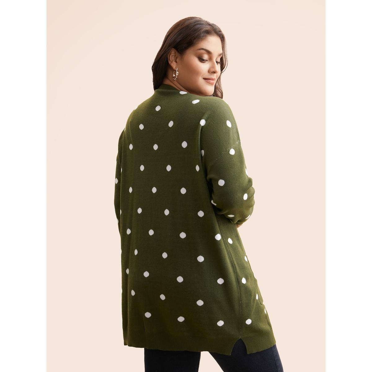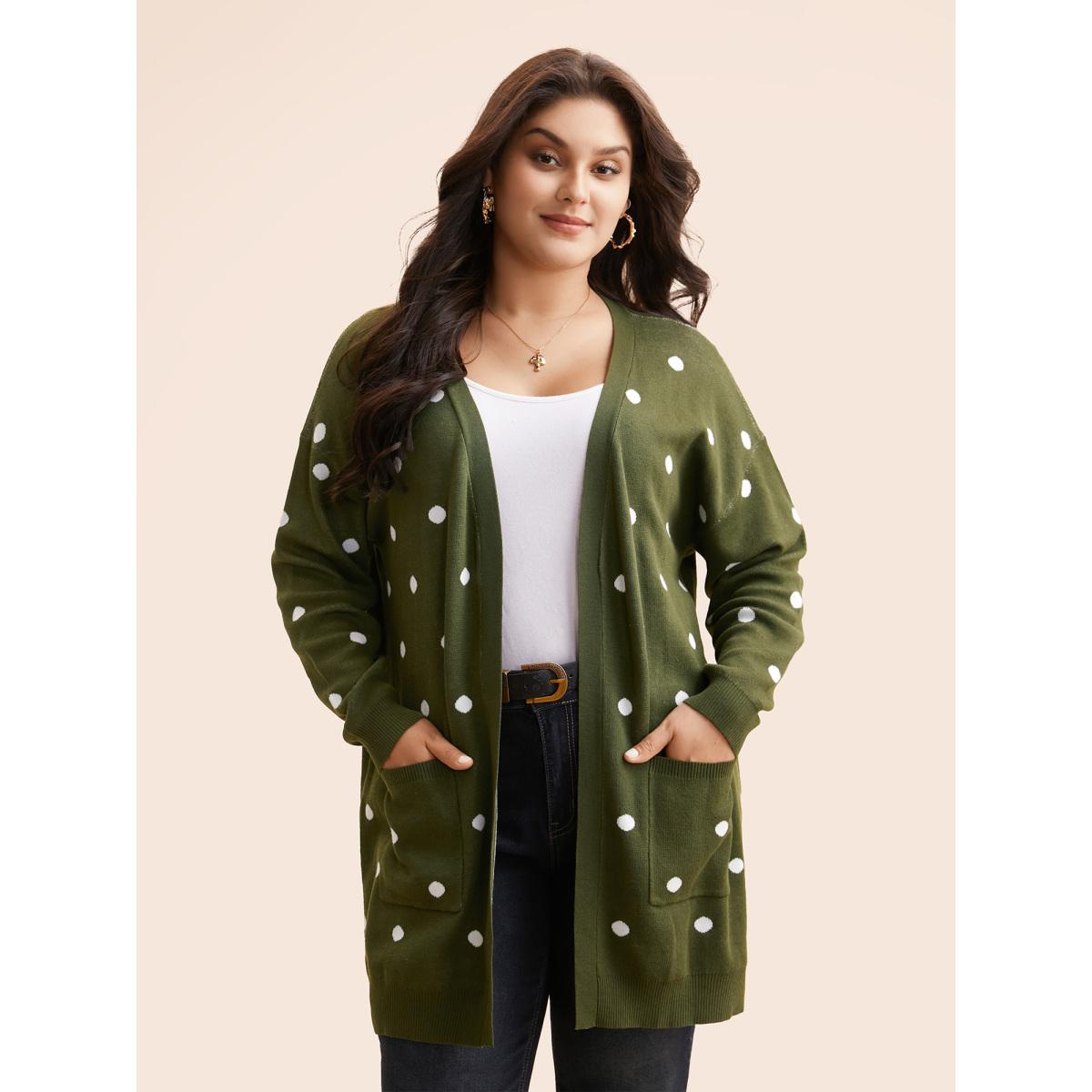 Plus Size Polka Dot Kimono Collar Patch Pocket Cardigan ArmyGreen Women Casual Loose Long Sleeve Everyday Cardigans BloomChic 10/M