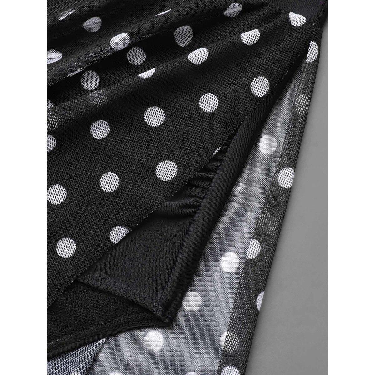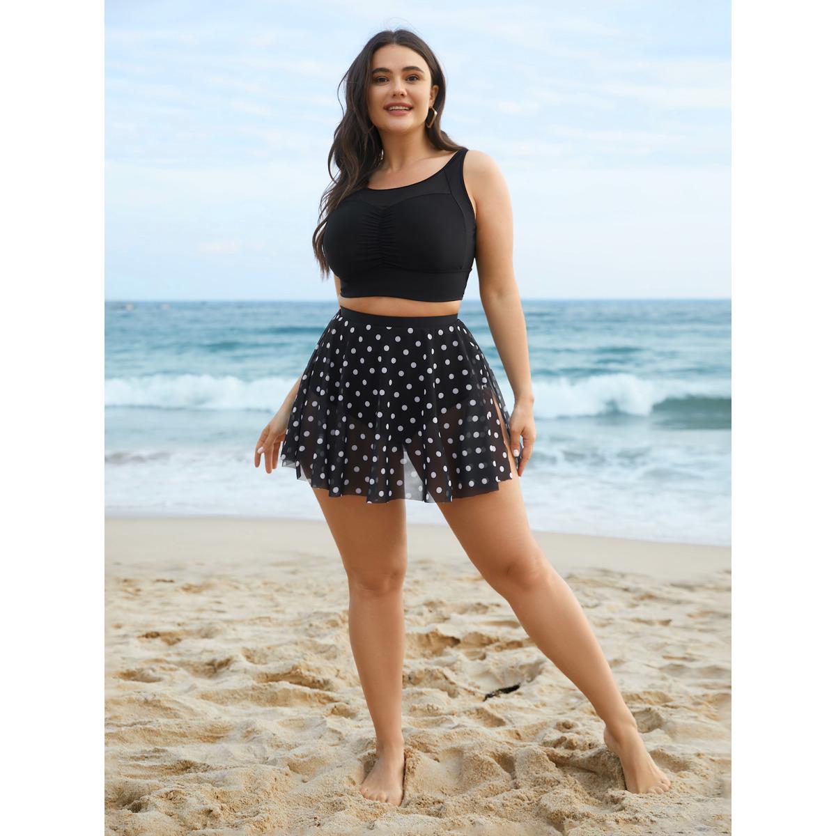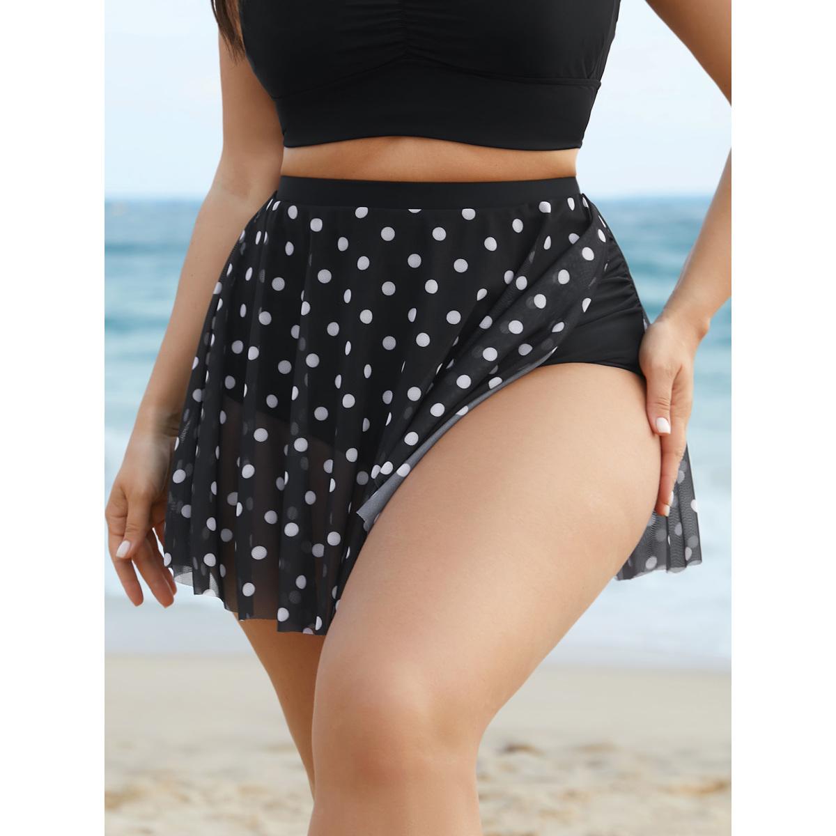 Plus Size Polka Dot Split Side Swim Skirt Women's Swimwear Black Beach Slit High stretch Bodycon High Rise Side seam pocket Curve Swim Bottoms BloomChic 10/M
