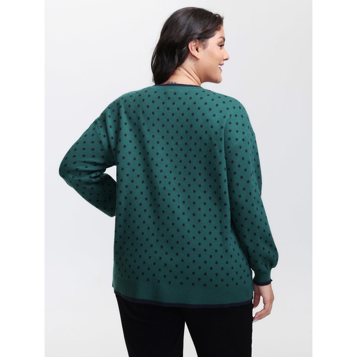 Plus Size Polka Dot Drop Shoulder Sleeve Pullover Black Women Casual Loose Long Sleeve Round Neck Everyday Pullovers BloomChic 12/L