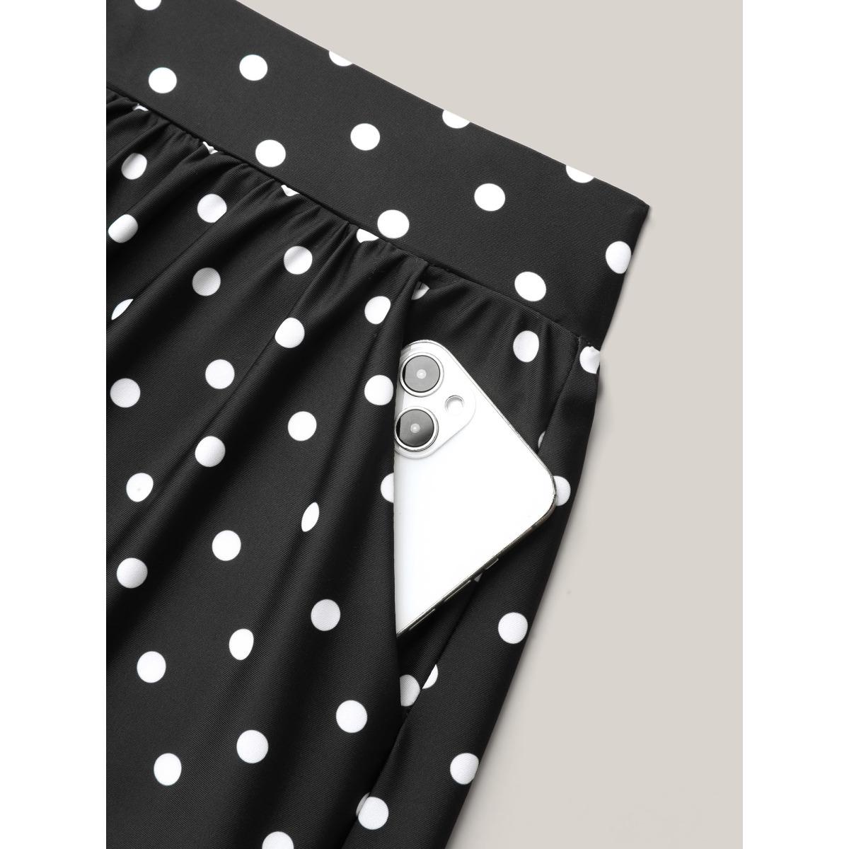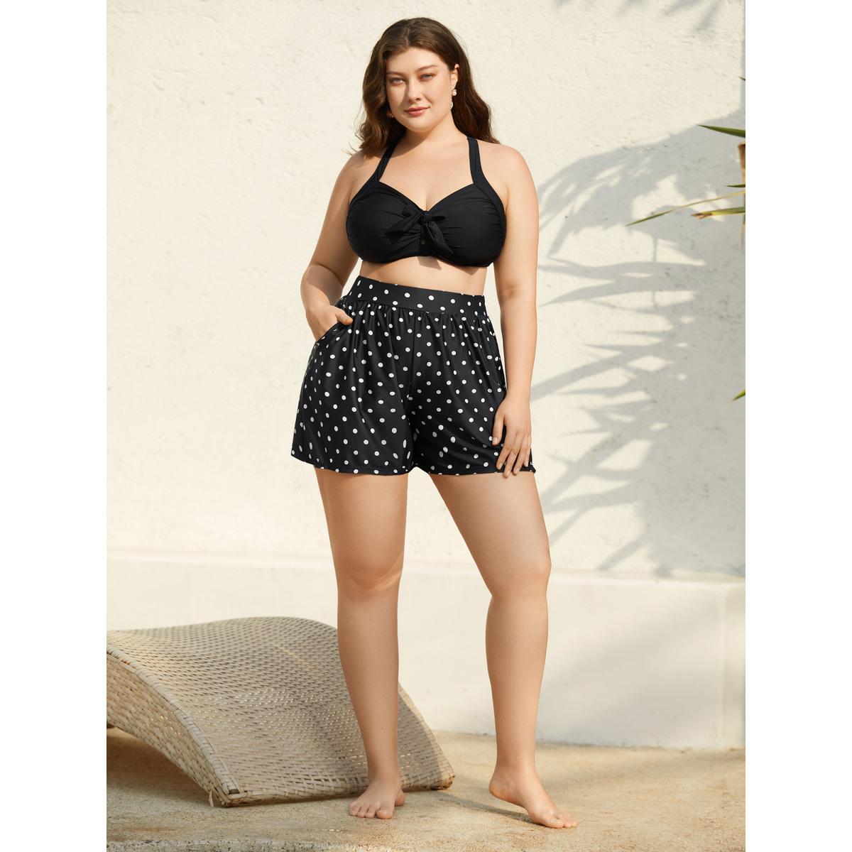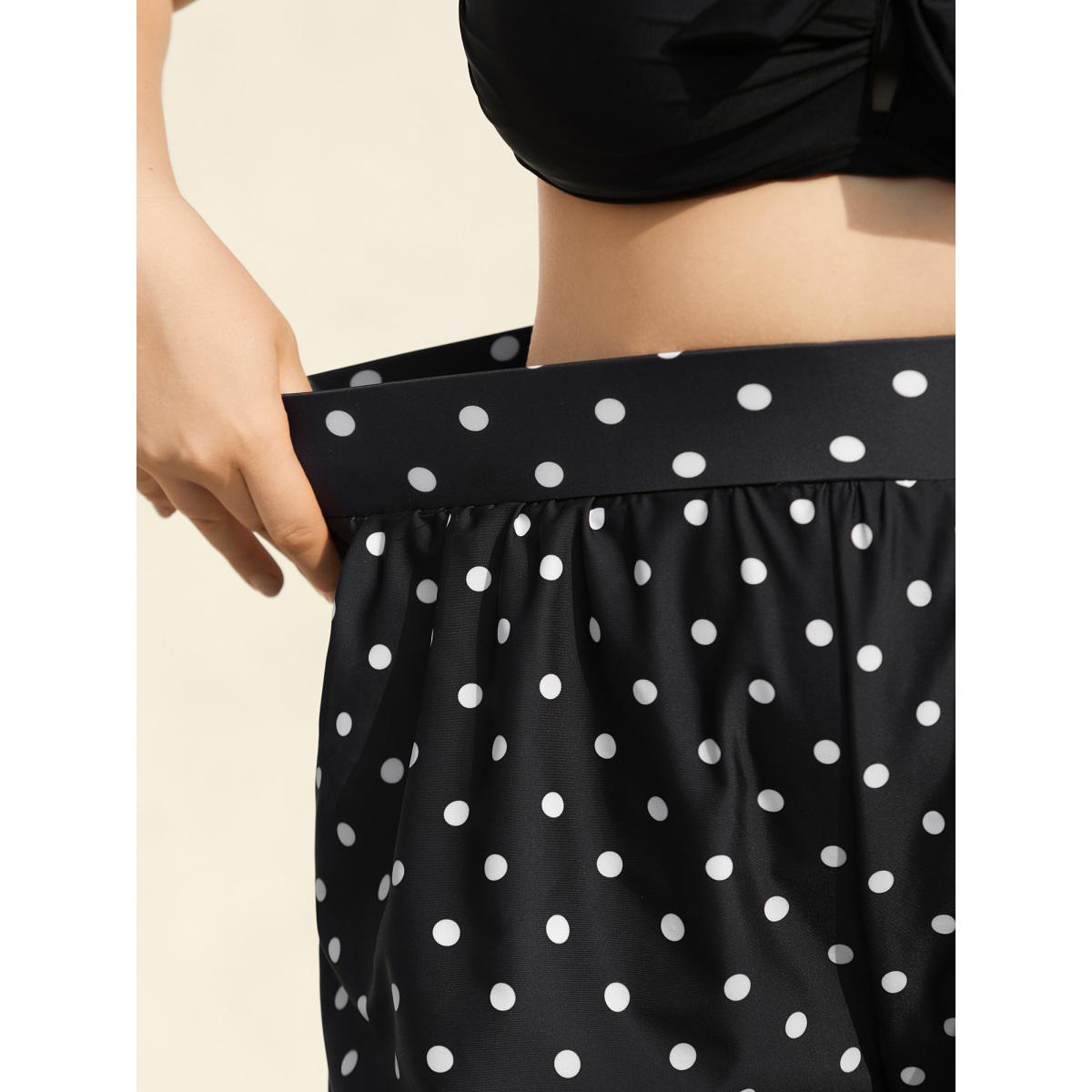 Plus Size Polka Dots Print Pleated Swim Bottoms Women's Swimwear Black Beach Gathered High stretch Bodycon High Rise Slanted pocket Curve Swim Bottoms BloomChic 14-16/1X