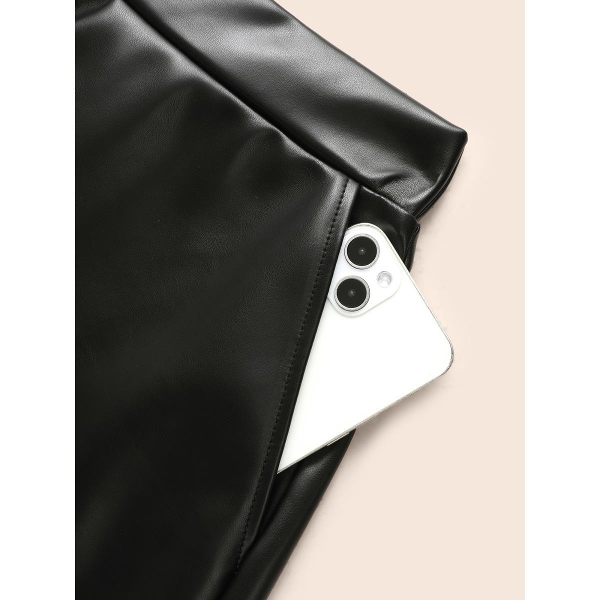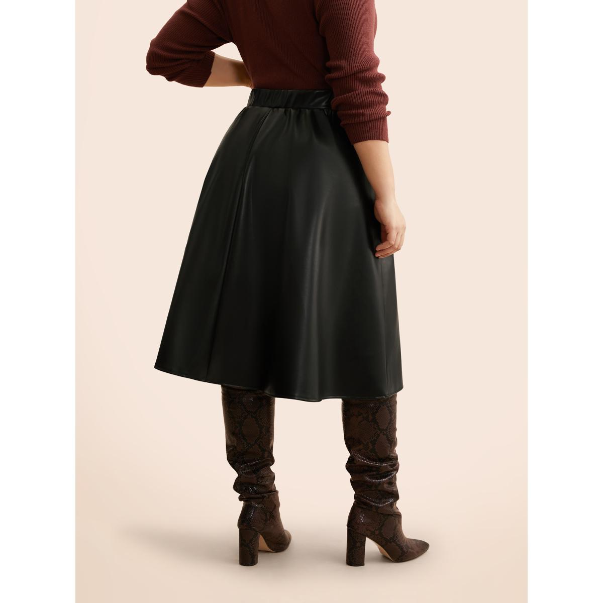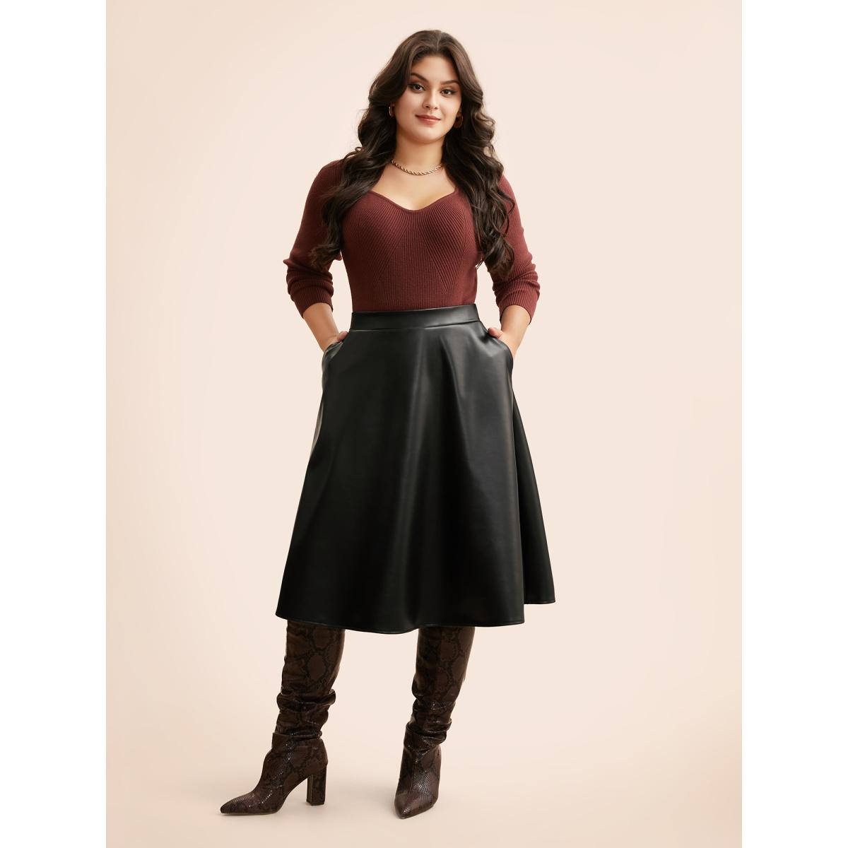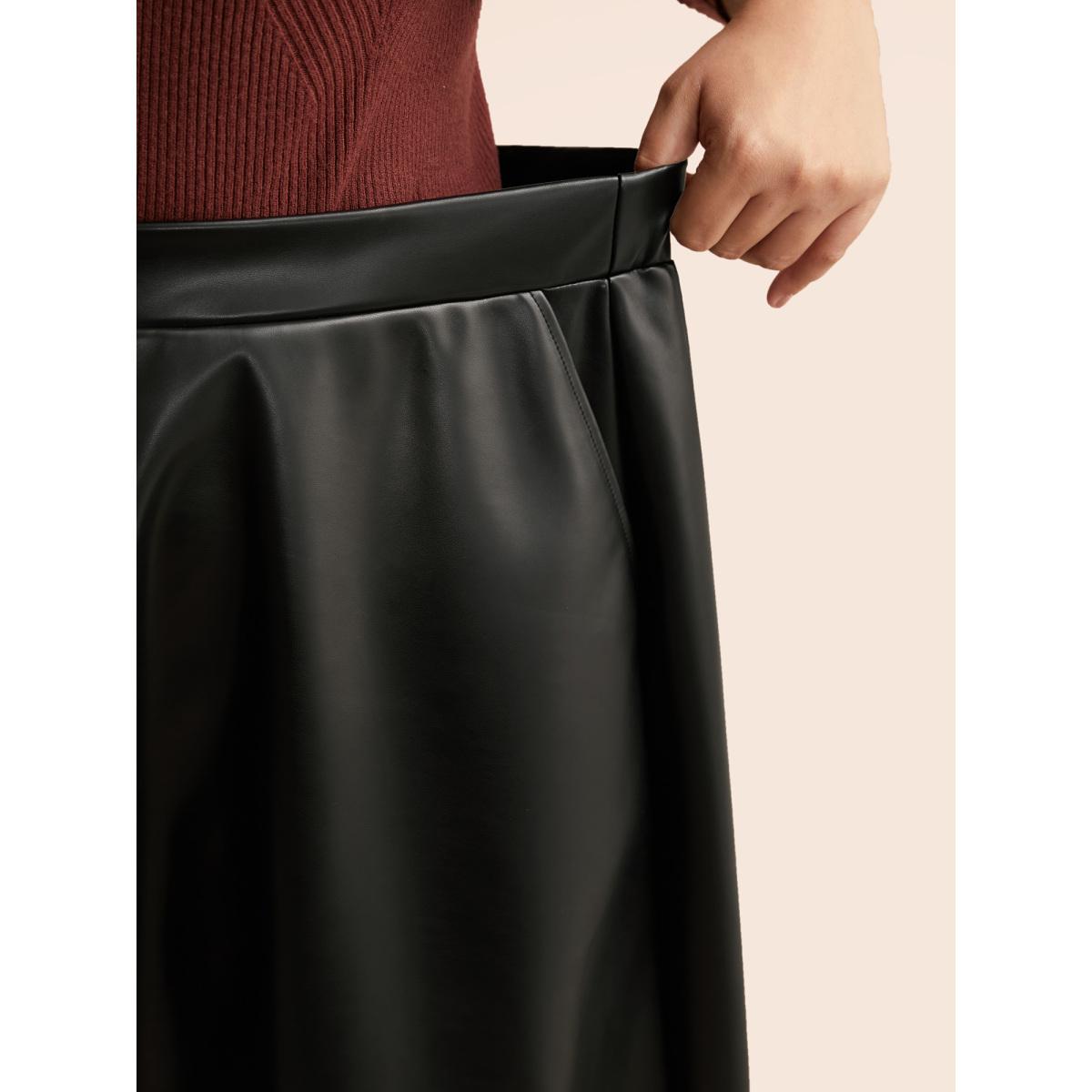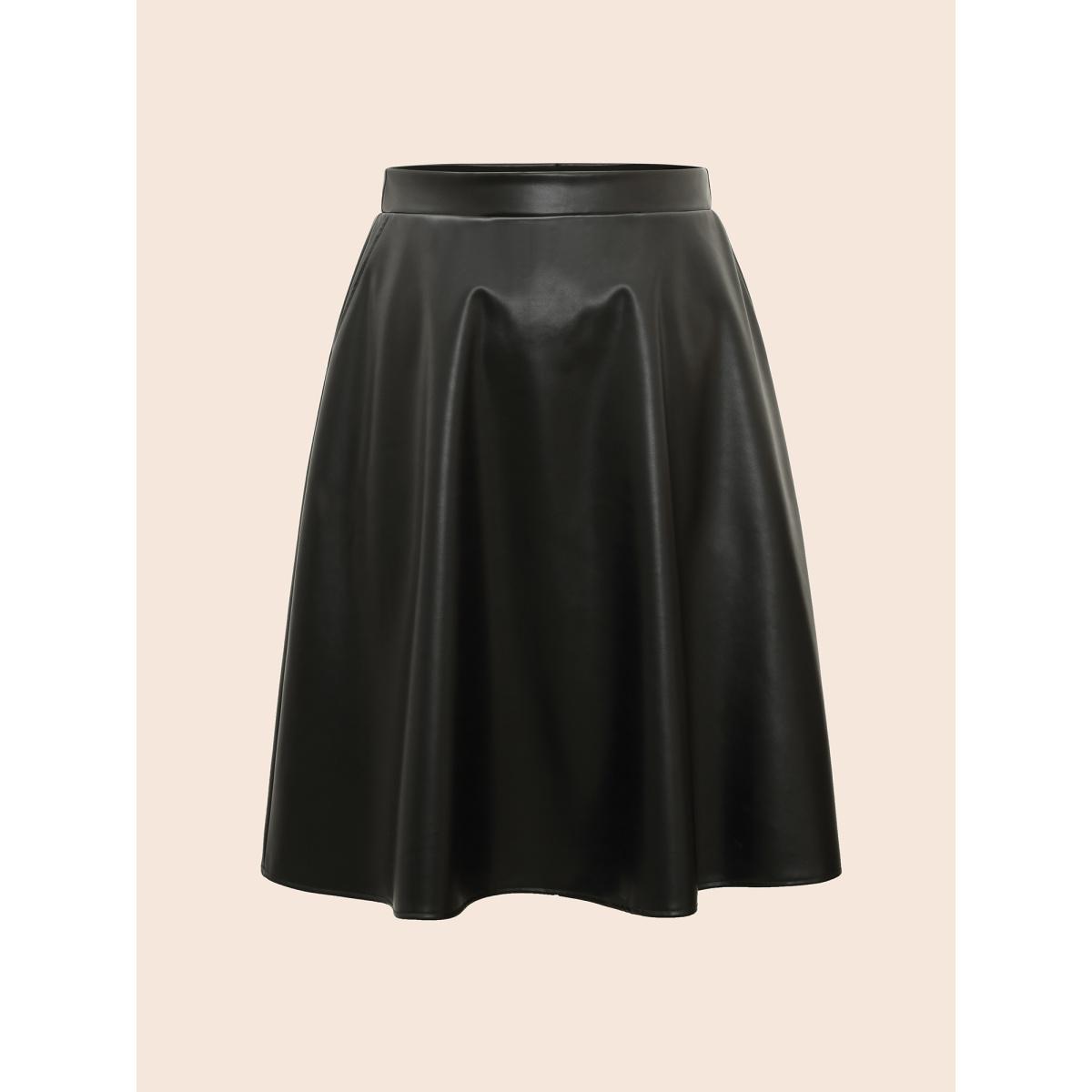Plus Size PU Leather A-Line Skirt Women Black Casual Non Loose Low stretch Side seam pocket Everyday Skirts BloomChic 22-24/3X