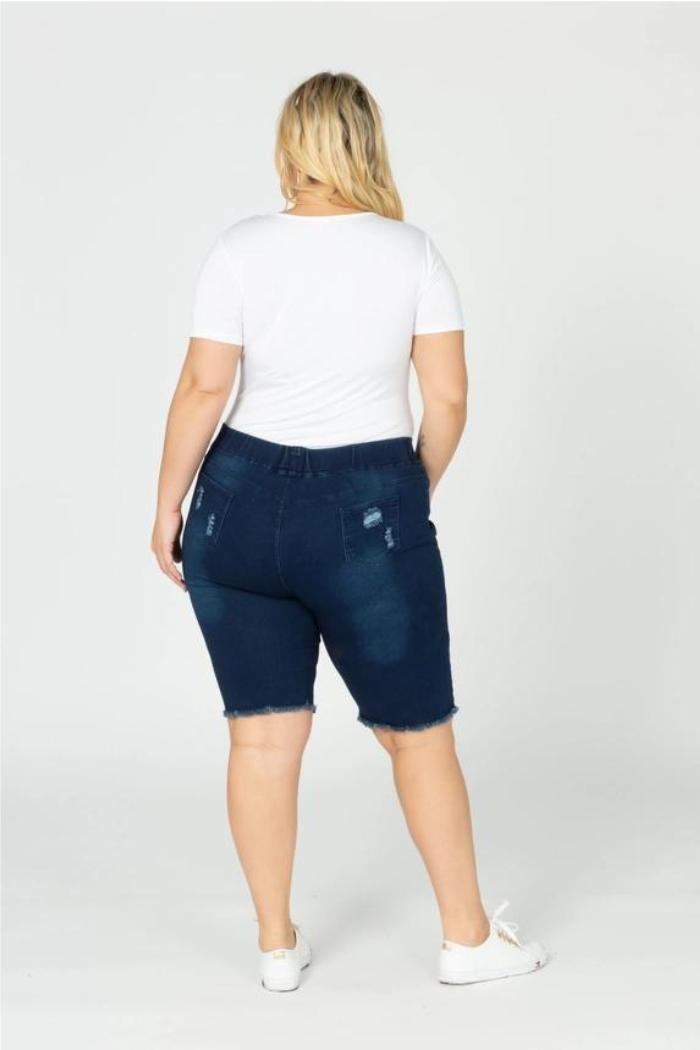 These Plus Size Pull-On Super Stretch Distressed Bermuda Shorts provide both style and comfort. Made with distressed denim, these high waist shorts have an elastic banded waist and pockets for added functionality. Crafted with 75% cotton, 23% polyester, and 2% spandex, these shorts offer a flattering fit for any occasion.