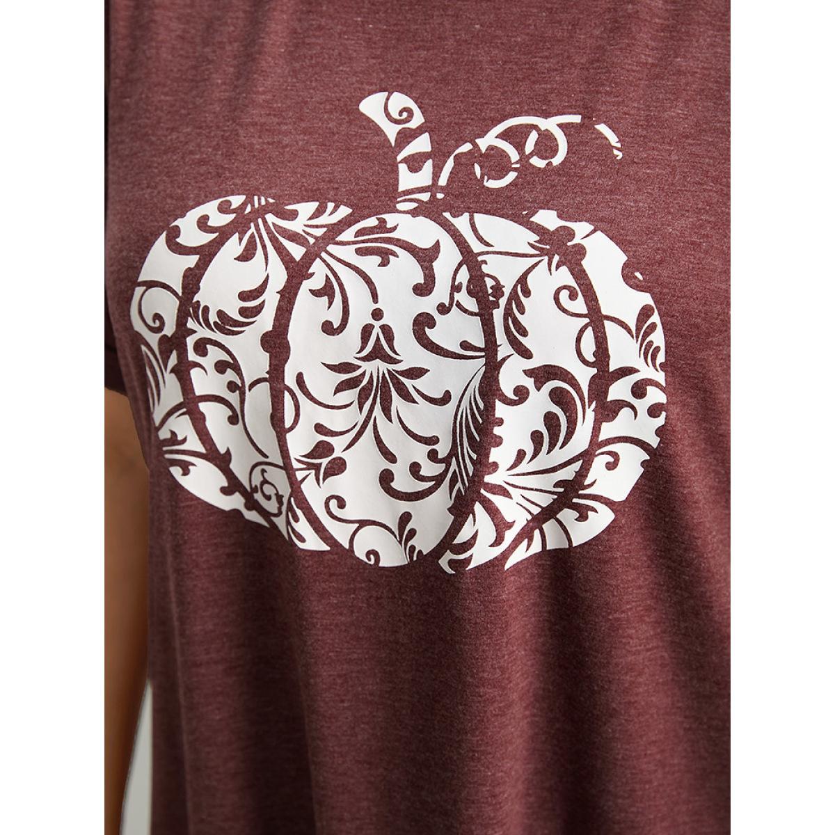 Plus Size Pumpkin Print Round Neck T-shirt Russet Women Casual Printed Art&design Dailywear T-shirts BloomChic 14-16/1X Product Image