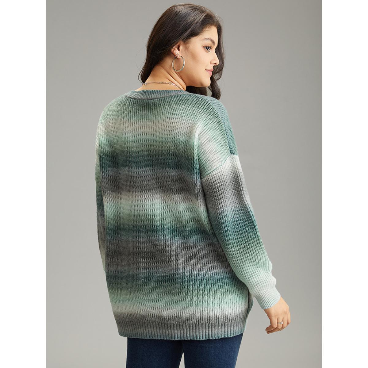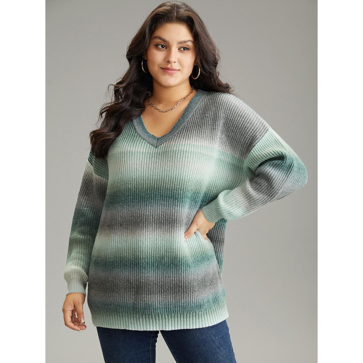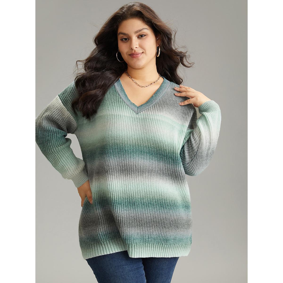Plus Size Rainbow Ombre V Neck Loose Pullover Emerald Women Casual Loose Long Sleeve V-neck Everyday Pullovers BloomChic 26/4X