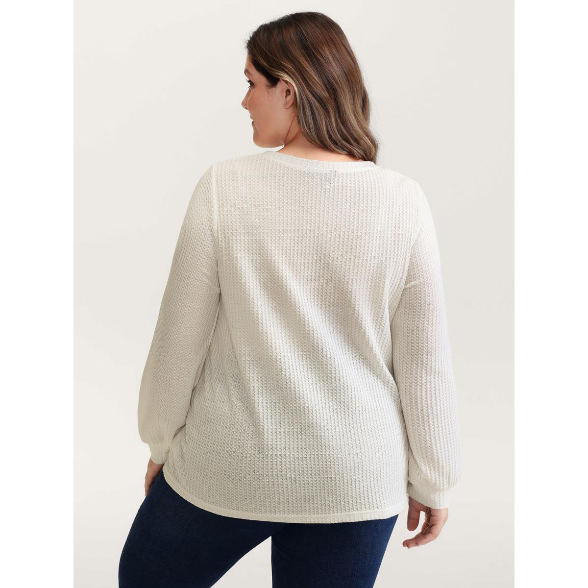 Plus Size Stretchy Textured Pleated Round Neck T-Shirt Ivory Women Leisure Texture Round Neck Casual T-shirts BloomChic 28/5X