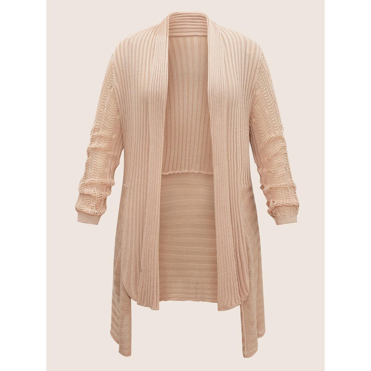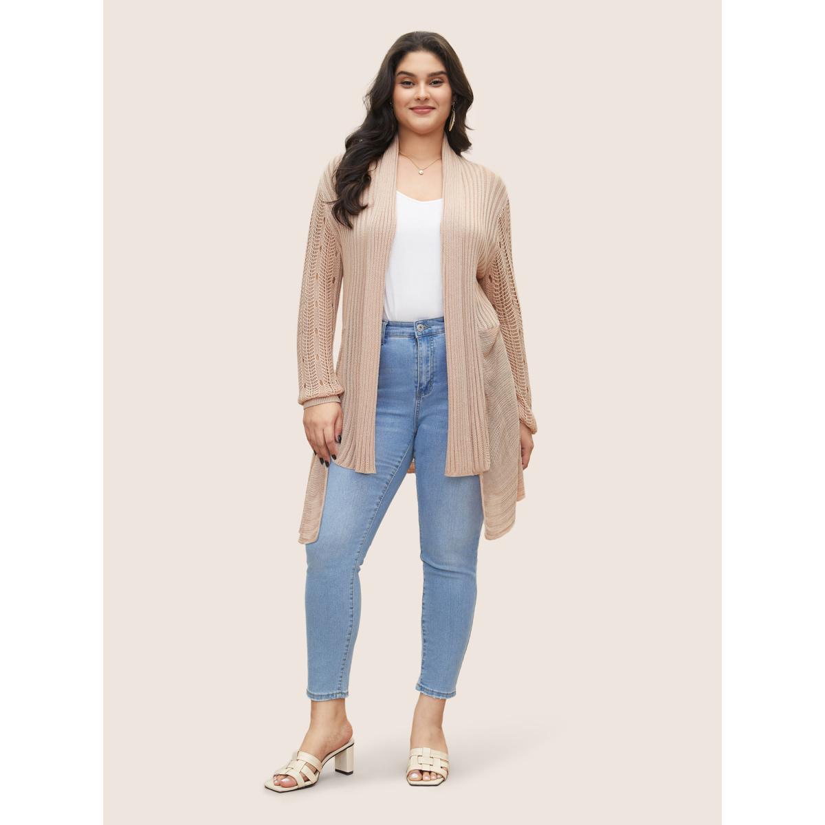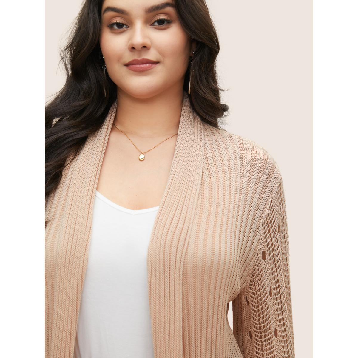 Plus Size Rayon Asymmetrical Hem Cut Out Cardigan Apricot Women Casual Long Sleeve Everyday Cardigans BloomChic 22-24/3X