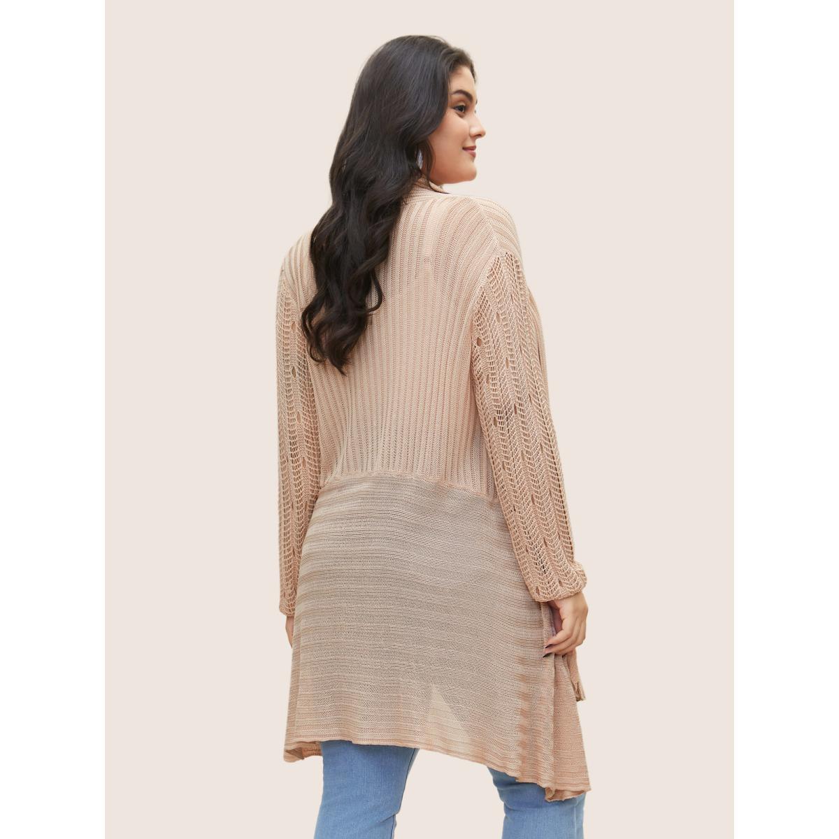 Plus Size Rayon Asymmetrical Hem Cut Out Cardigan Apricot Women Casual Long Sleeve Everyday Cardigans BloomChic 22-24/3X Product Image