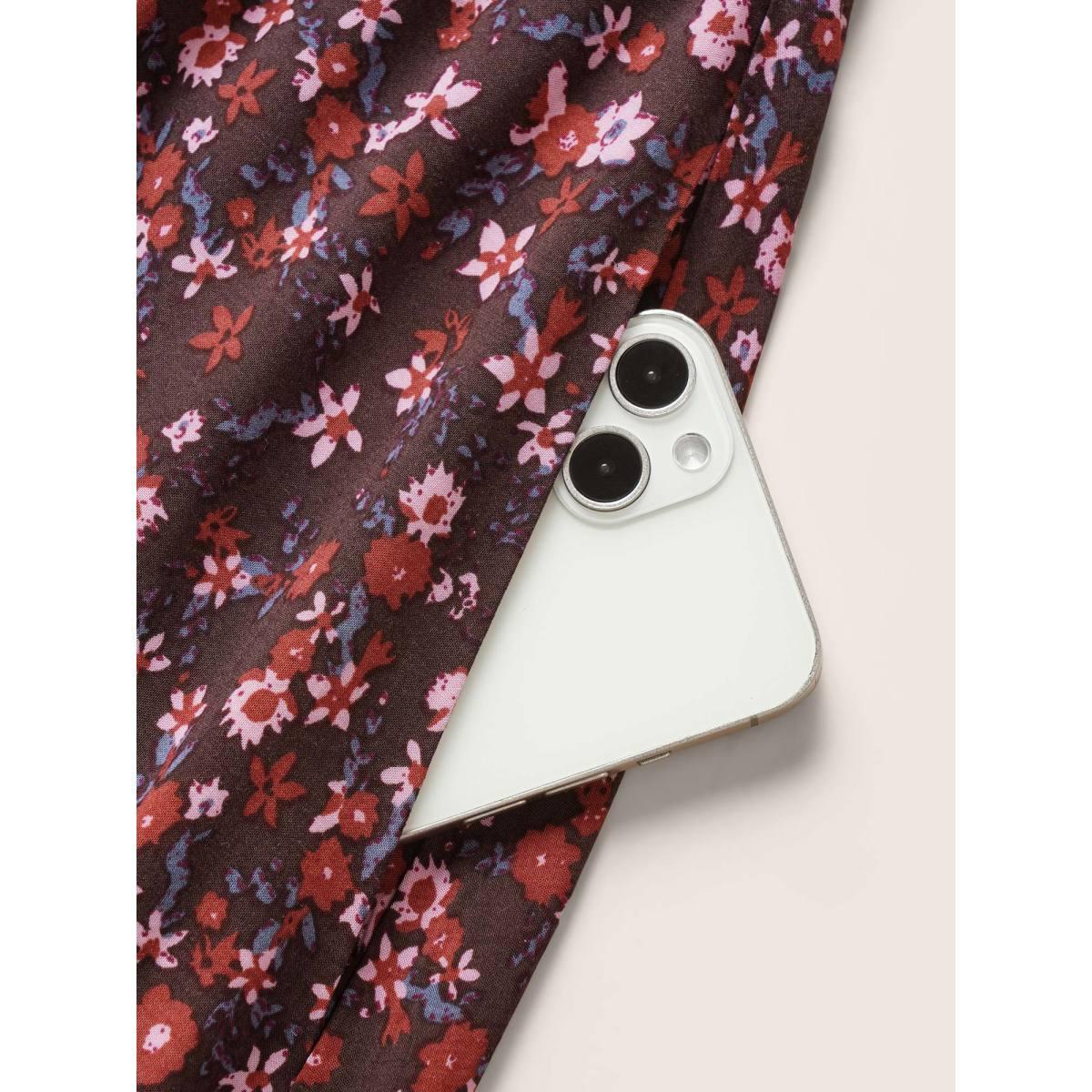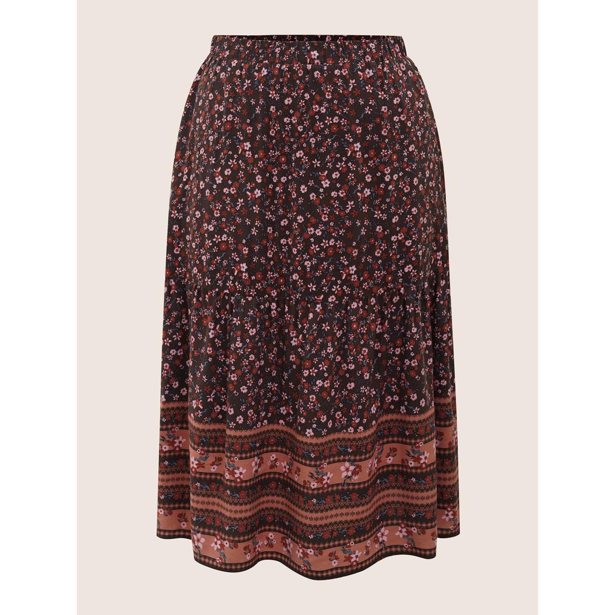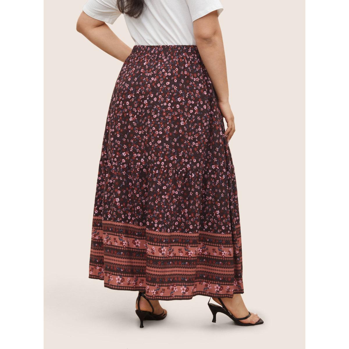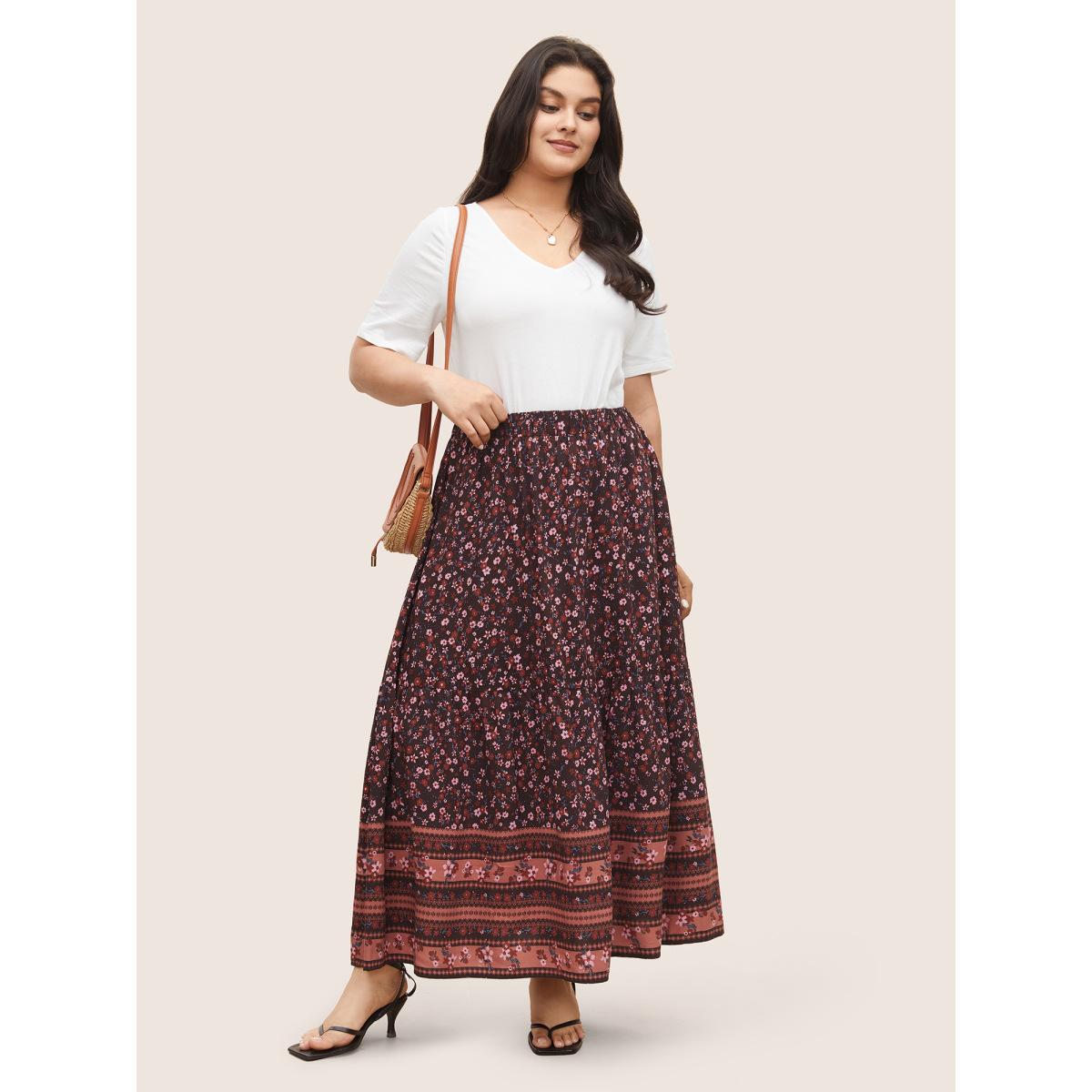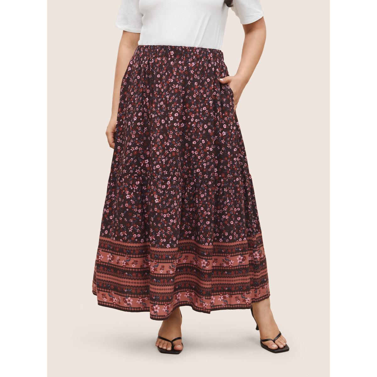 Plus Size Rayon Boho Print Elastic Waist Pocket Skirt Women Eggplant Resort Non No stretch Slanted pocket Vacation Skirts BloomChic 30/6X