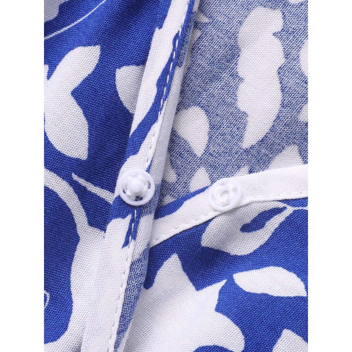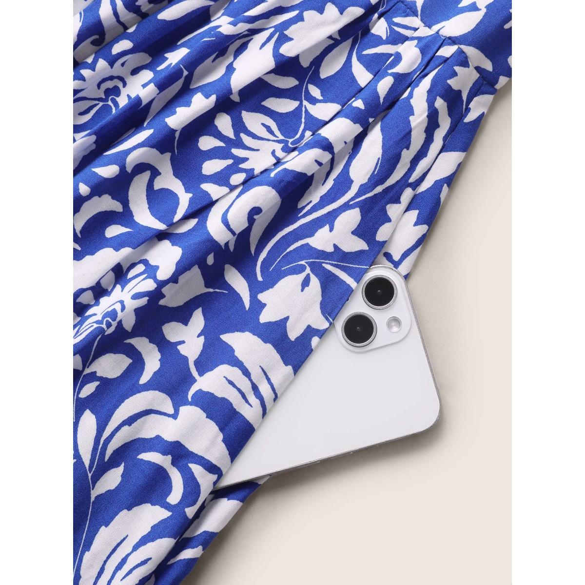 Plus Size Boho Print Pleated Ruffle Sleeve Dress Blue Women Resort Ruffles Notched collar Cap Sleeve Curvy BloomChic 10/M