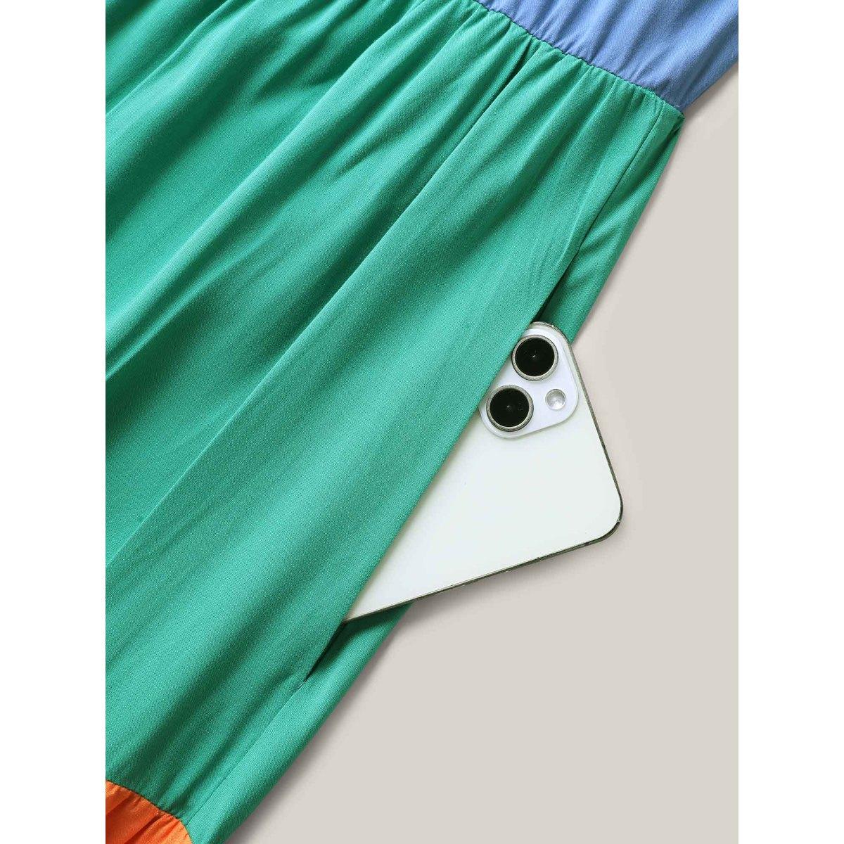 Plus Size Rayon Color Block Layered Sleeve Maxi Dress Stone Women Playful V-neck Short sleeve Curvy BloomChic 14-16/1X