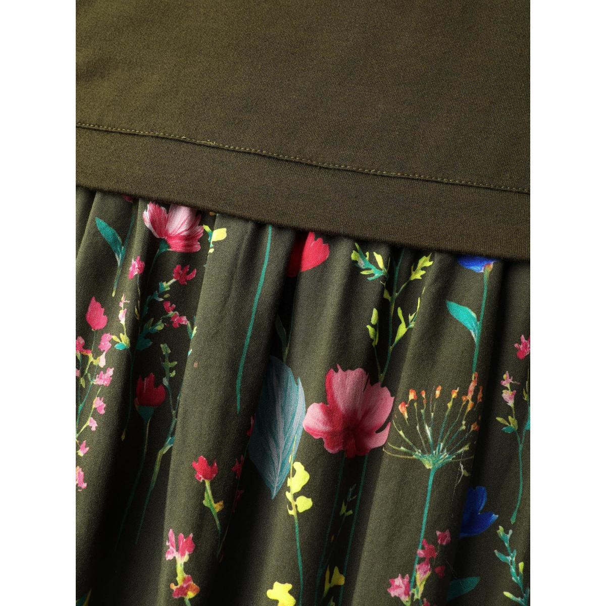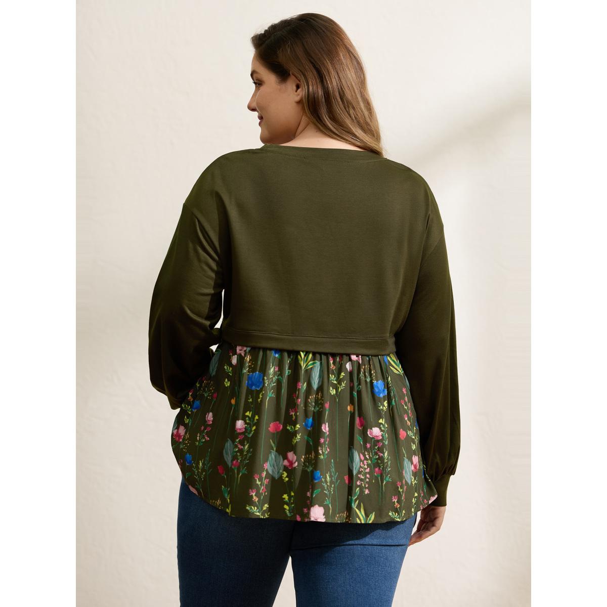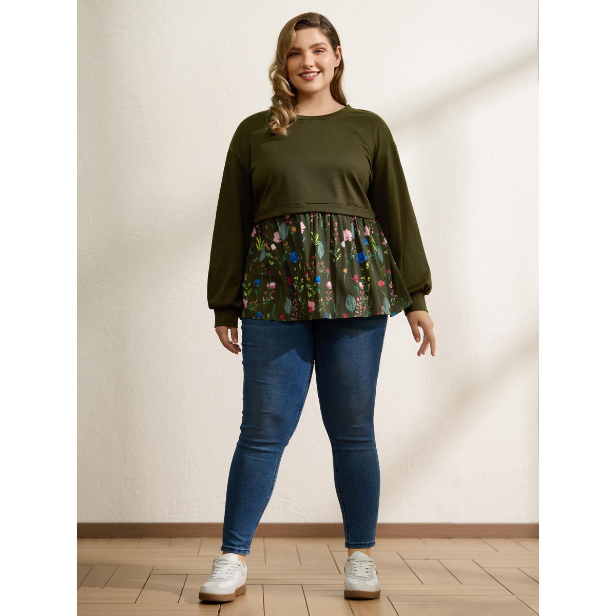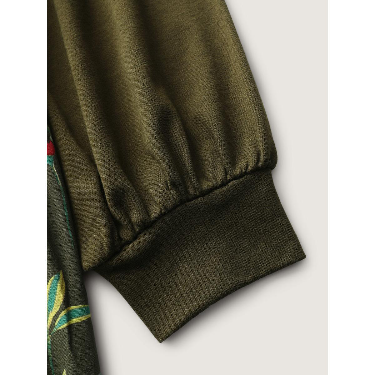 Plus Size Rayon Floral Print Contrast Sweatshirt Women ArmyGreen Leisure Contrast Round Neck Casual Sweatshirts BloomChic 12/L