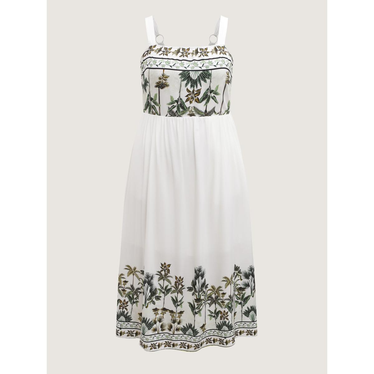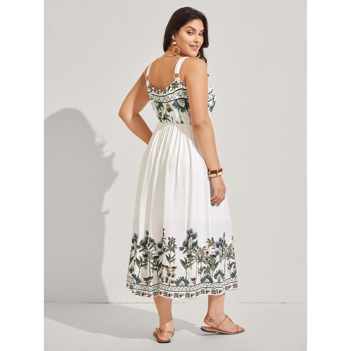 Plus Size Rayon Tropical Paradise Pockets Midi Dress Ivory Women Non Sleeveless Curvy BloomChic 22-24/3X