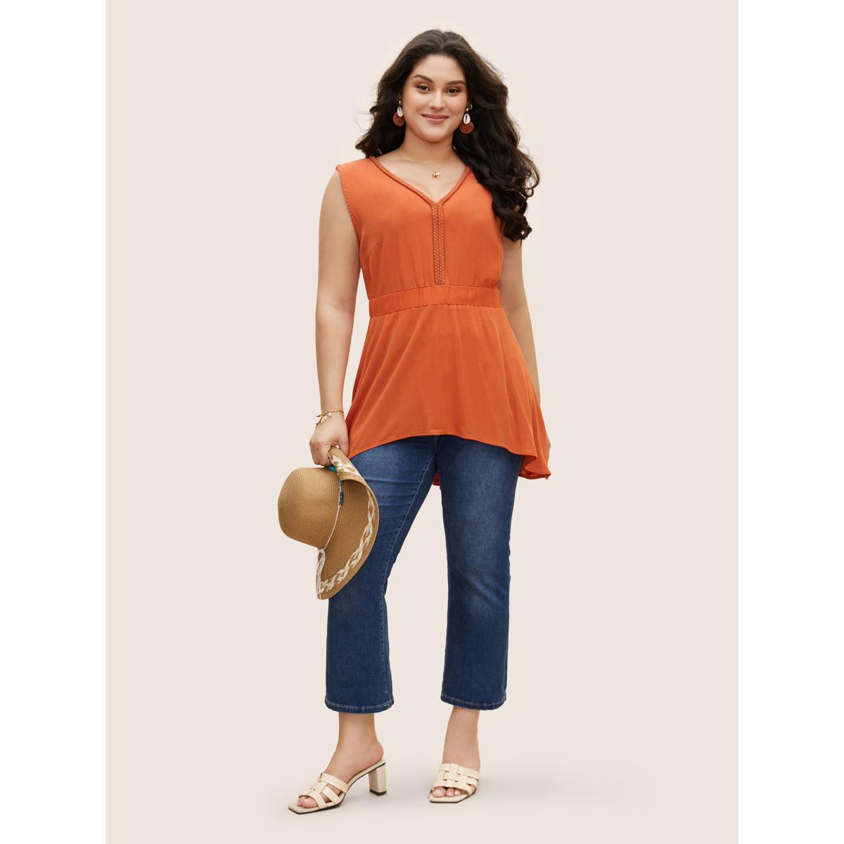 Plus Size Rayon V Neck Contrast Webbing Tank Top Women Brightorange Resort Gathered V-neck Vacation Tank Tops Camis BloomChic 30/6X