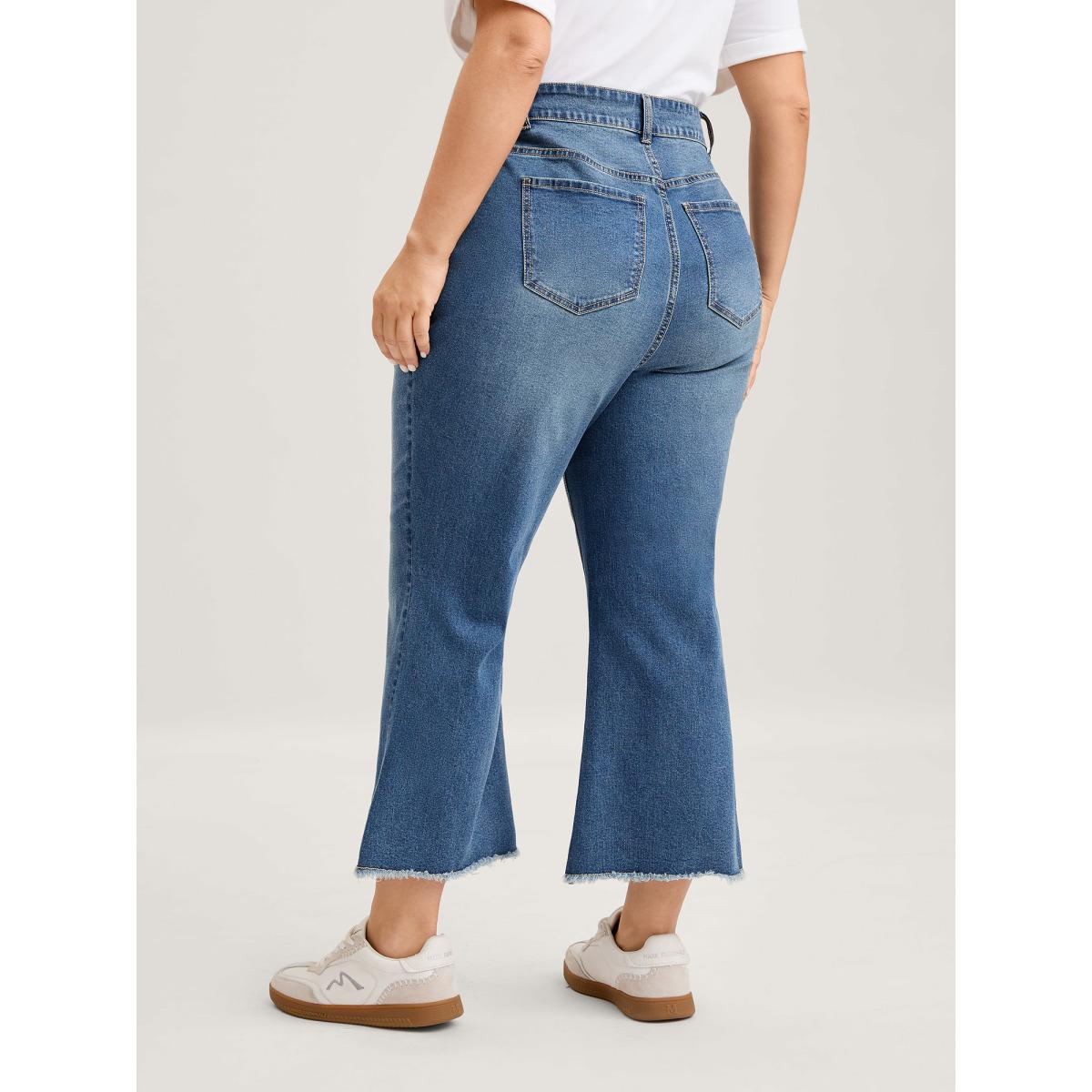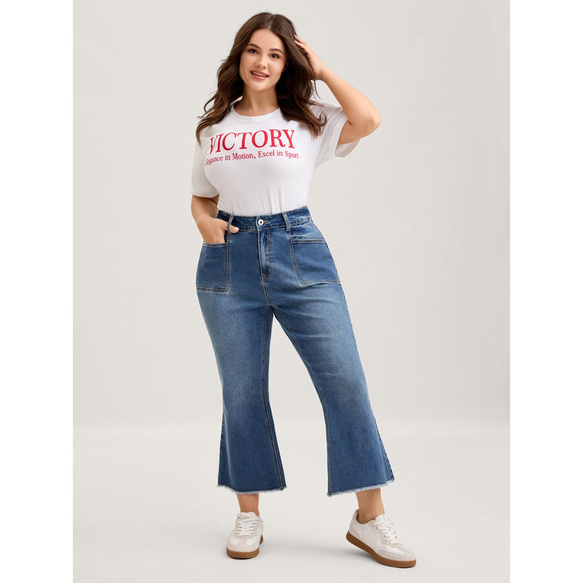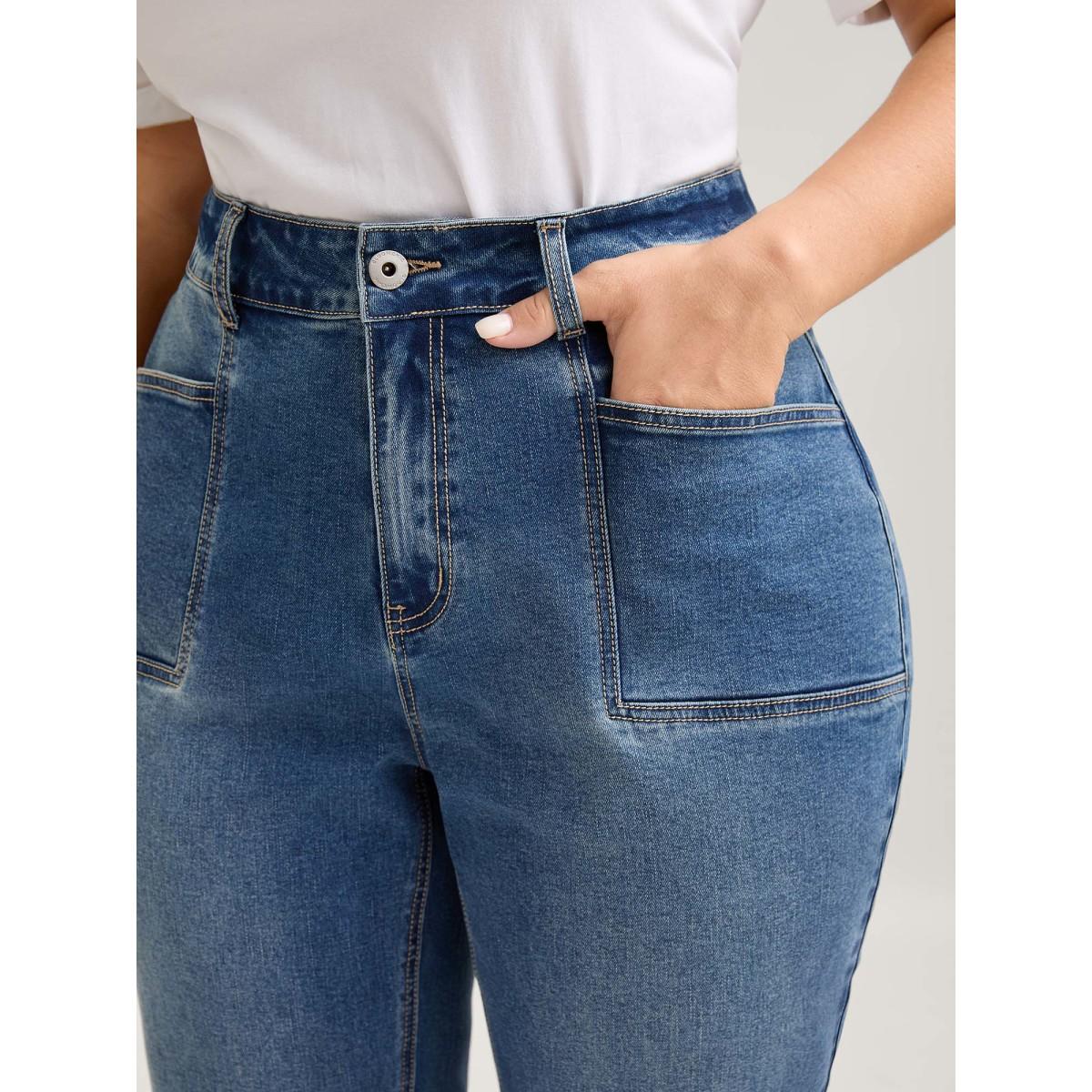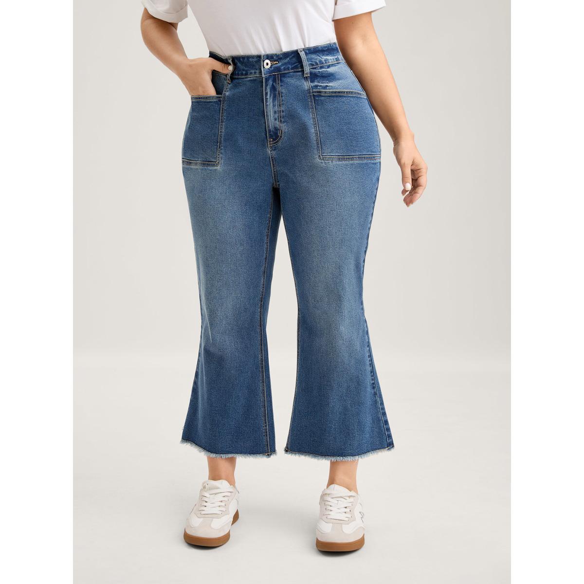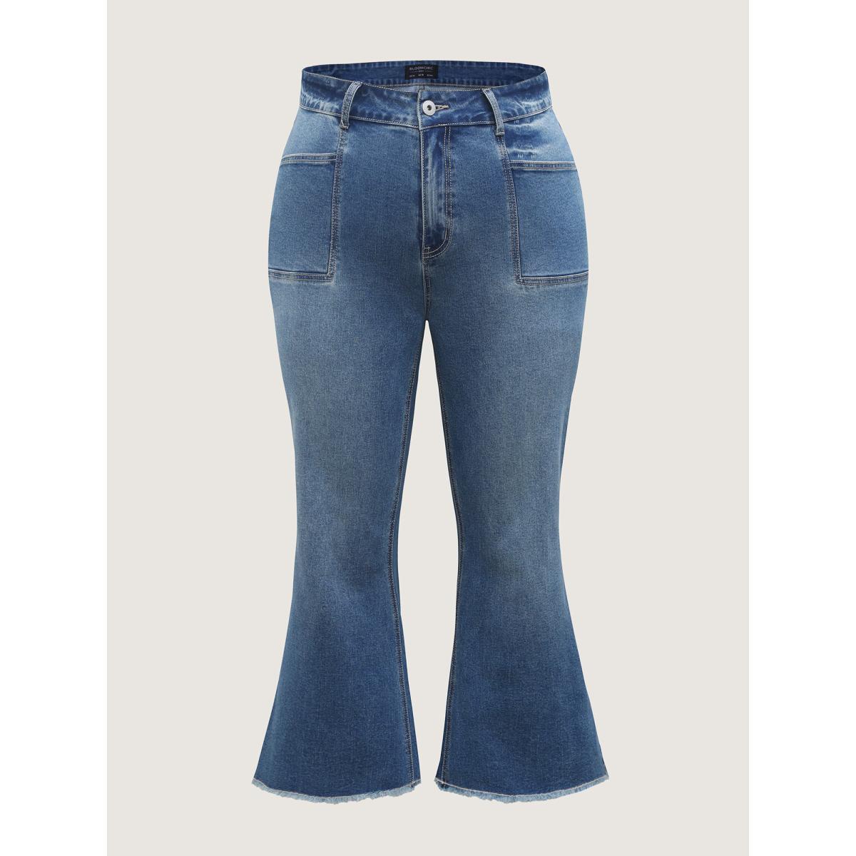 Plus Size Retro Wash Flared Hem Pockets Jeans Women Midblue Timeless Pocket Medium stretch Slanted pocket Jeans BloomChic 16/1X