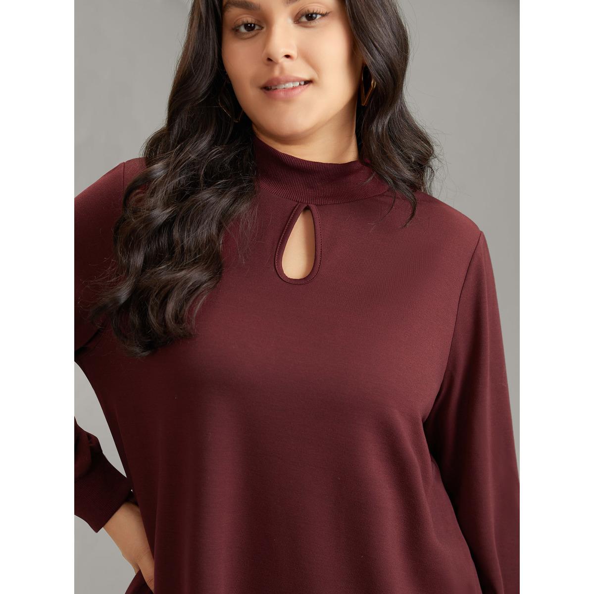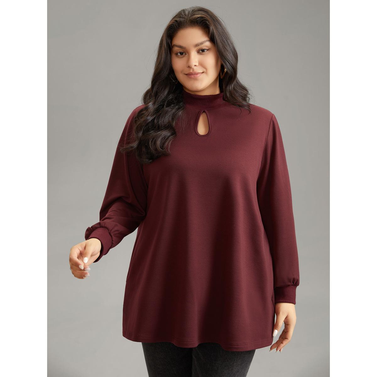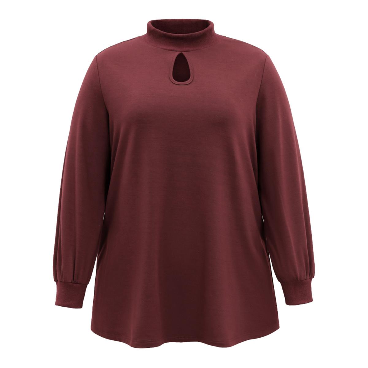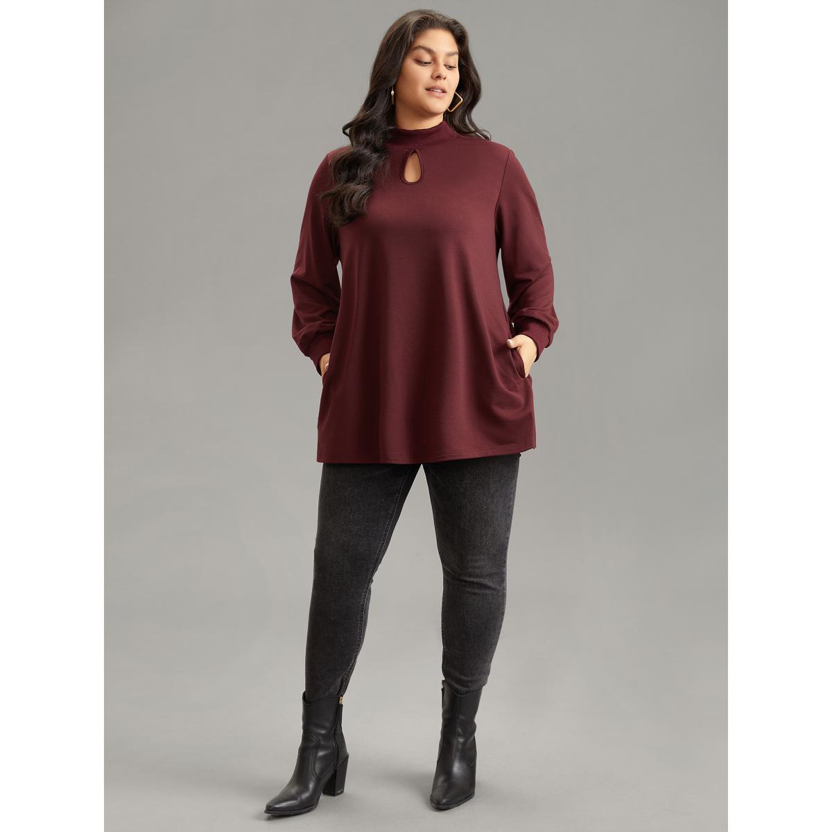 Plus Size Rib Knit Pocket Cut Out Front Sweatshirt Women Raspberry Casual Rib Knit Keyhole Cut-Out Dailywear Sweatshirts BloomChic 28/5X