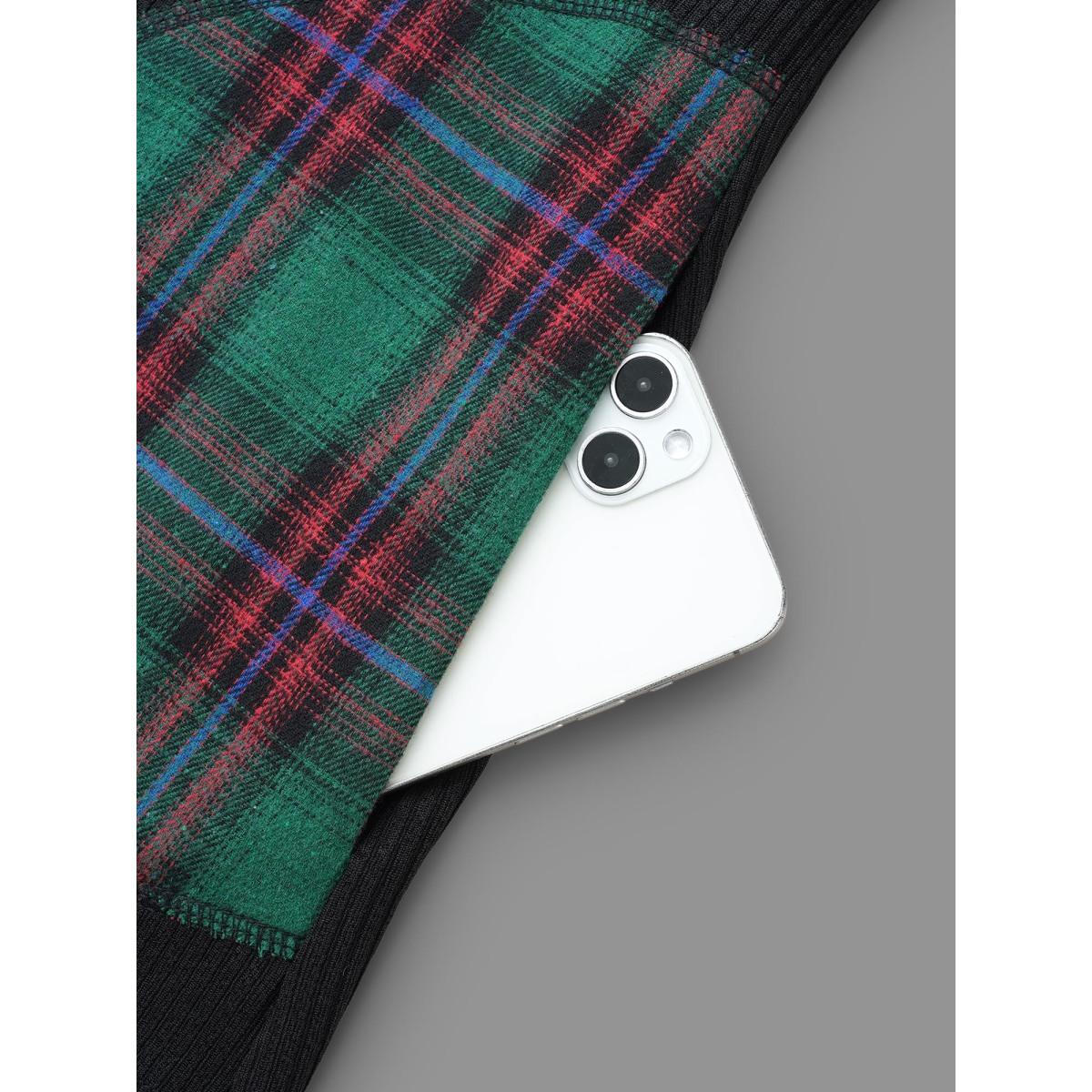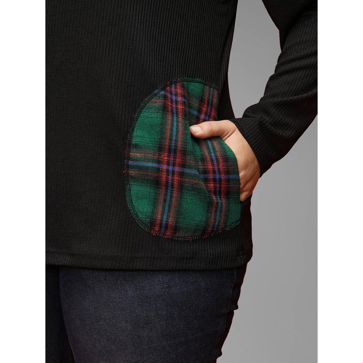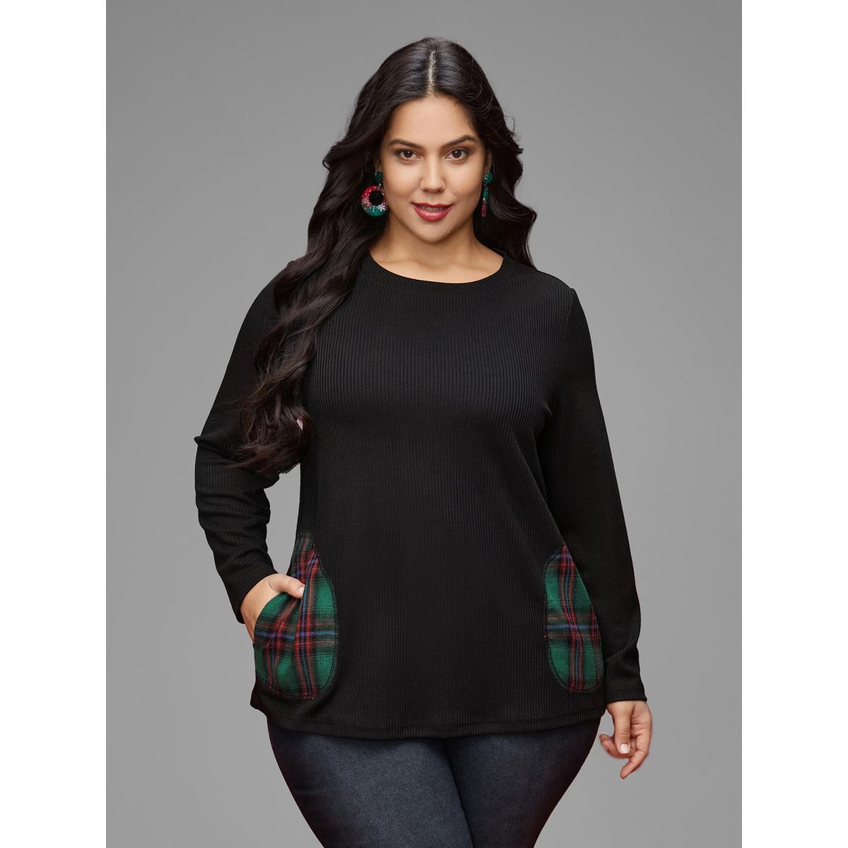 Plus Size Color-block Design Patch Pocket Tee Black Women Casual Contrast Round Neck Everyday T-shirts BloomChic 10/M