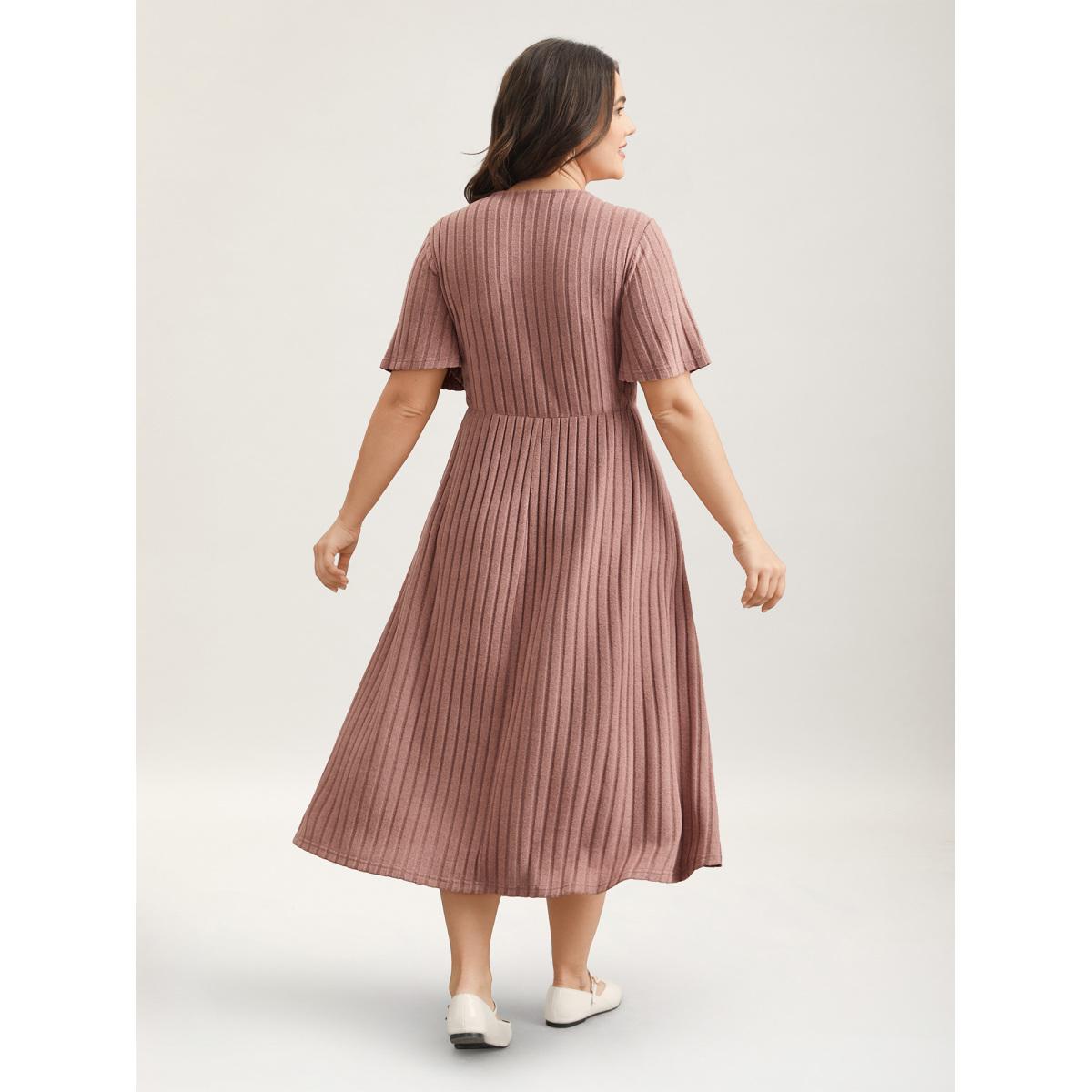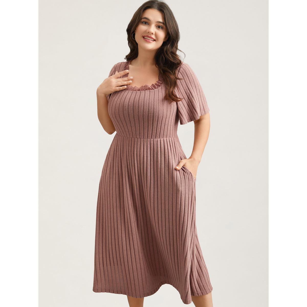Plus Size Ribbed Ruffled Lace Edges Midi Dress Dirtypink Women Casual Woven ribbon&lace trim Knit Dresses Bloomchic 30/6X