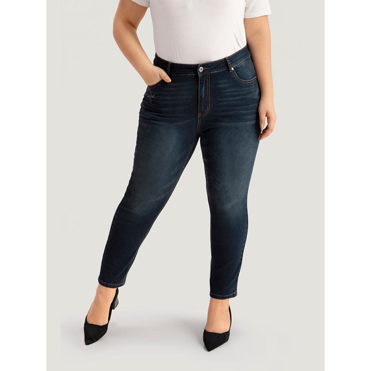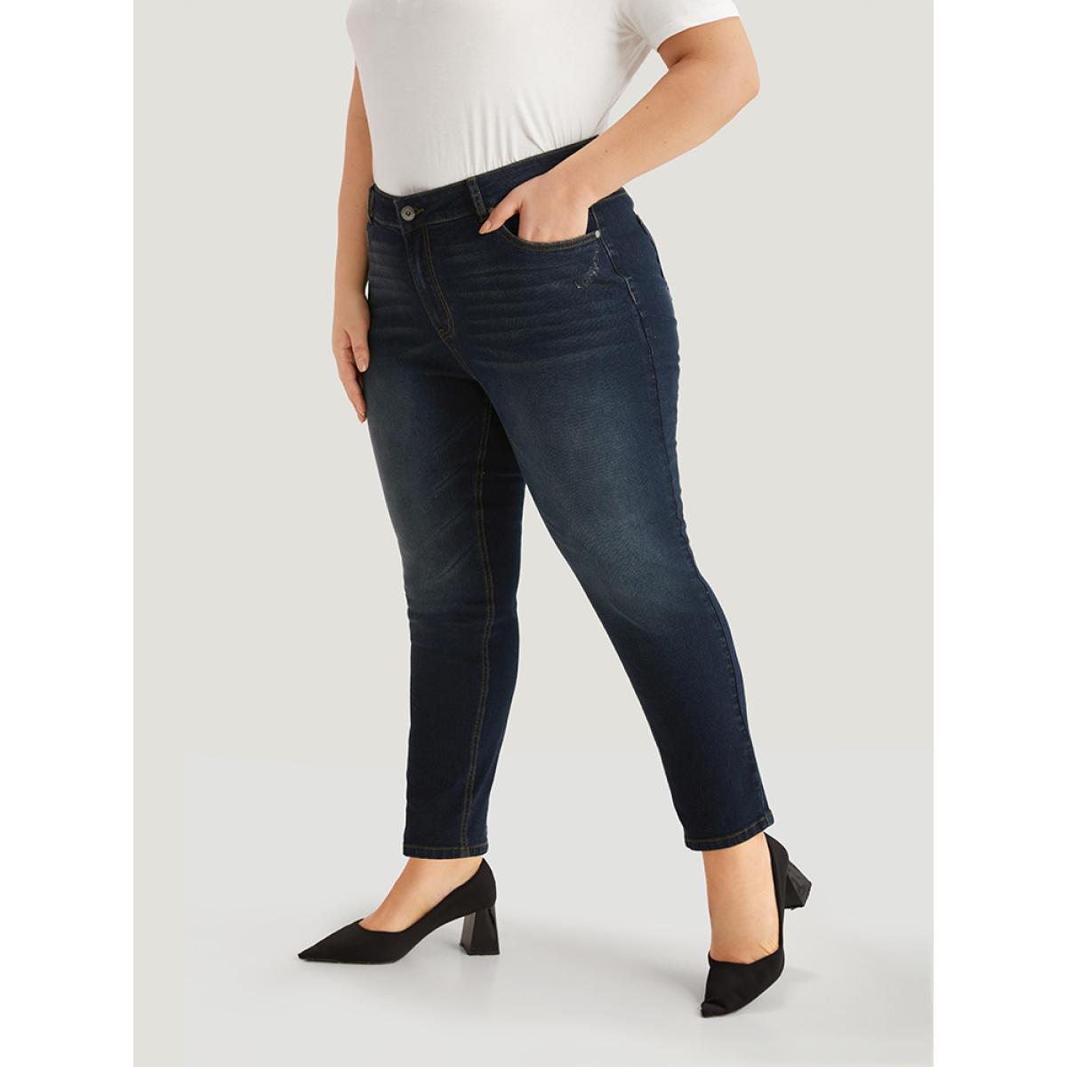 Plus Size Dark Wash High Stretch Skinny Jeans Women Midnight Casual Plain Plain High stretch Pocket Jeans BloomChic 26/4X