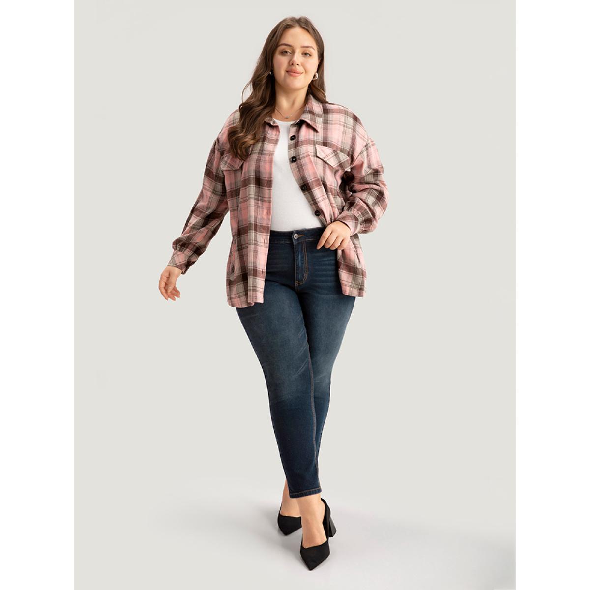 Plus Size Plain Button Detail Pocket High Rise Jeans Women Midnight Casual Plain Plain High stretch Pocket Jeans BloomChic 28/5X