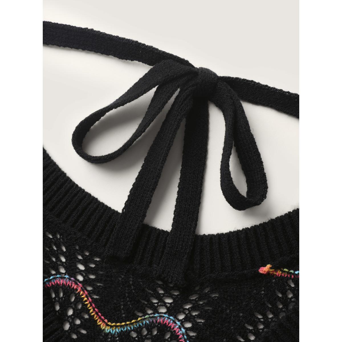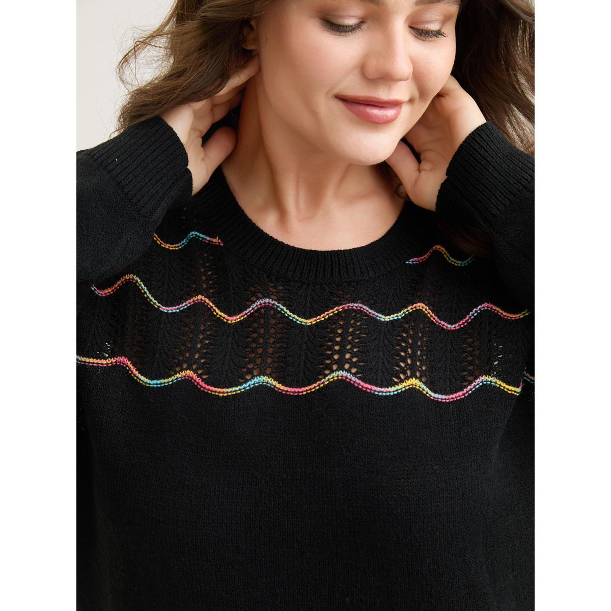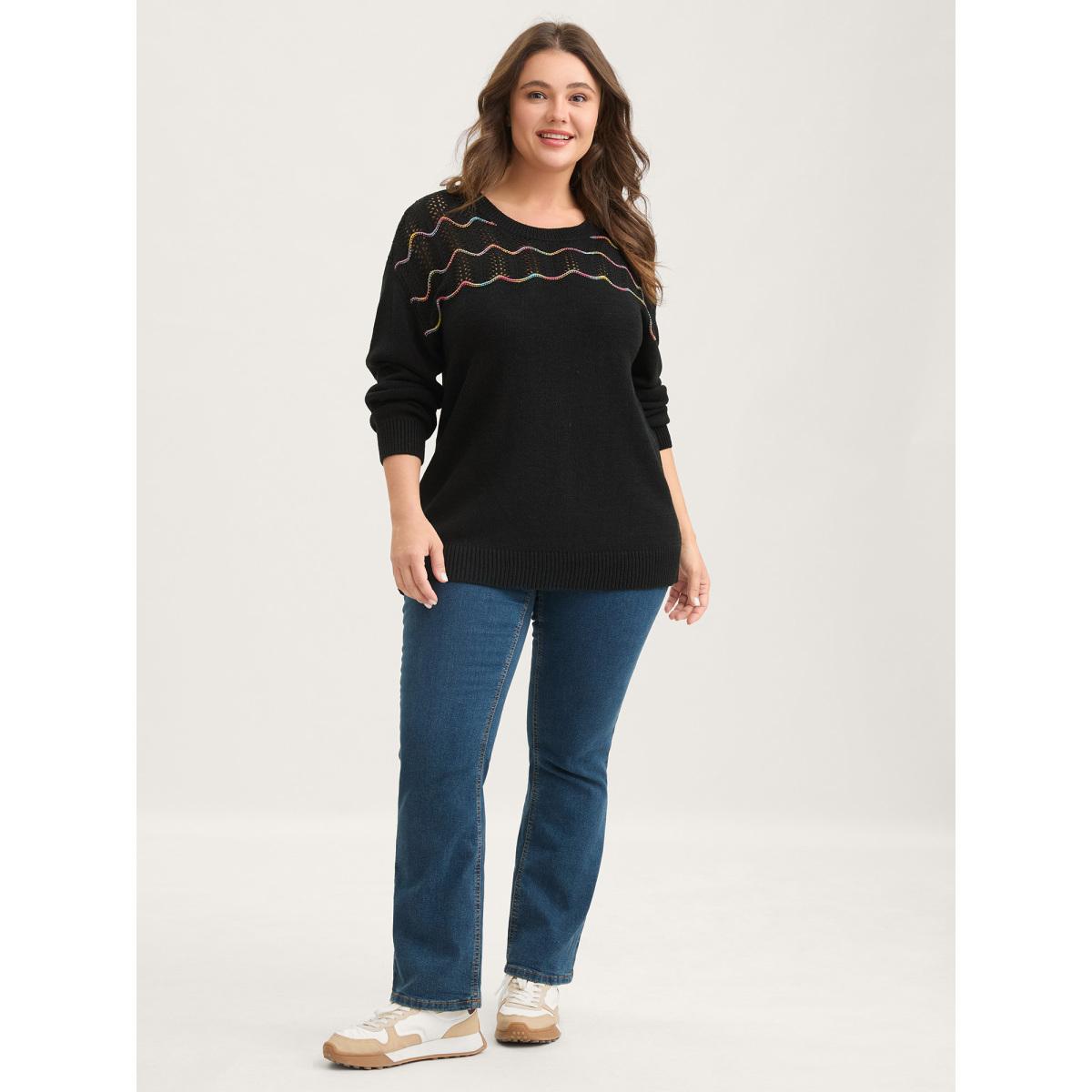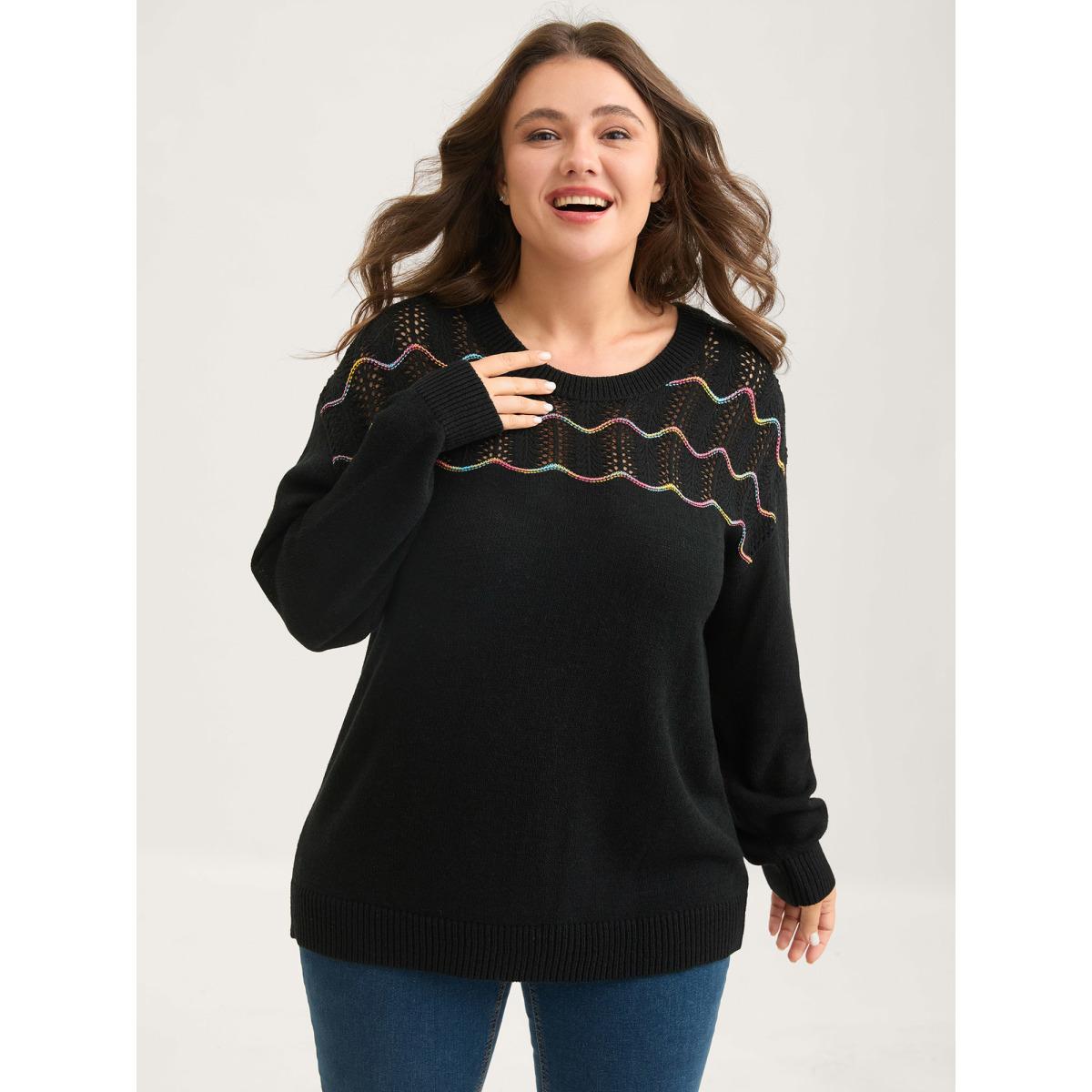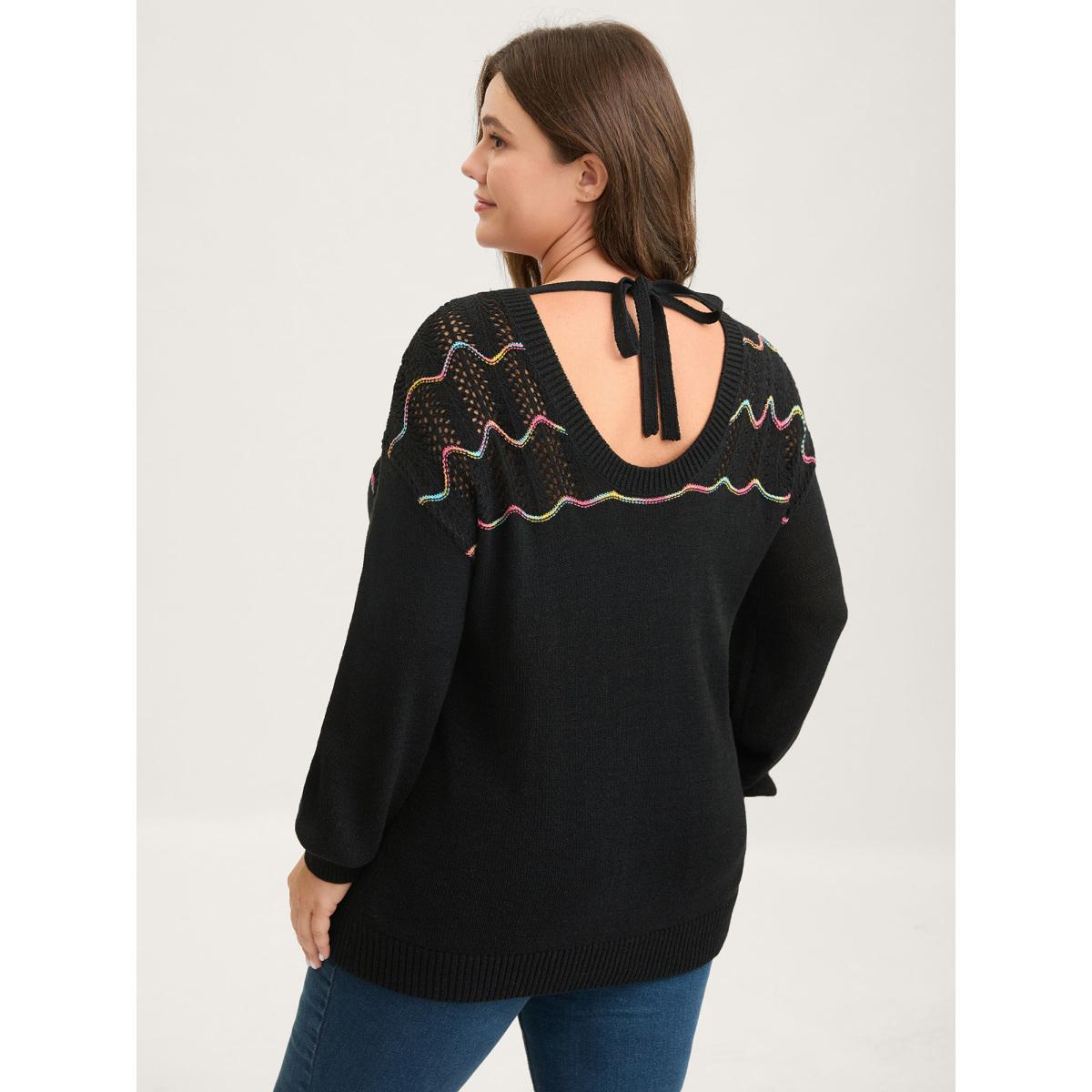Plus Size Ripple Textured Sheer Neck Backless Pullover Black Women Playful Loose Long Sleeve Round Neck Casual Pullovers BloomChic 22-24/3X