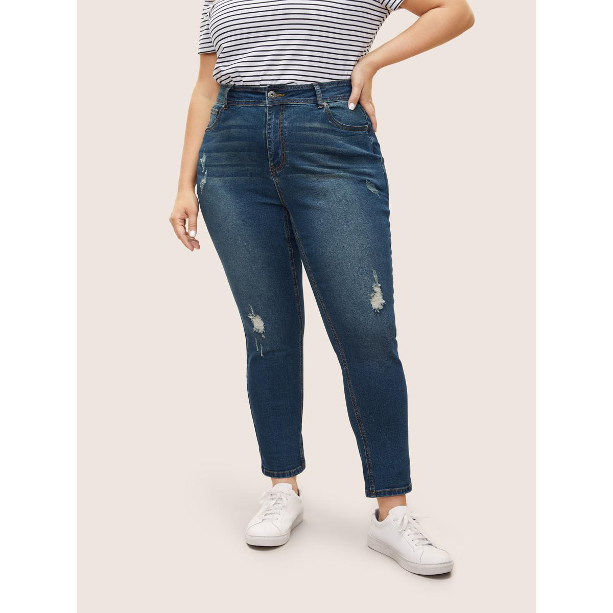 Plus Size Ripped Embroidered Roll Hem Very Stretchy Jeans Women Stone Casual Plain Distressed High stretch Pocket Jeans BloomChic 10/M