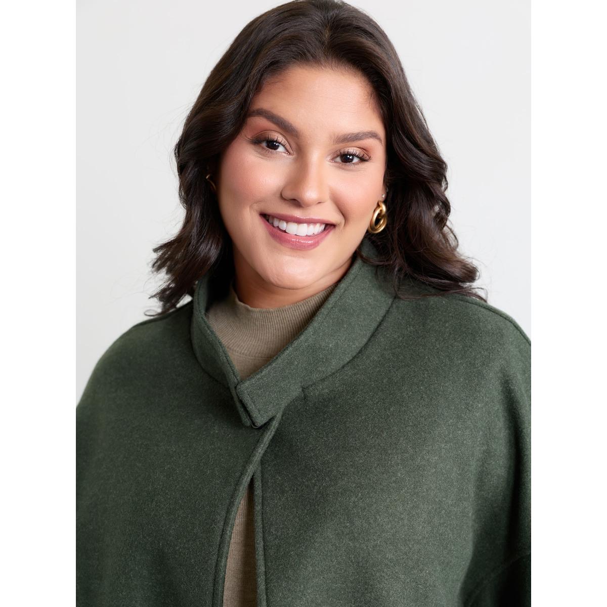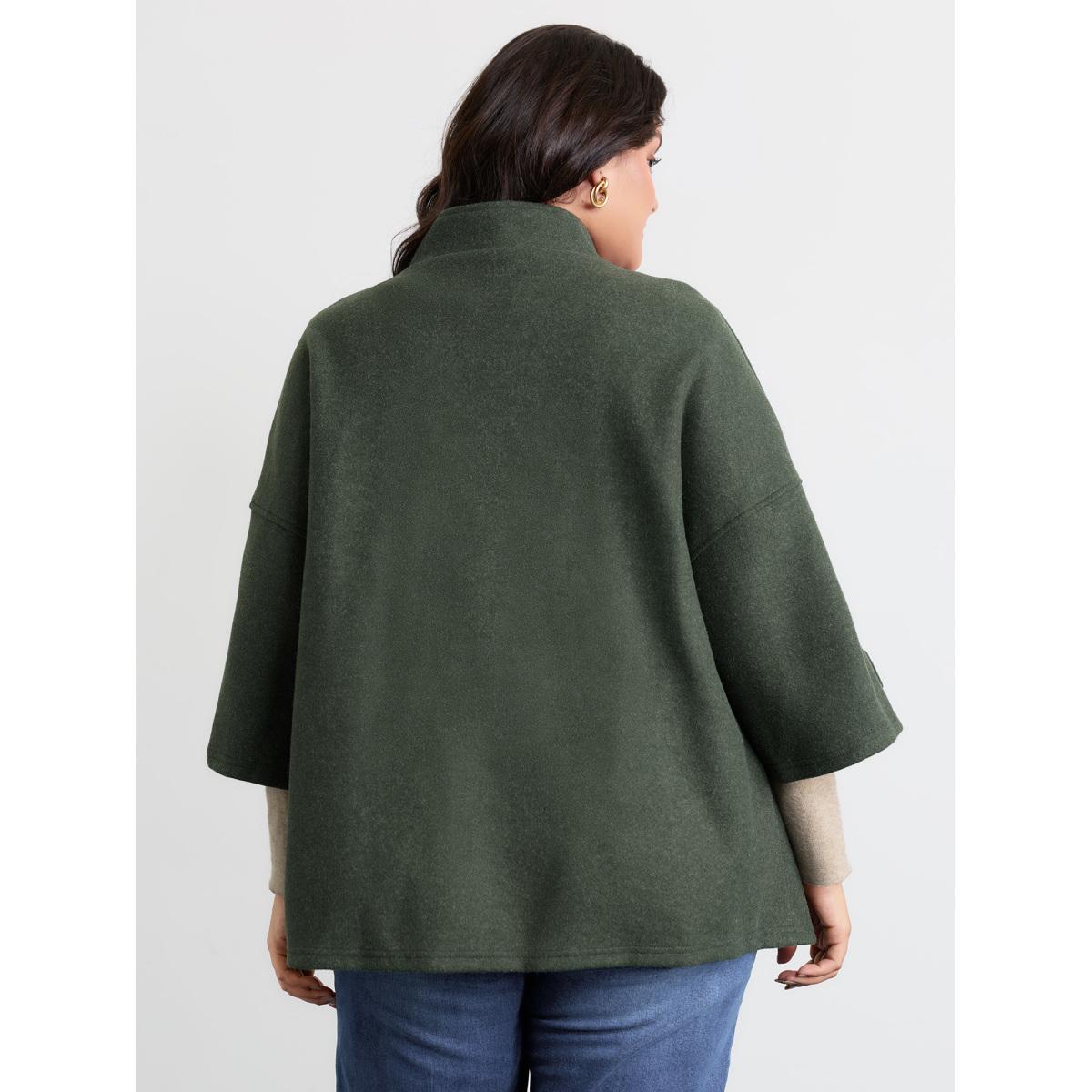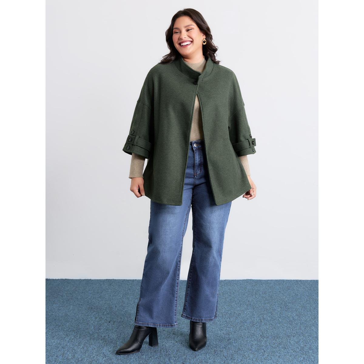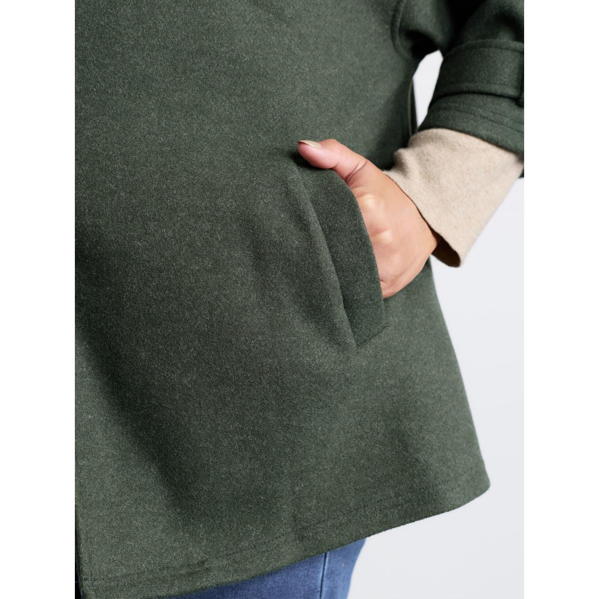 Plus Size Rolled Button Sleeve Pockets Coat Women DarkGreen Timeless Button Loose Ladies Elegant Winter Coats BloomChic 18-20/2X