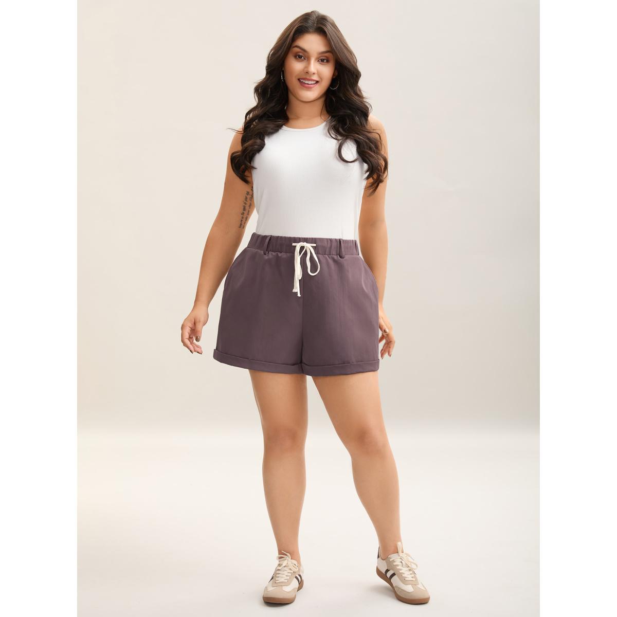 Plus Size Rolled Hem Straight-Fit Shorts Women Mauve Casual Roll Hem Straight Leg Casual Shorts BloomChic 18-20/2X