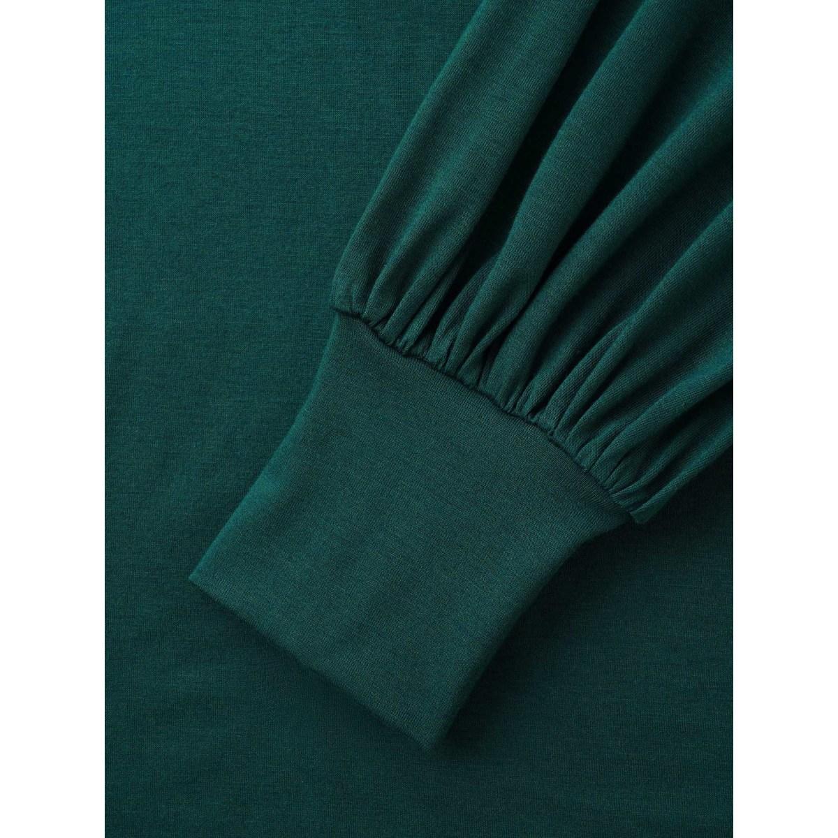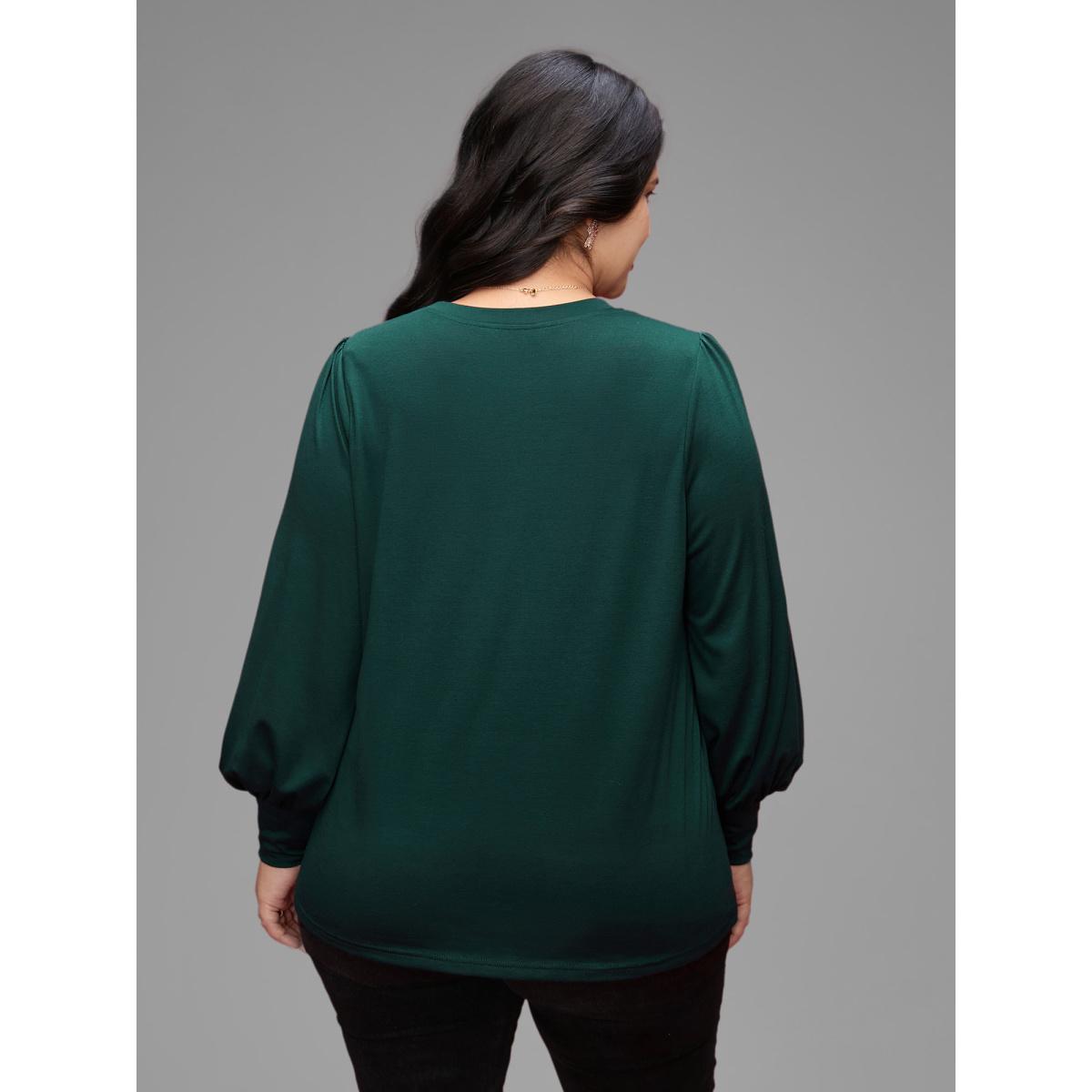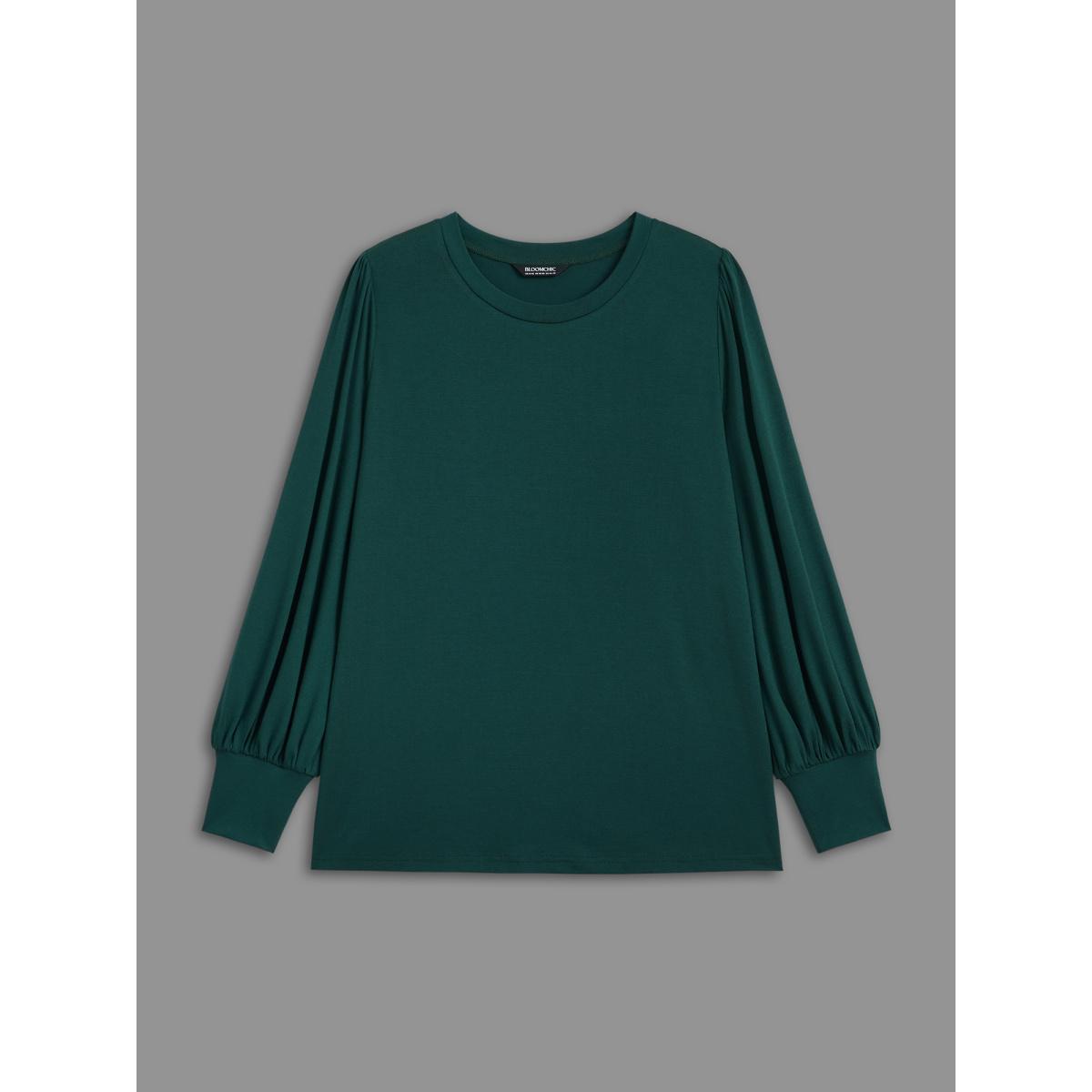 Plus Size Round Neck Balloon Sleeves A-line Tee DarkGreen Women Timeless Gathered Plain Round Neck Elegant T-shirts BloomChic 10/M Product Image