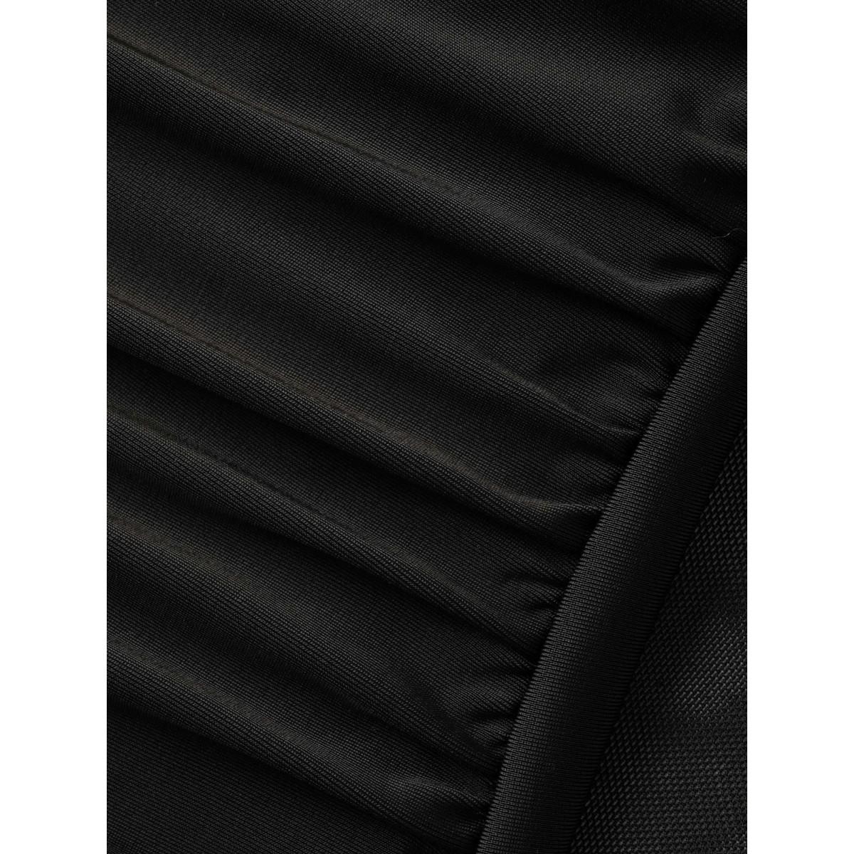 Plus Size Rubber Waist Handkerchief Hem Swim Bottoms Women's Swimwear Black Resort Asymmetrical High stretch Bodycon High Rise Curve Swim Bottoms BloomChic 28/5X