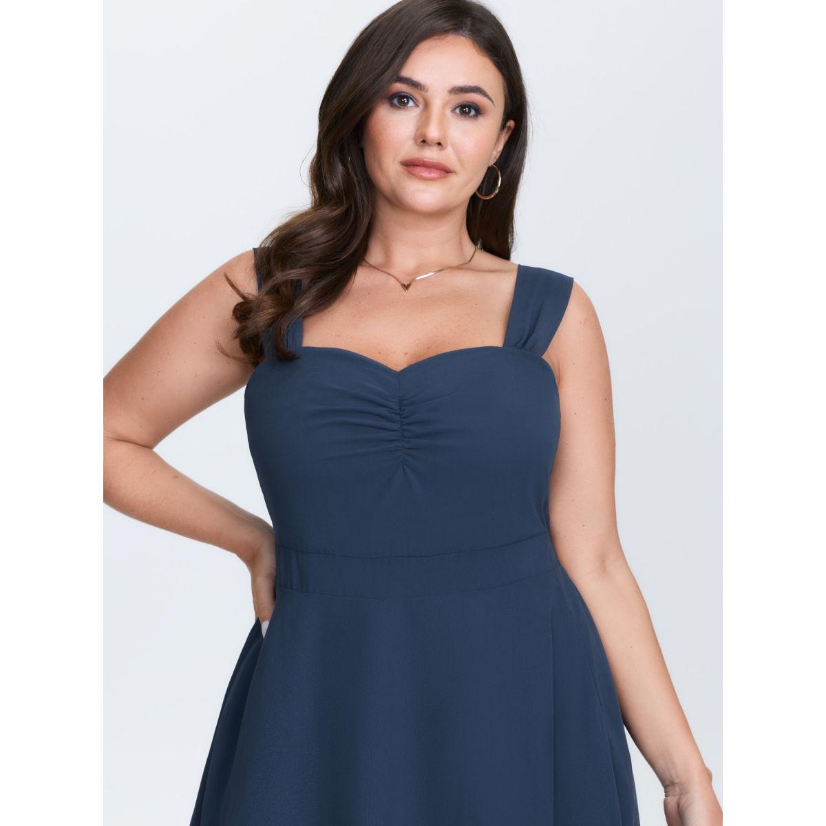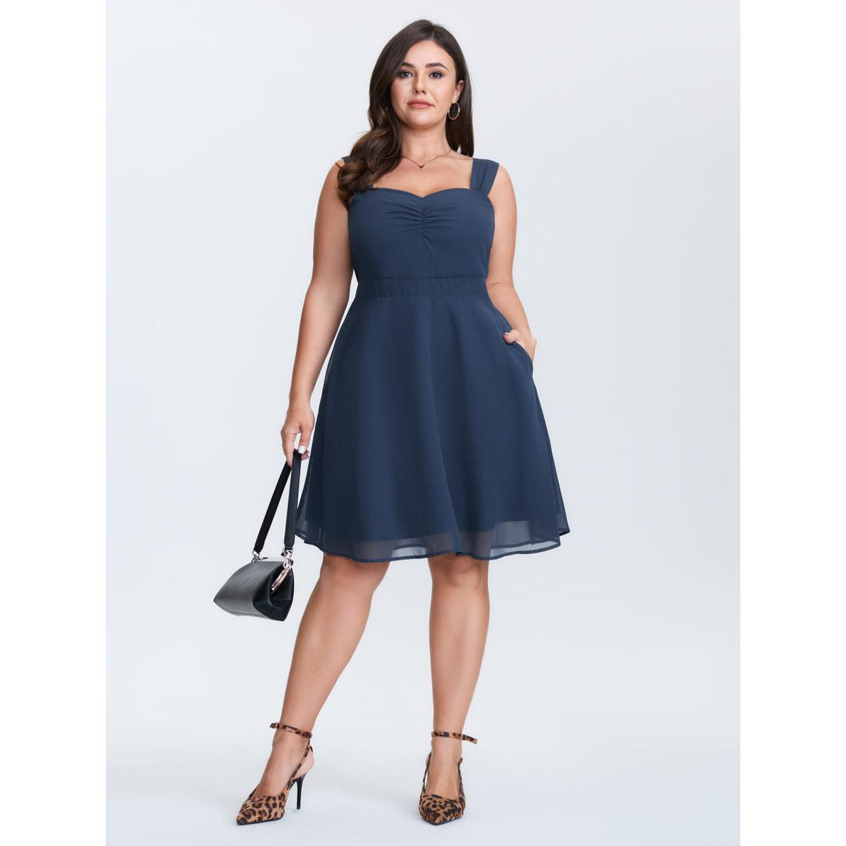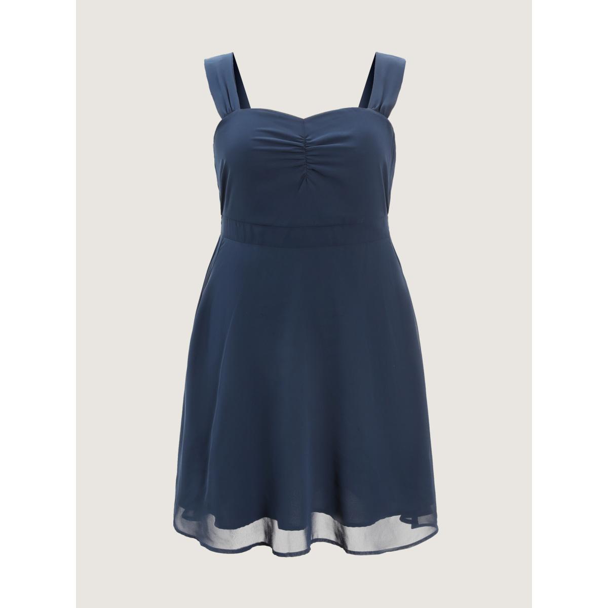 Plus Size Ruched Bodice Cinched Flared Waist Mini Dress Indigo Women Timeless Gathered Non Sleeveless Curvy BloomChic 10/M