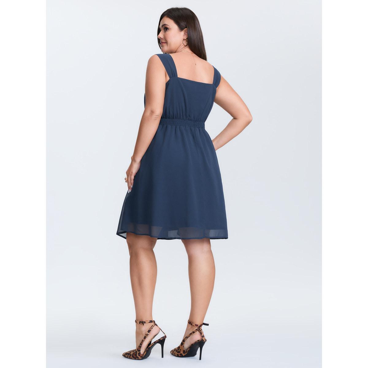 Plus Size Supersoft Essentials Notched Ruffle Layered Hem Sleeveless Dress Indigo Women Elegant Gathered V-neck Sleeveless Curvy Midi Dress BloomChic 18-20/2X