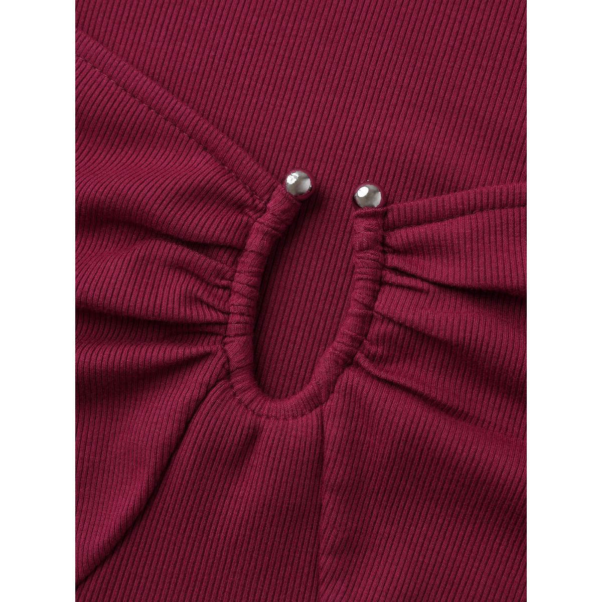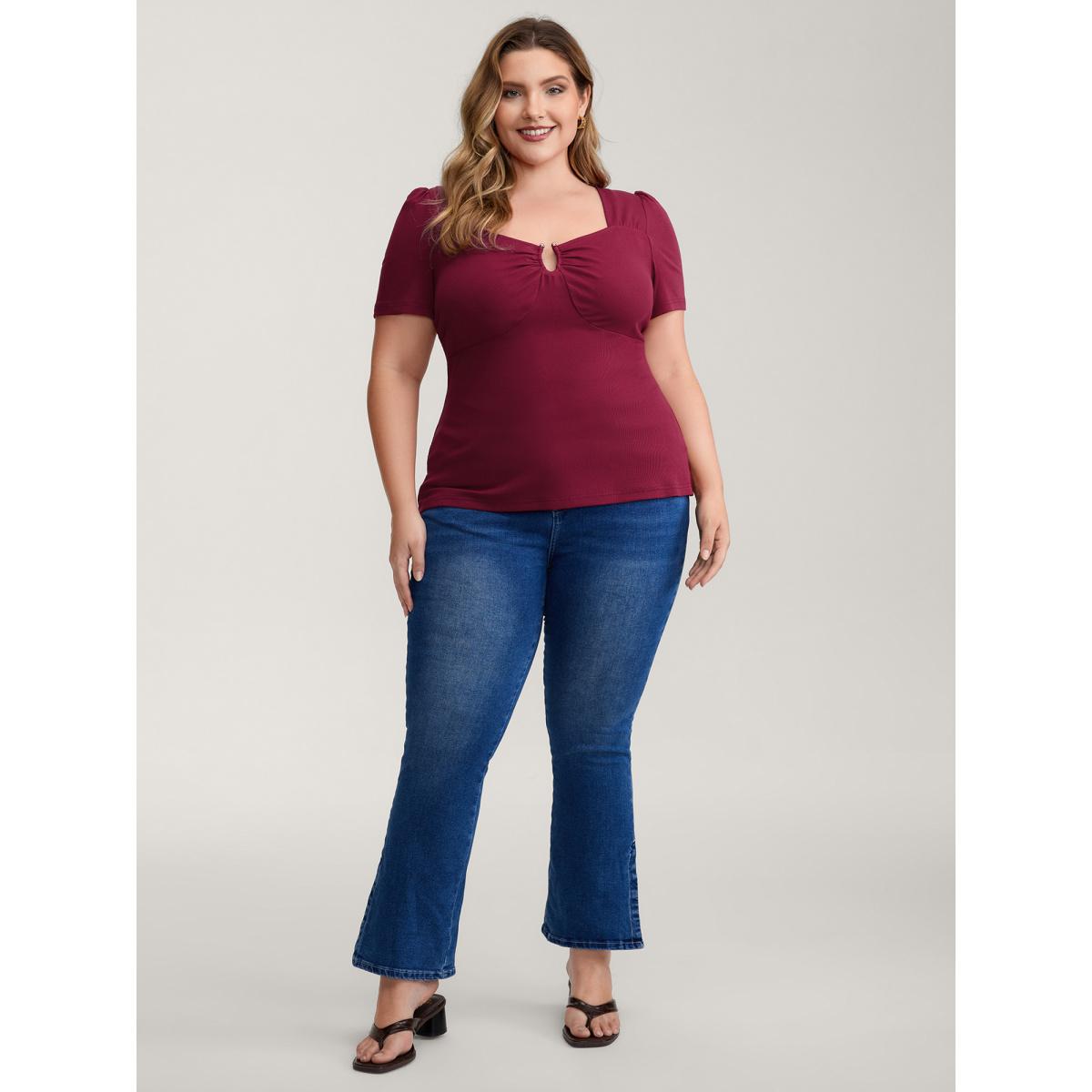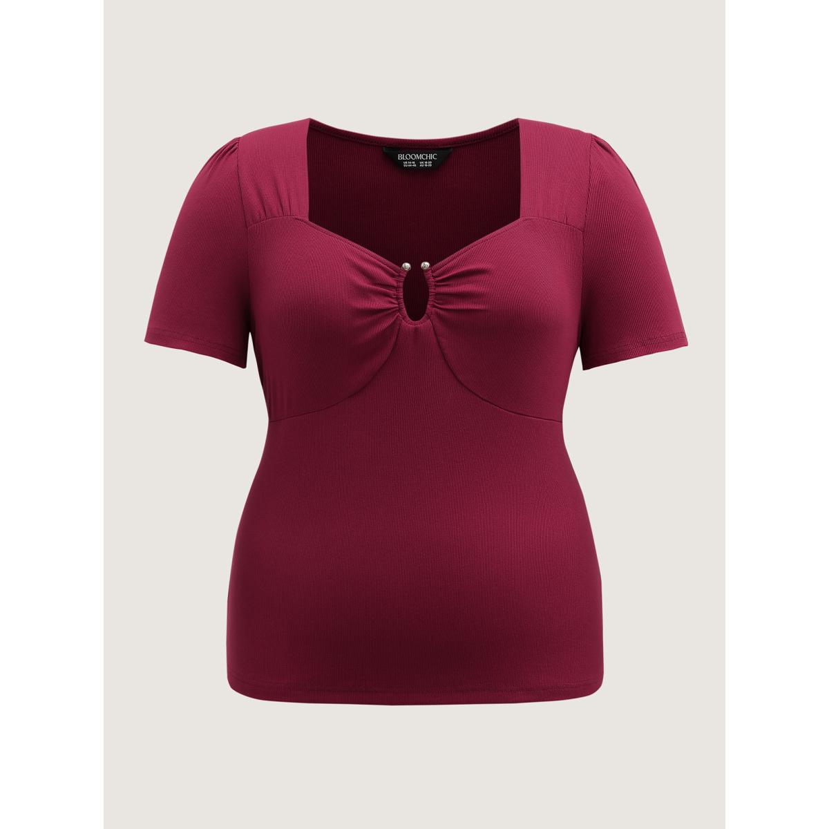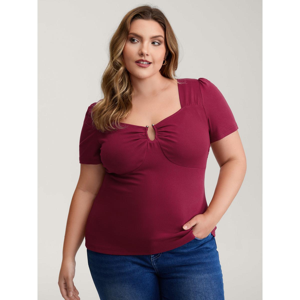 Plus Size Ruched Stretchy Fitted Solid T-Shirt Scarlet Women Timeless Texture Asymmetrical Neck Skinny Elegant T-shirts BloomChic 10/M