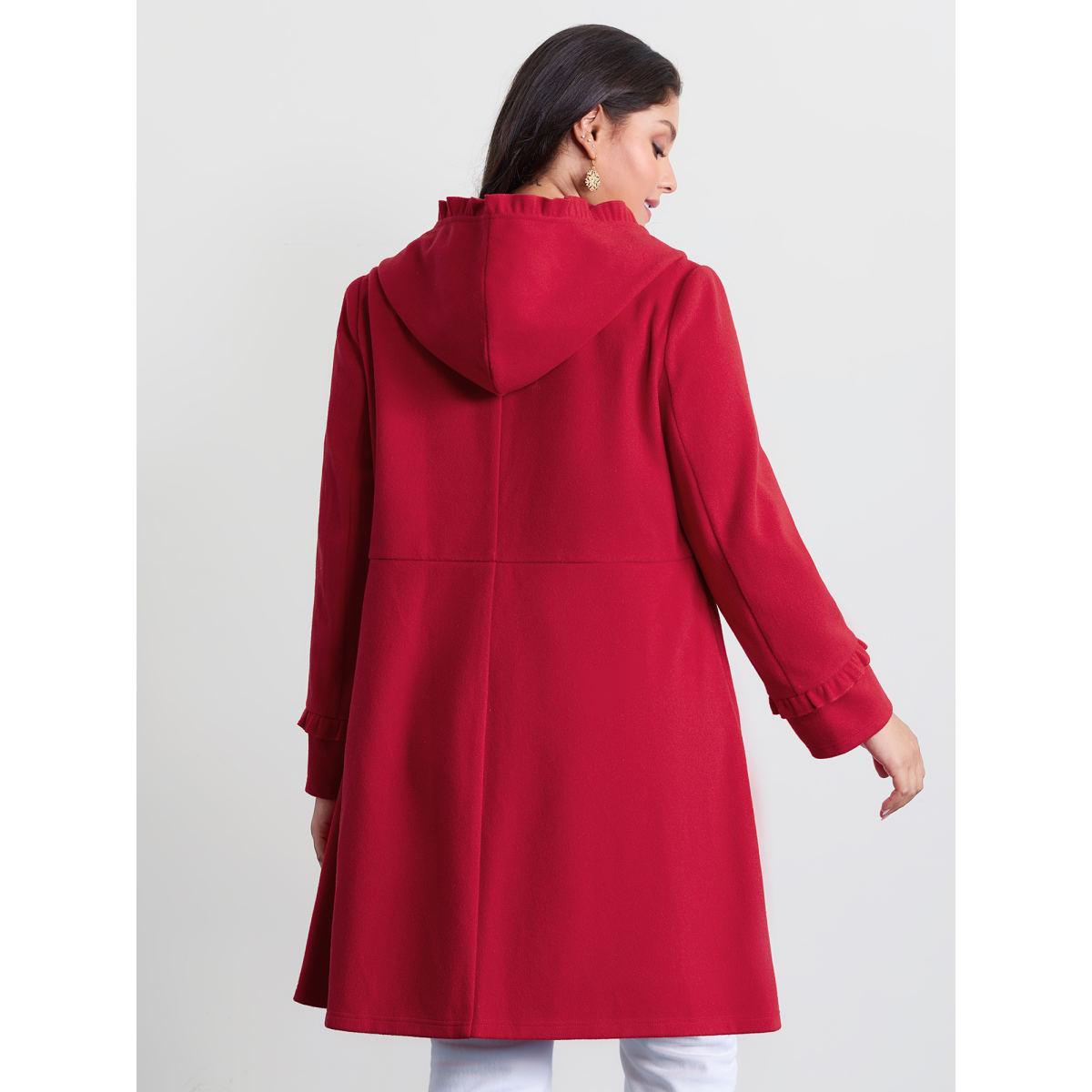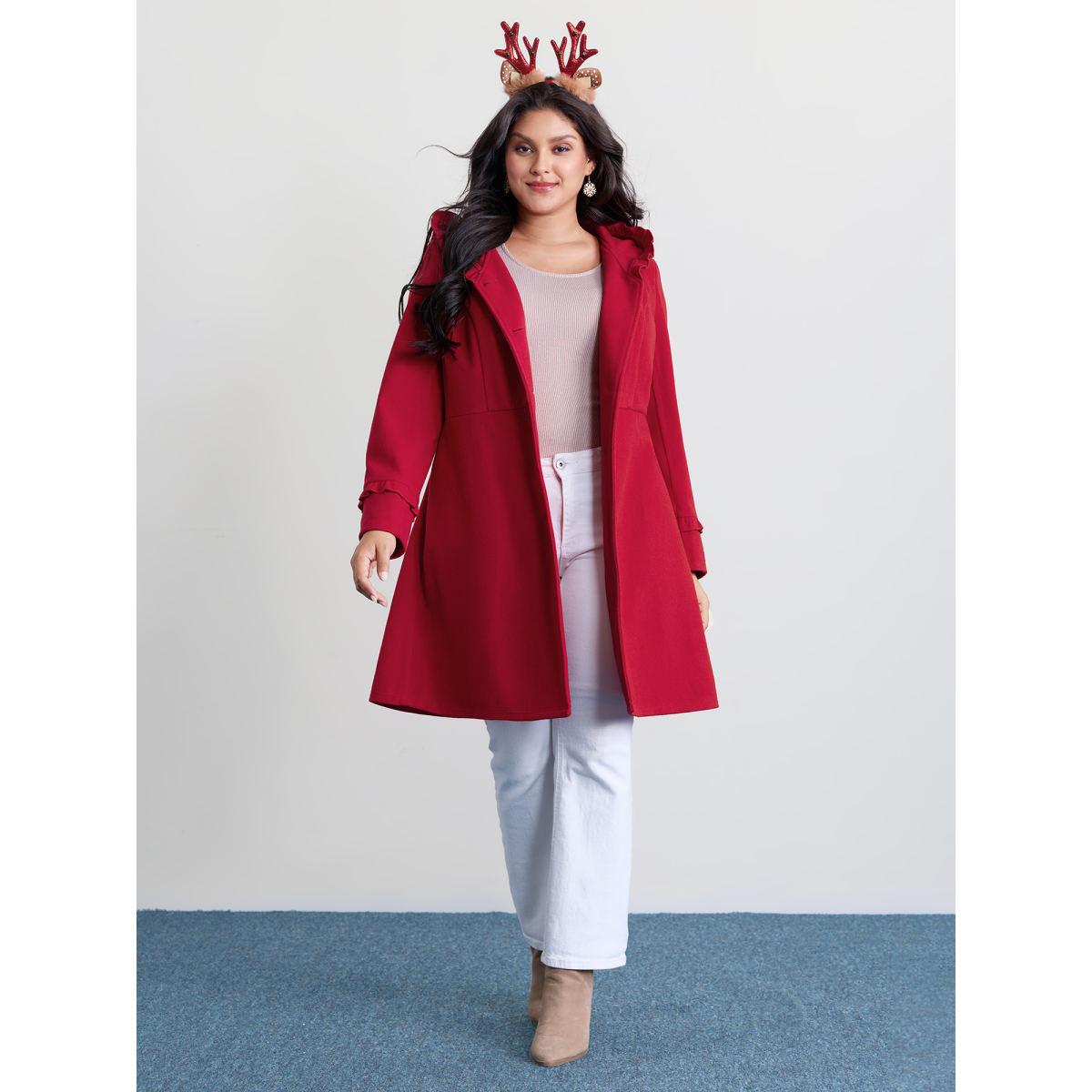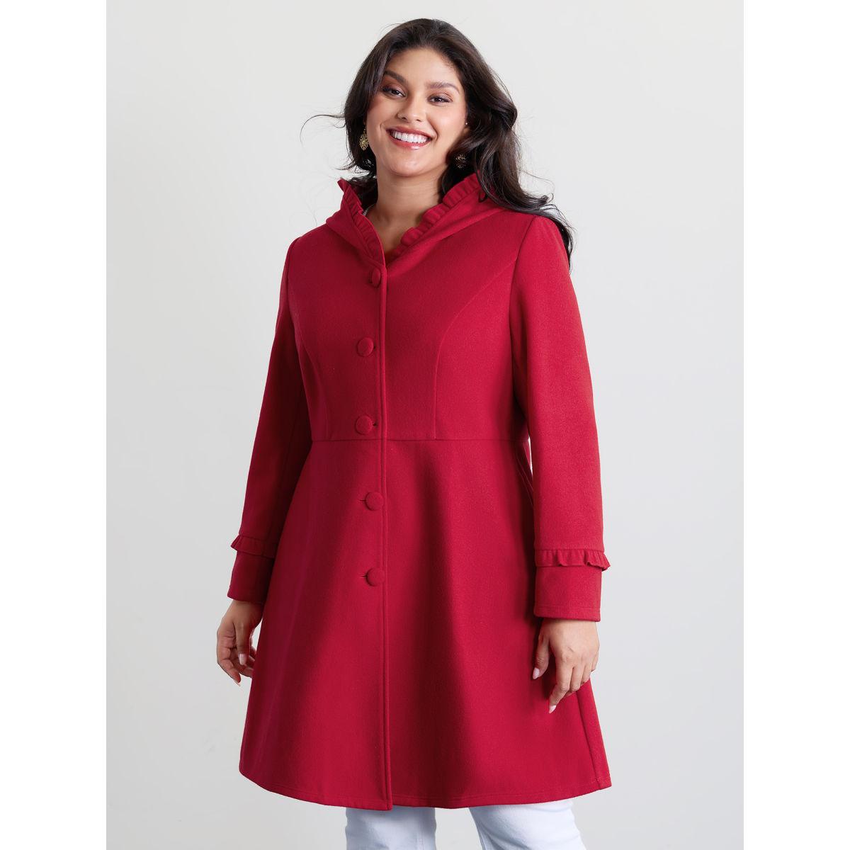 Plus Size Plain Button Up Ruffle Trim Coat Women Scarlet Elegant Button Bodycon Ladies Everyday Winter Coats BloomChic 14-16/1X