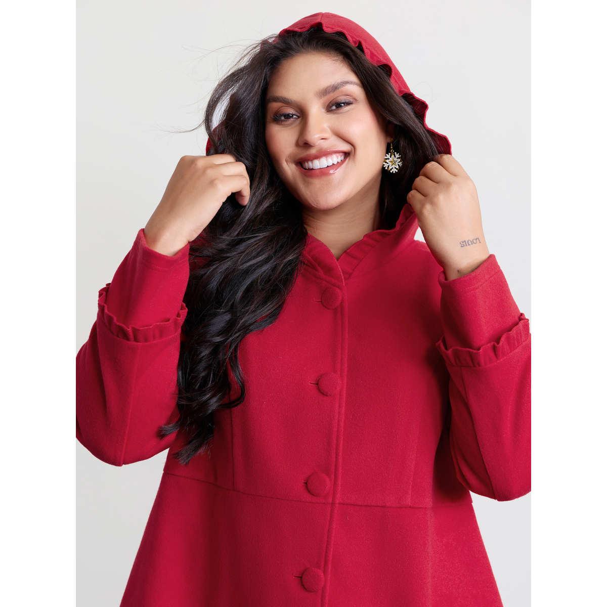 Plus Size Ruffle Trim Waist-Defining Pockets Coat Women Brightred Leisure Button Ladies Casual Winter Coats BloomChic 26/4X Product Image