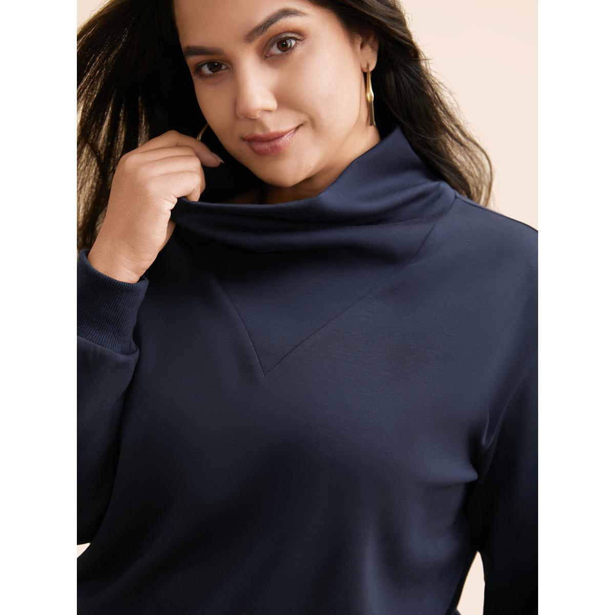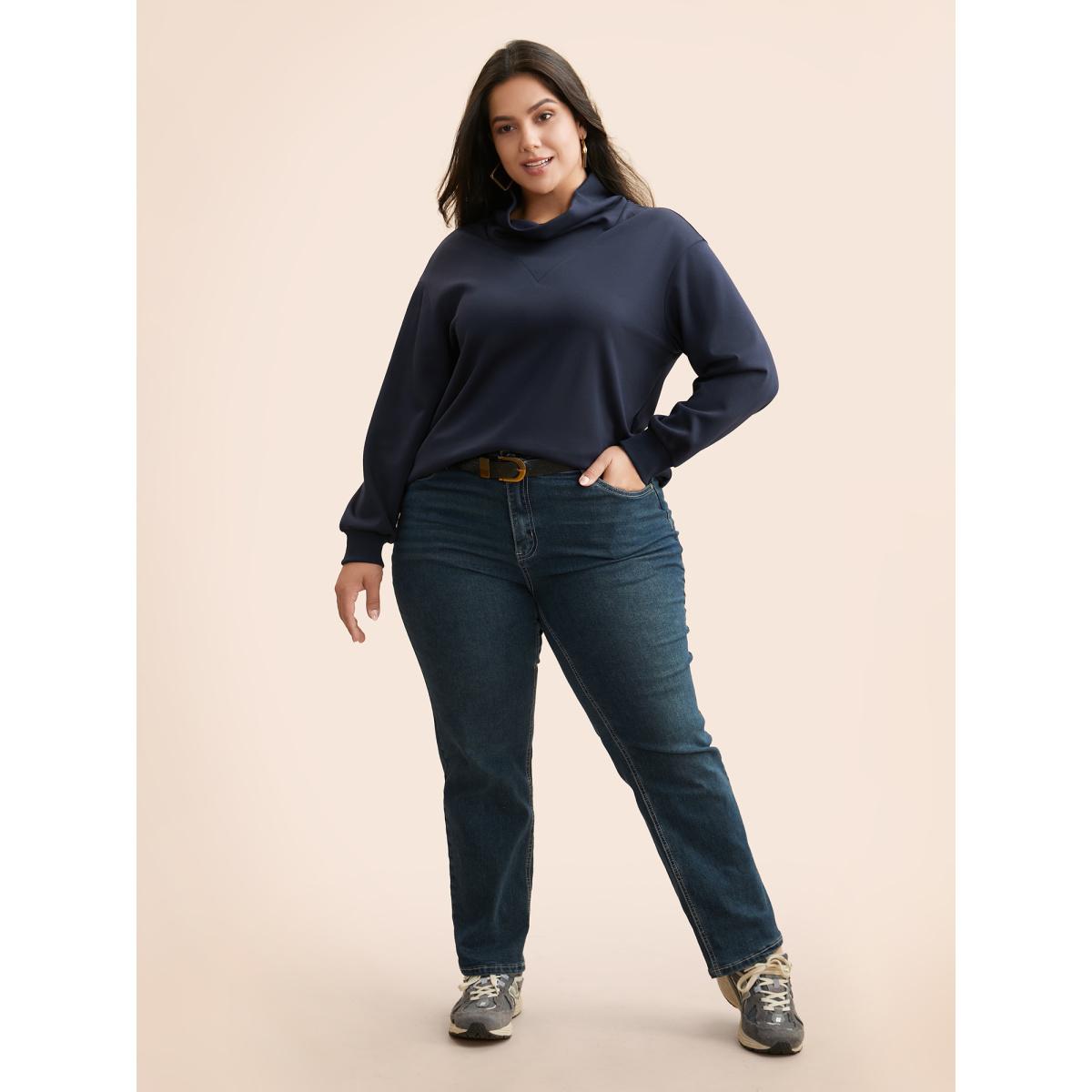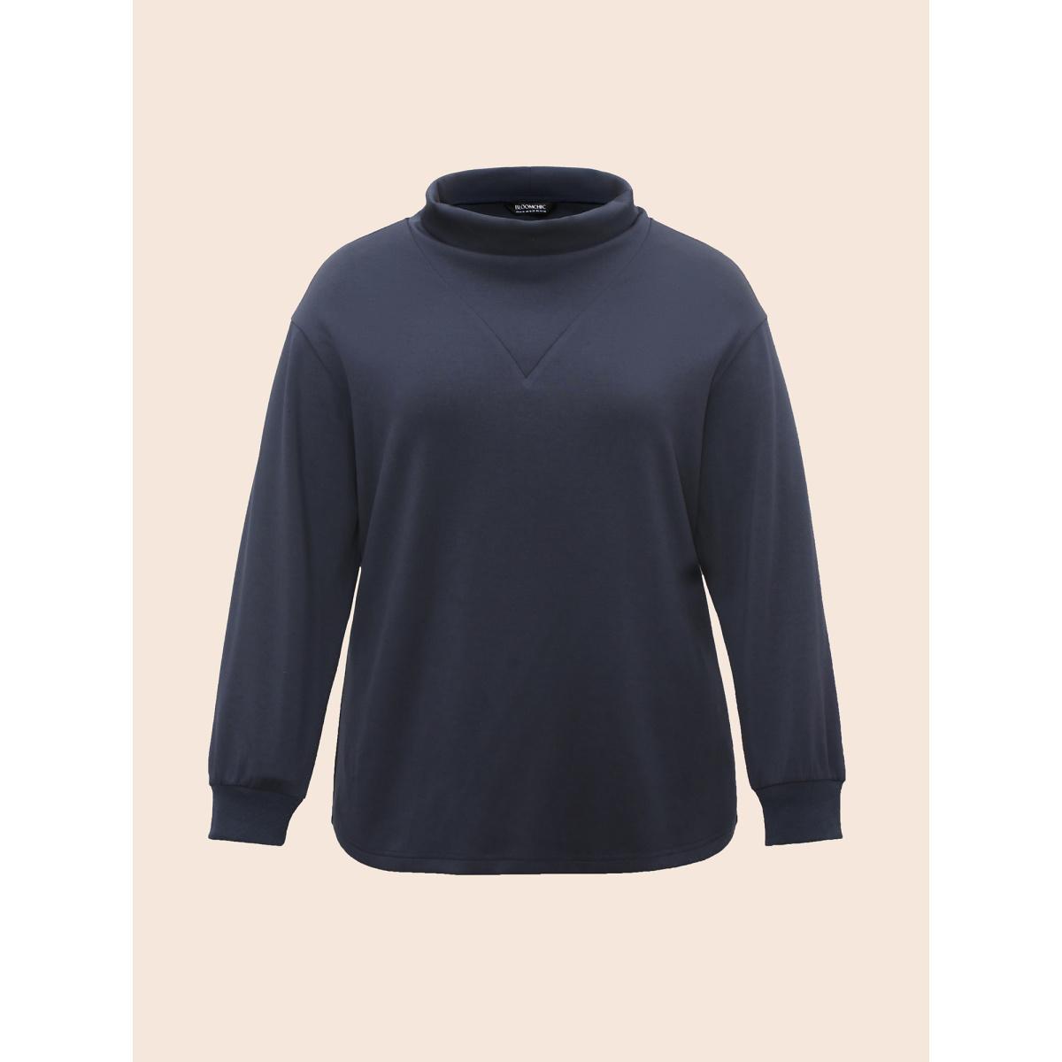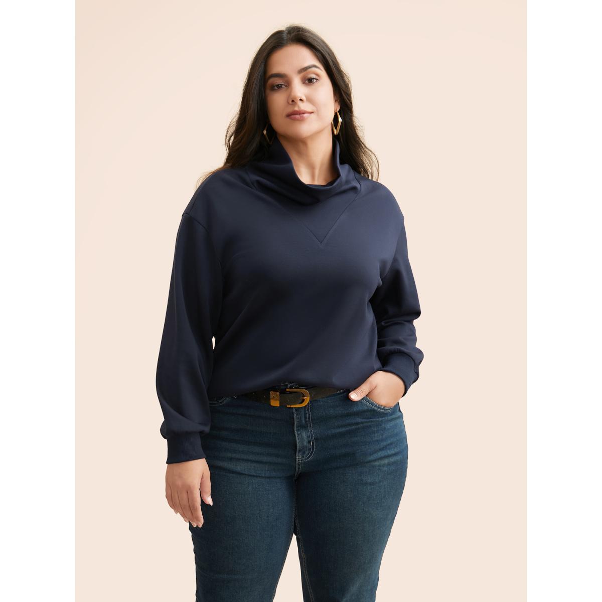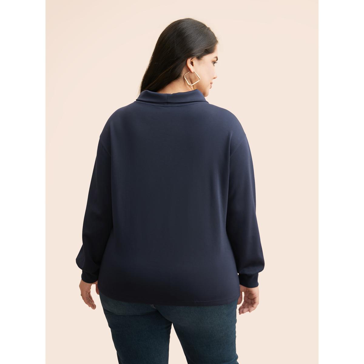 Plus Size Ruffled Collar Plain Drop Shoulder Sweatshirt Women Indigo Casual Non Ruffled collar Everyday Sweatshirts BloomChic 22-24/3X