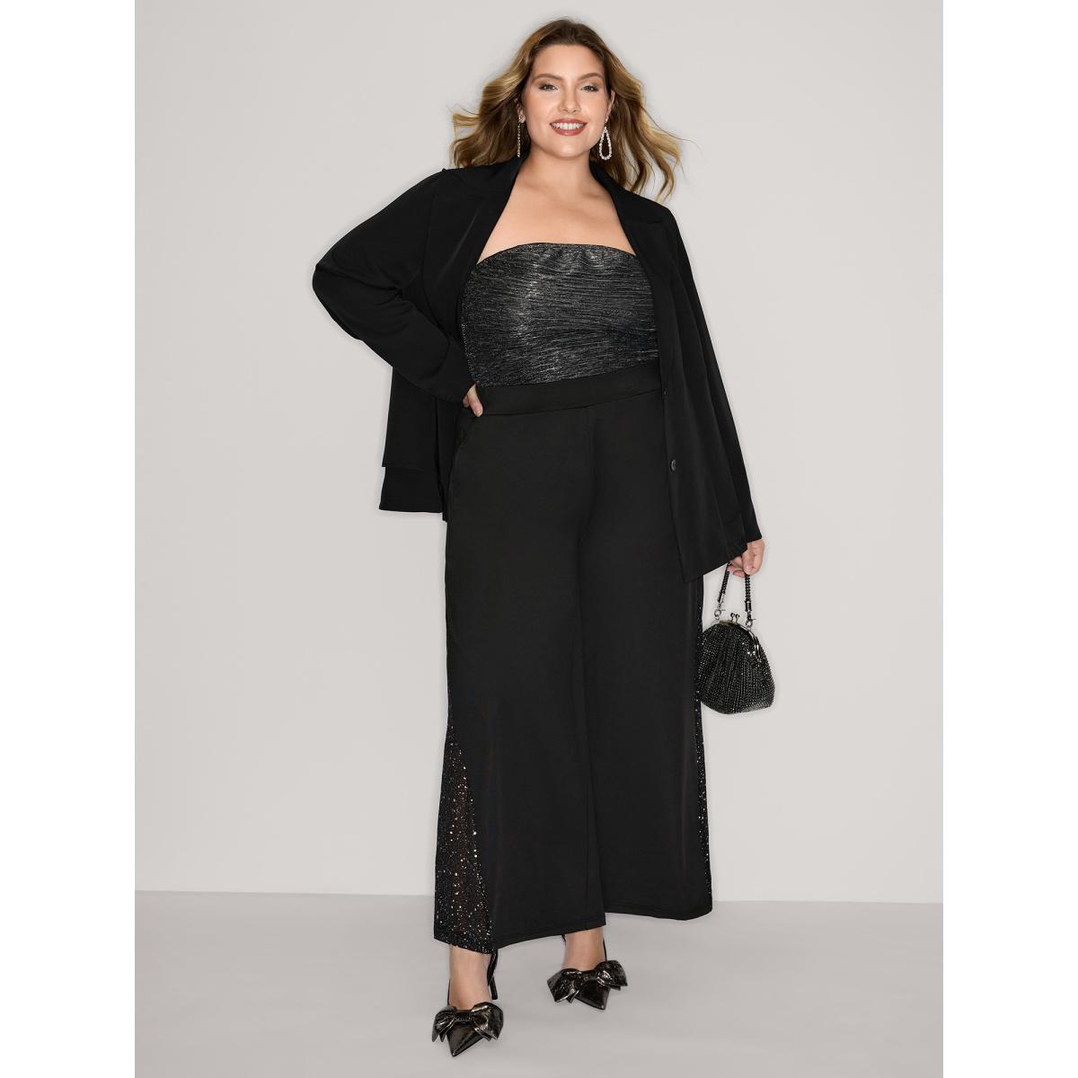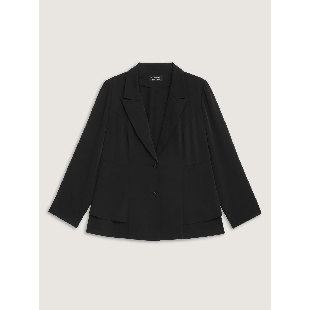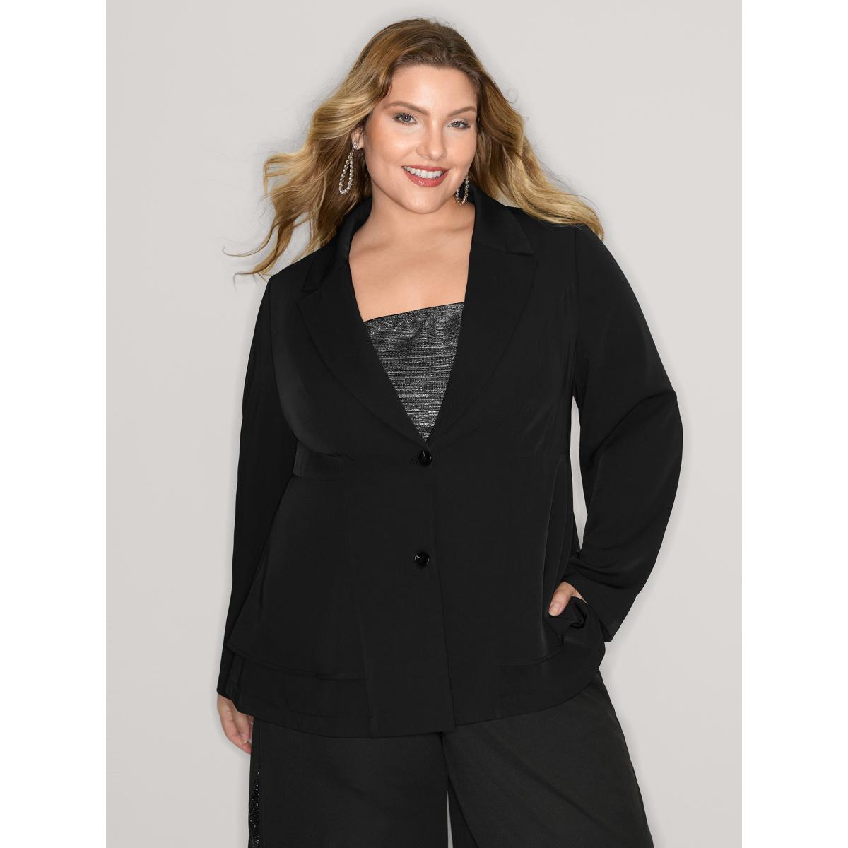 Plus Size Ruffled Hem Double Button Blazer Black Women Office Button Sleeve Extra Long Sleeve Suit Collar 10/M Office Blazers BloomChic
