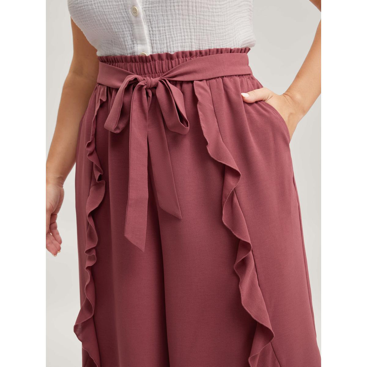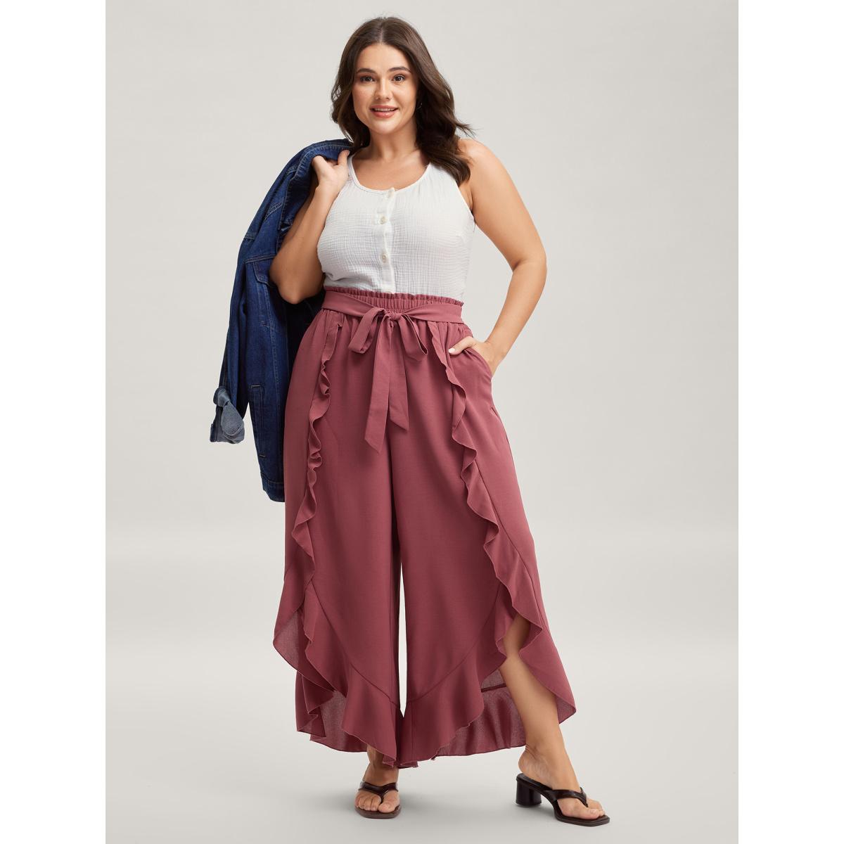 Plus Size Ruffled Hem Waist-Tie Wide-Leg Pants Women Russet Romantic Loose Mid Rise Elegant Pants BloomChic 14-16/1X