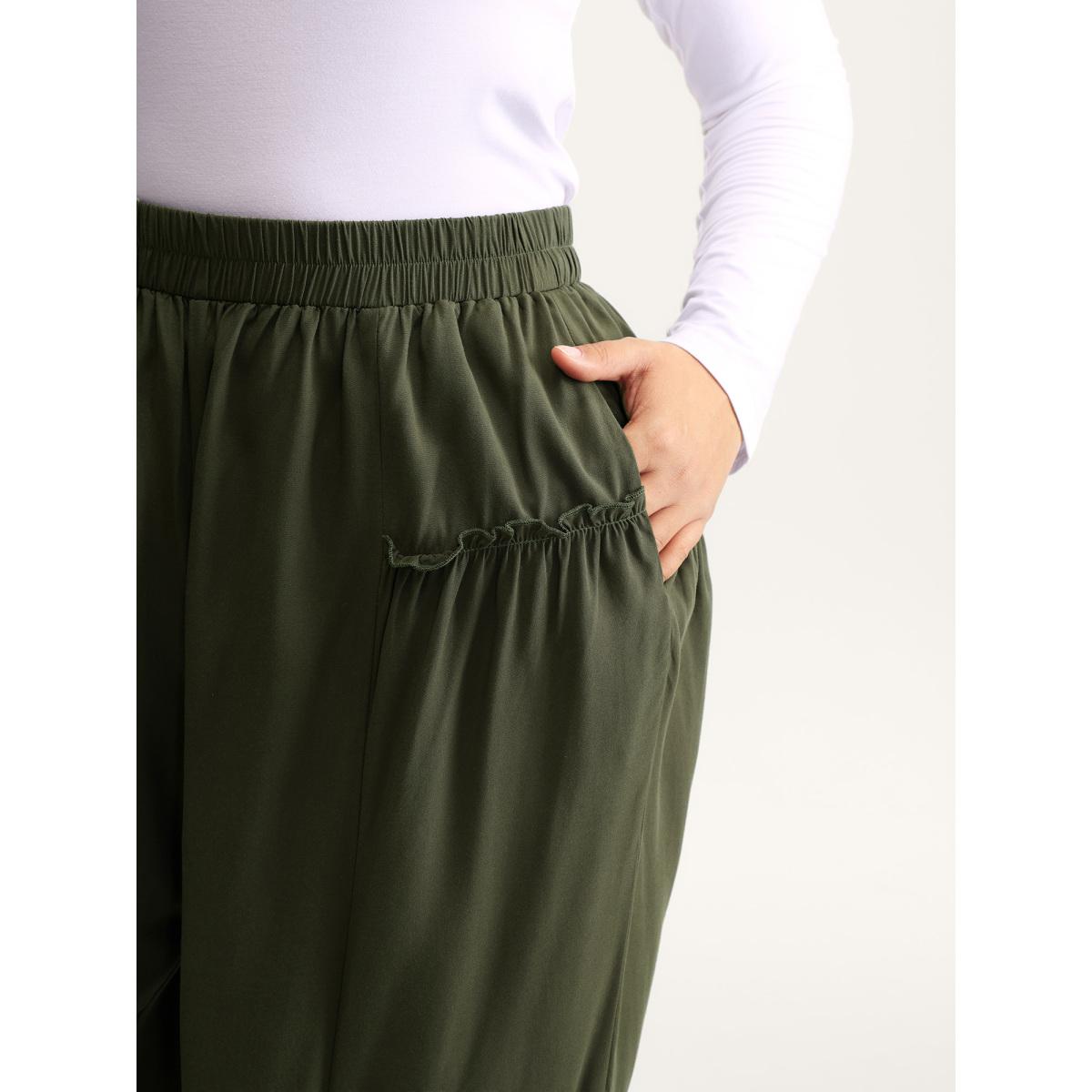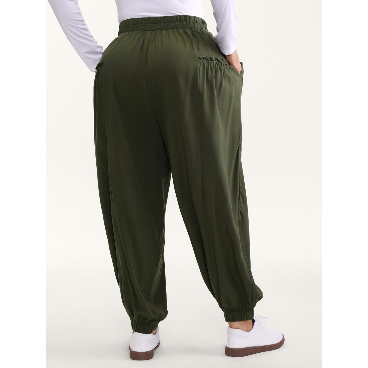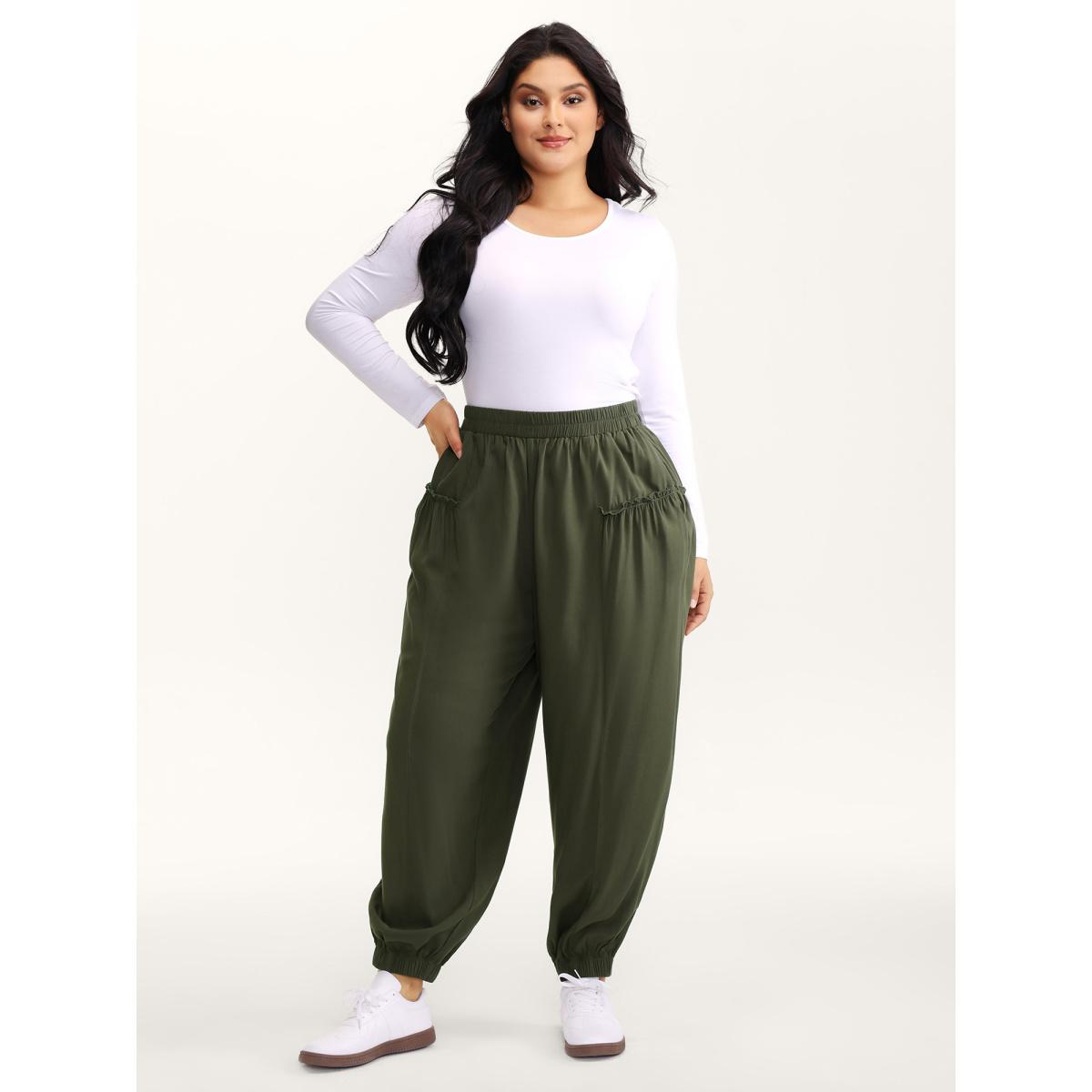 Plus Size Ruffled Inclusive Jogger Pants Women ArmyGreen Leisure Loose Mid Rise Casual Pants BloomChic 30/6X