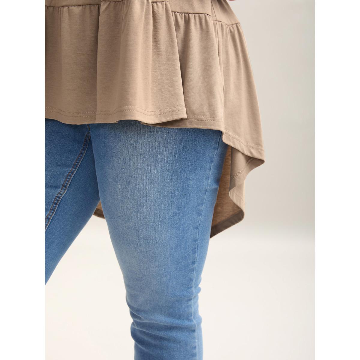Plus Size Tan Plain Round Neck Button Detail Blouse Women Casual Short sleeve Round Neck Everyday Blouses BloomChic 14-16/1X