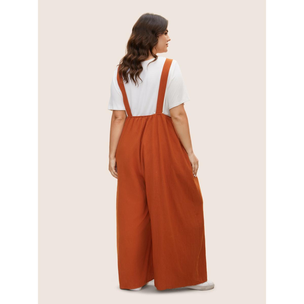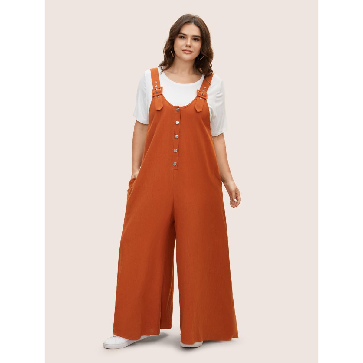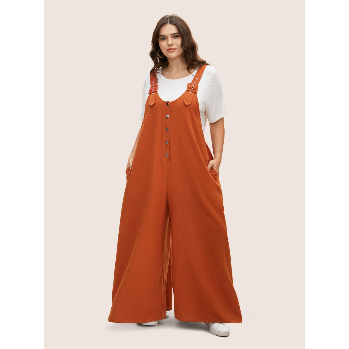 Plus Size Rust Solid U Neck Metal Detail Jumpsuit Women Casual Sleeveless U-neck Everyday Loose Jumpsuits BloomChic 14-16/1X