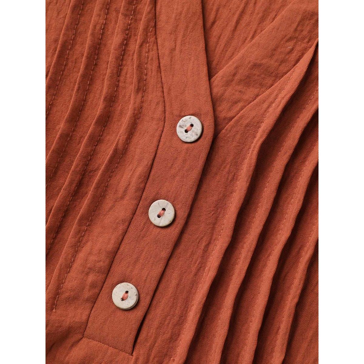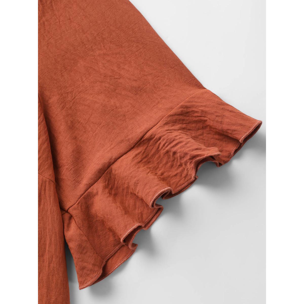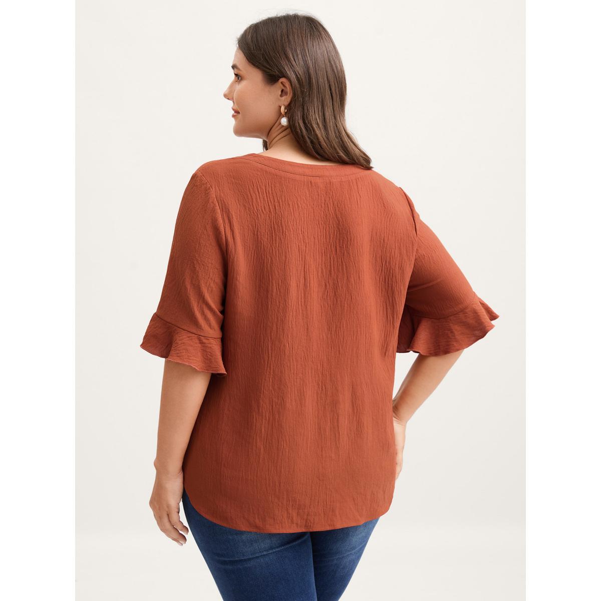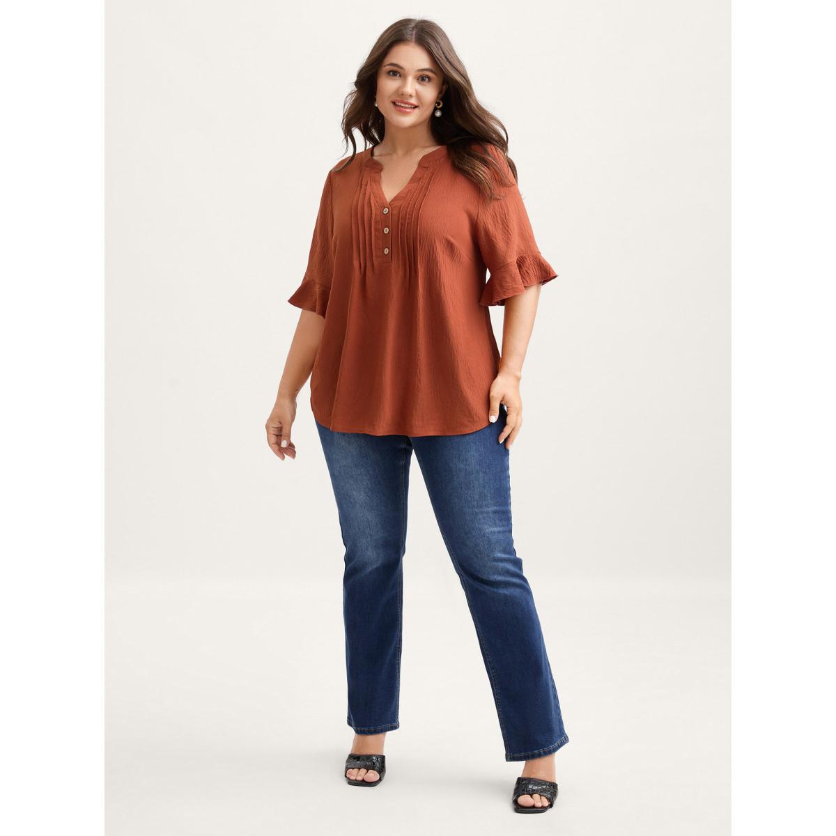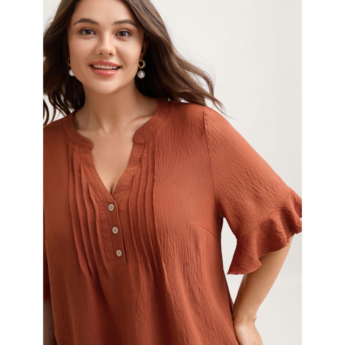 Plus Size Rust Toothpick Pleats Ruffled Sleeve Solid Blouse Women Timeless Half Sleeve Flat collar with V-notch Elegant Blouses BloomChic 18-20/2X