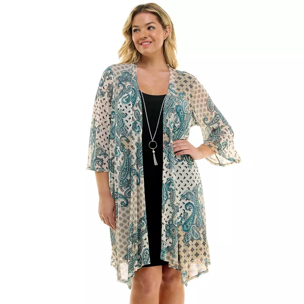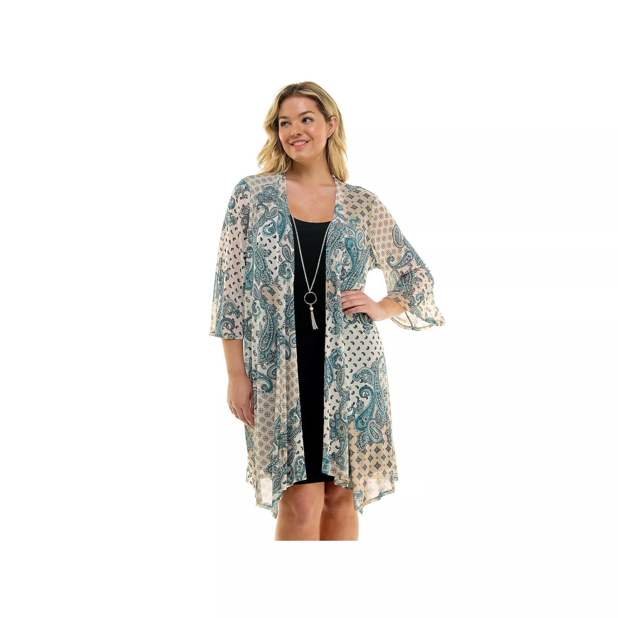 For style youre sure to love, reach for this Womens Sara Michelle Jacket Dress with Necklace.Click on this WOMENS GUIDE to find the perfect fit and more! For style youre sure to love, reach for this Womens Sara Michelle Jacket Dress with Necklace.Click on this WOMENS GUIDE to find the perfect fit and more! FEATURES This is a 2 piece set that comes with a necklace. The jacket is loose fitting over a shift dress. Sheath silhouette No closure - pullover styling Flared sleeves 3/4-length sleeves Unlined ScoopneckFIT & SIZING 2-piece shift dress with a mesh jacket 40-in. length from shoulder to hem Mini length hits at the thigh Contour waistbandFABRIC & CARE Polyester, spandex Machine wash and line dry Imported Size: 1X. Color: Turq/Aqua. Gender: female. Age Group: adult.