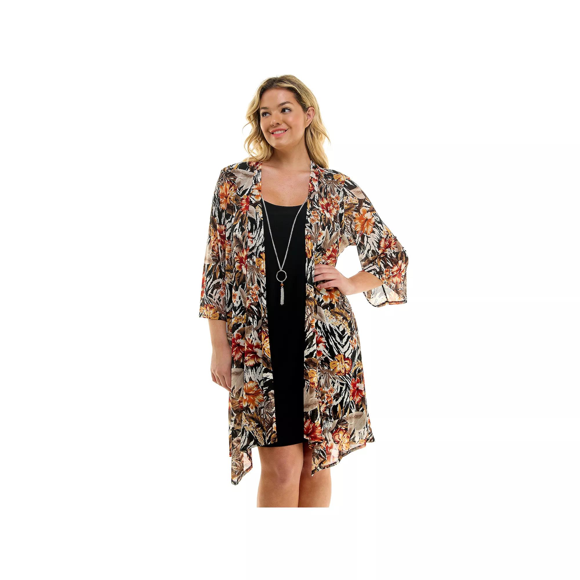 For style you're sure to love, reach for this Women's Sara Michelle Jacket Dress with Necklace.Click on this WOMEN'S GUIDE to find the perfect fit and more! For style you're sure to love, reach for this Women's Sara Michelle Jacket Dress with Necklace.Click on this WOMEN'S GUIDE to find the perfect fit and more! FEATURES This is a 2 piece set that comes with a necklace. The jacket is loose fitting over a shift dress. Sheath silhouette No closure - pullover styling Flared sleeves 3/4-length sleeves Unlined ScoopneckFIT & SIZING 2-piece shift dress with a mesh jacket 40-in. length from shoulder to hem Mini length hits at the thigh Contour waistbandFABRIC & CARE Polyester, spandex Machine wash and line dry Imported Size: 1X. Color: Dark Brown. Gender: female. Age Group: adult.
