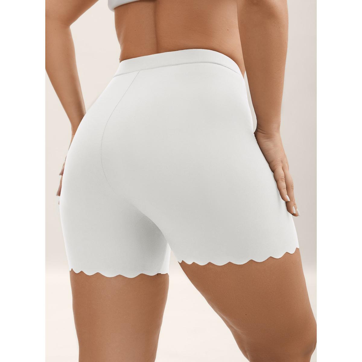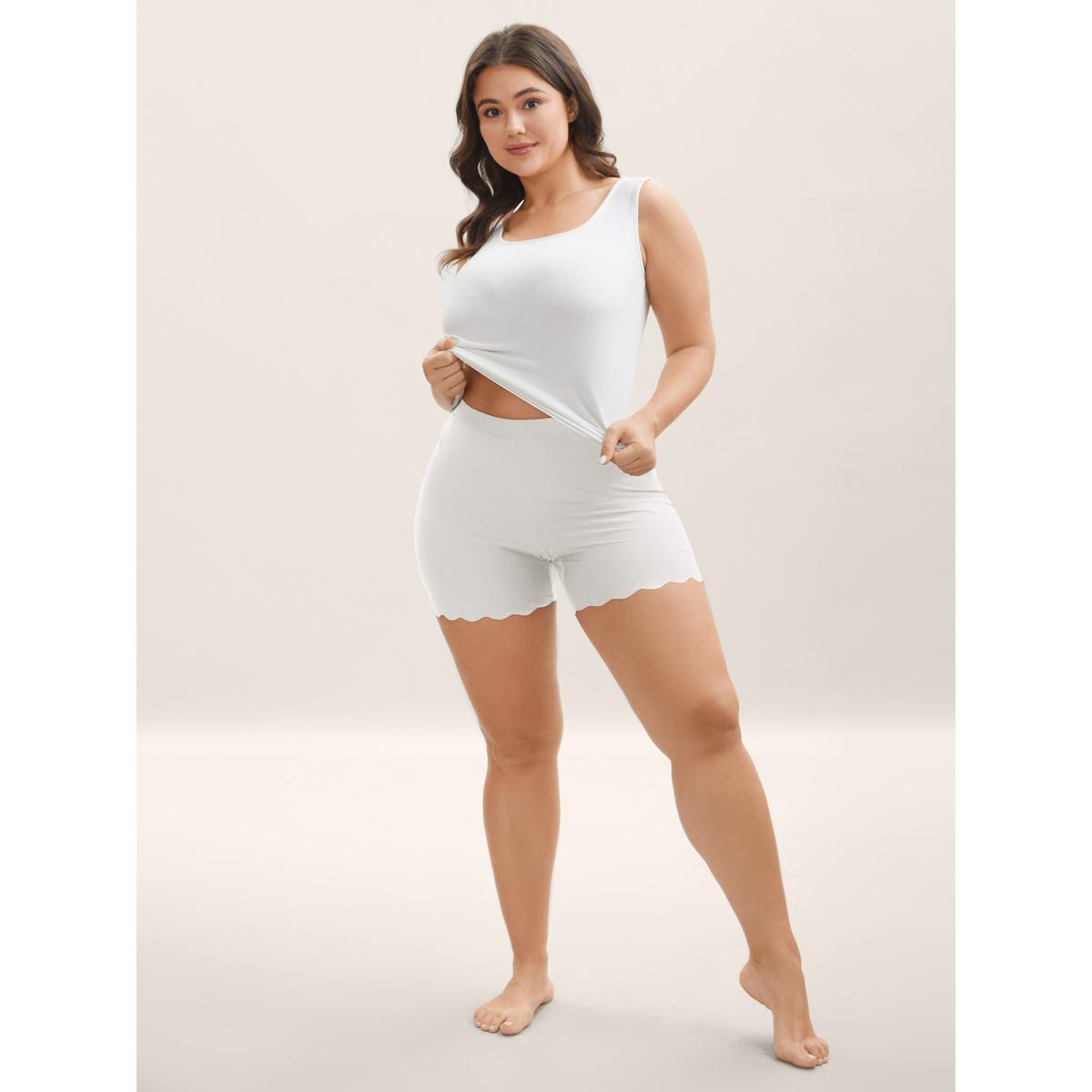 Plus Size Scalloped Trim Stretchy Skinny-Fit Leggings Women WhiteSmoke Casual Skinny Everyday-Casual Shorts BloomChic 22-24/3X