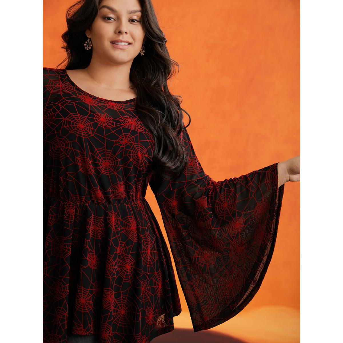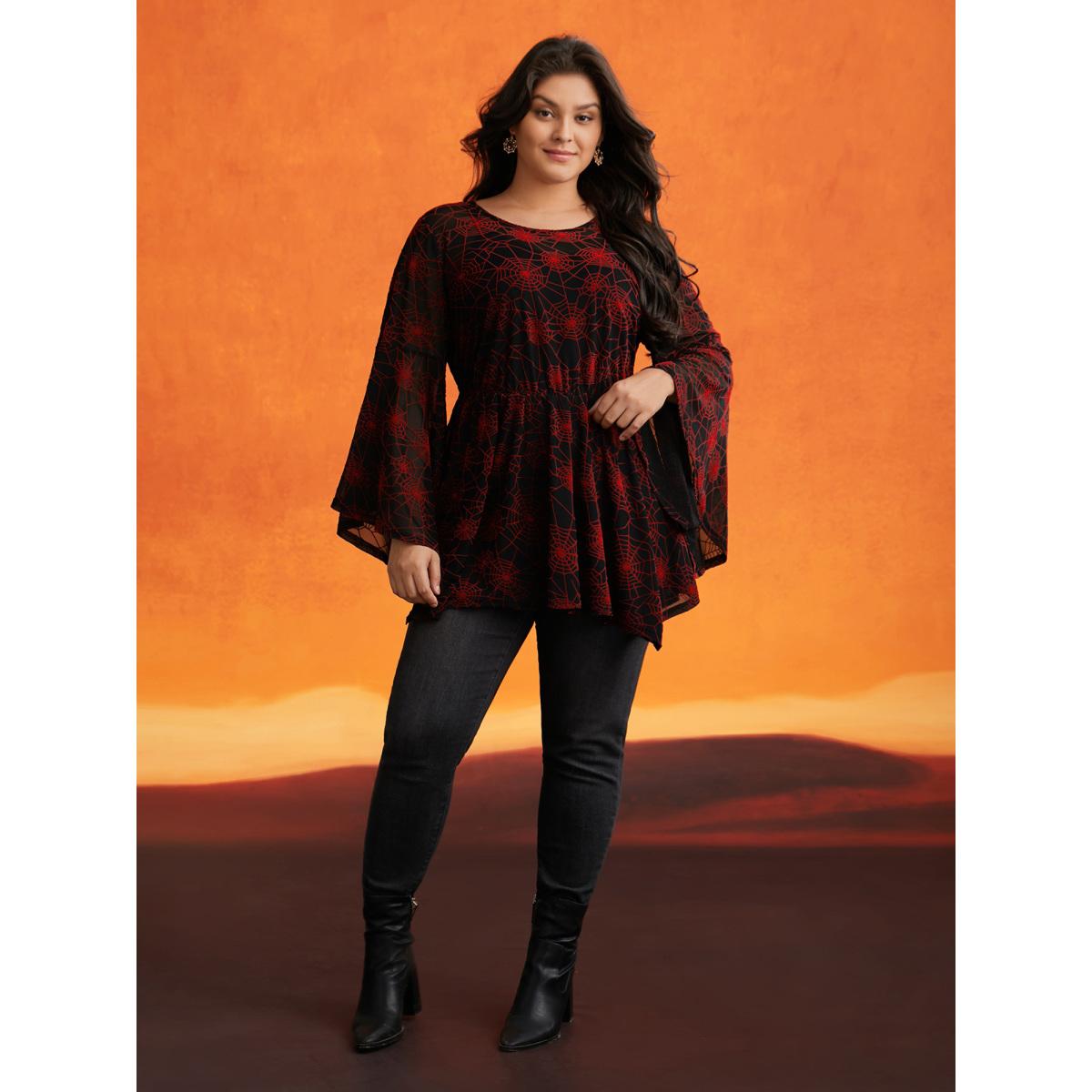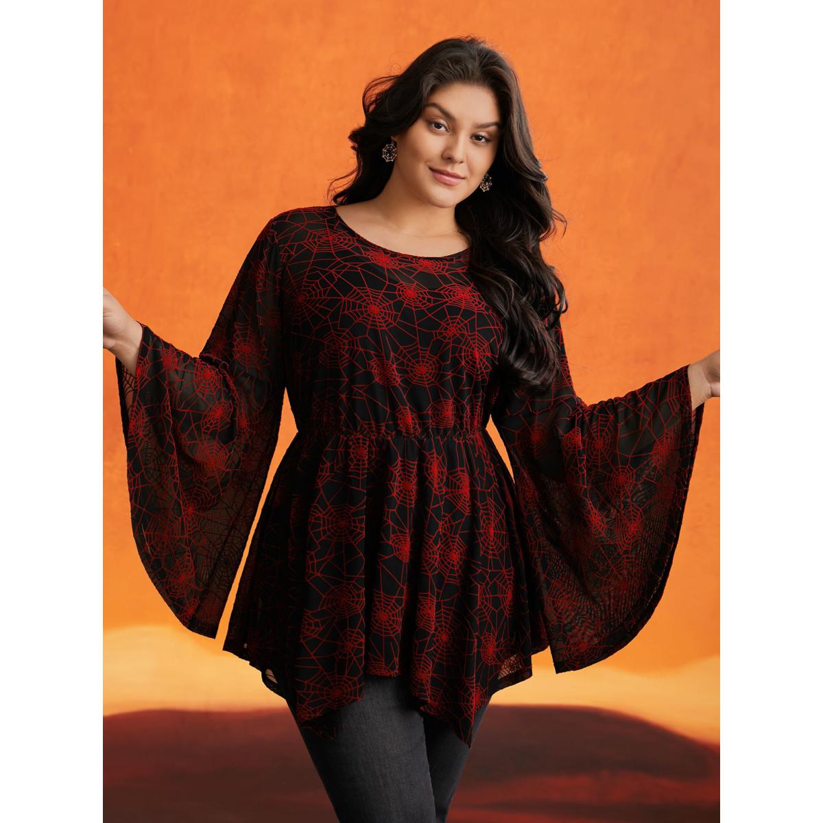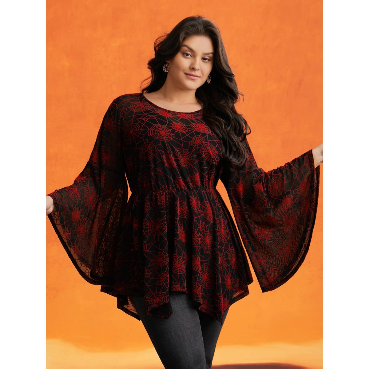 Plus Size Scarlet Elastic Mesh Webbed Wonder Blouse Women Elegant Extra Long Sleeve Round Neck Everyday Blouses BloomChic 22-24/3X