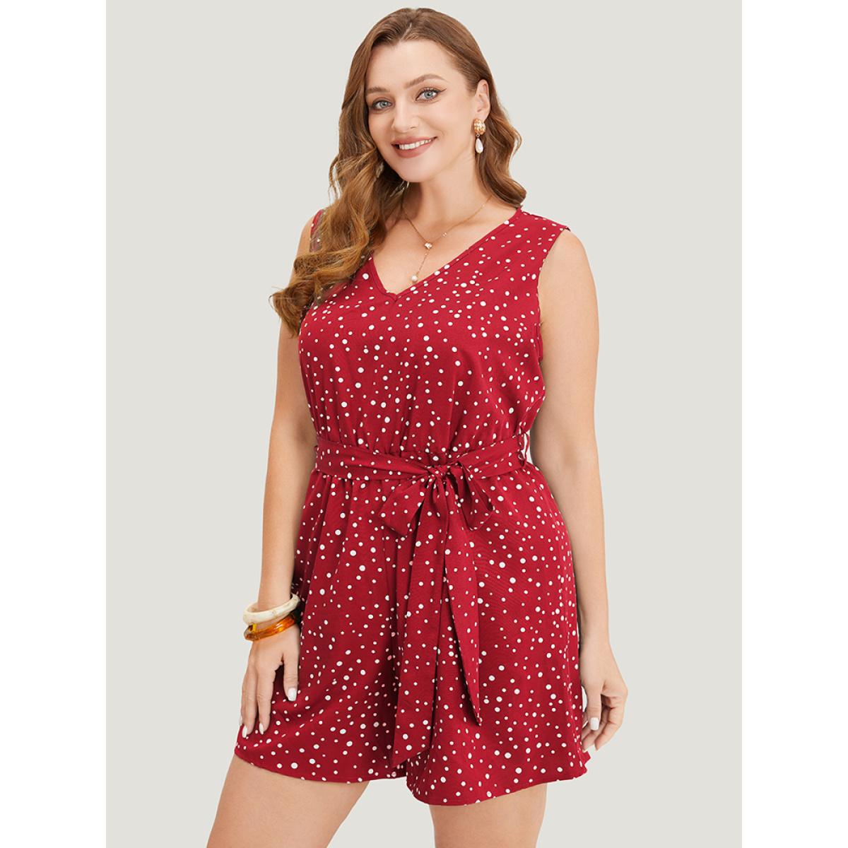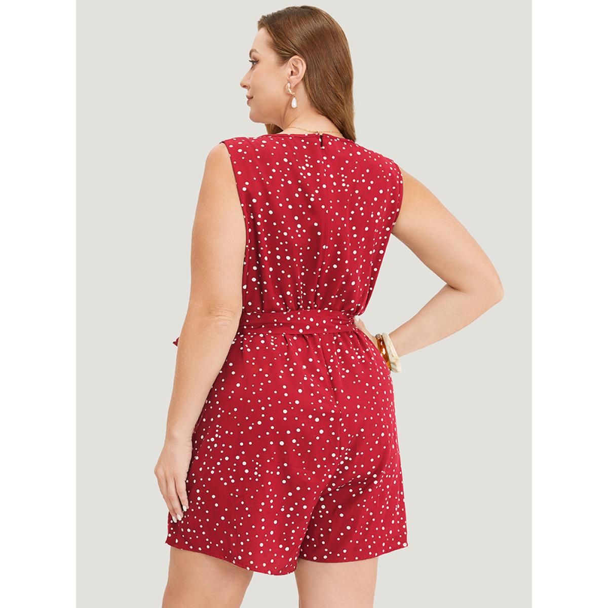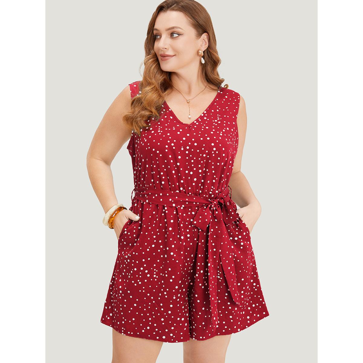 Plus Size Scarlet Polka Dot V Neck Pocket Sleeveless Belted Romper Women Elegant Sleeveless V-neck Everyday Loose Jumpsuits BloomChic 26/4X