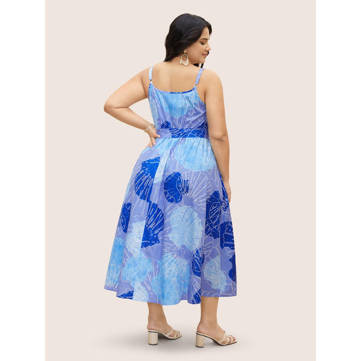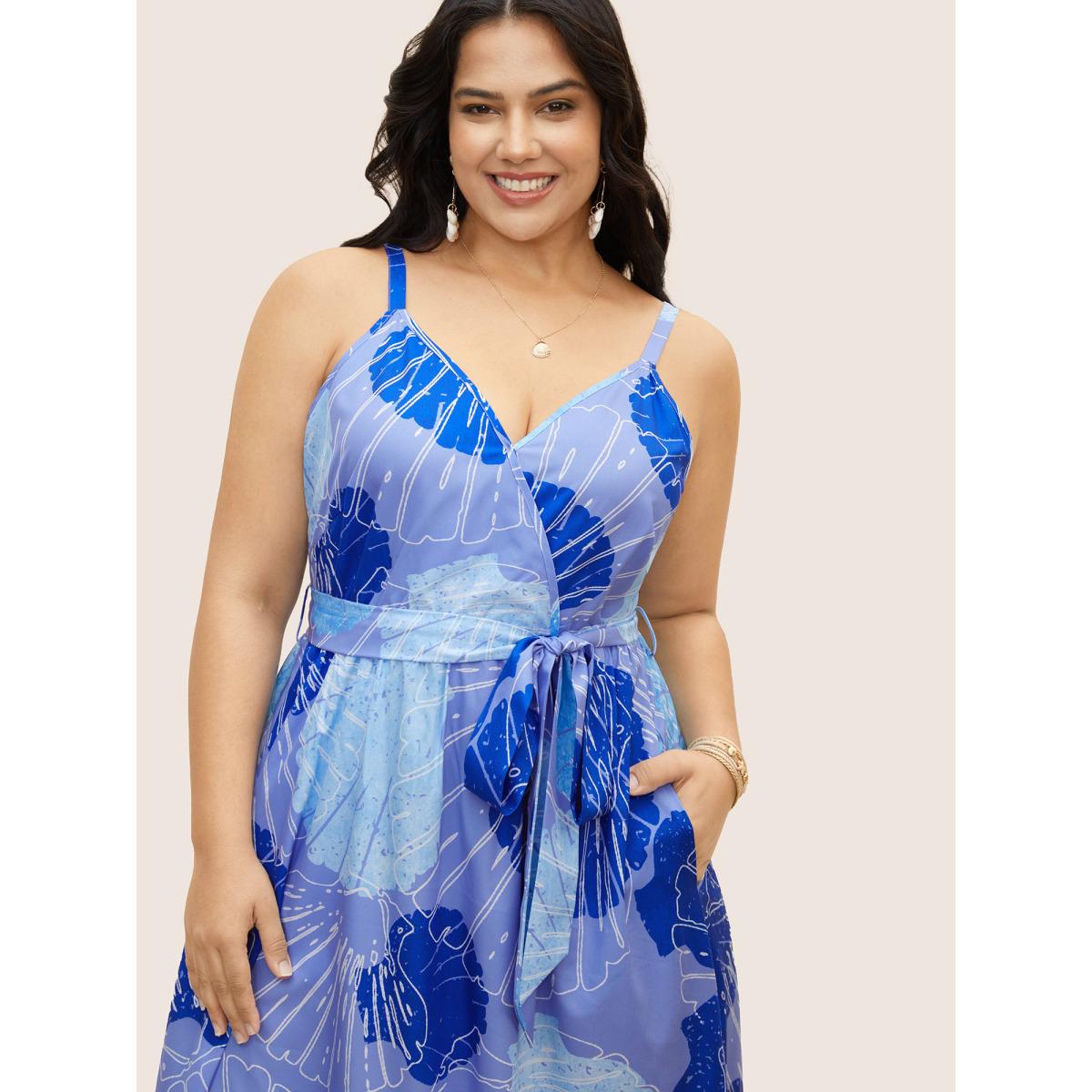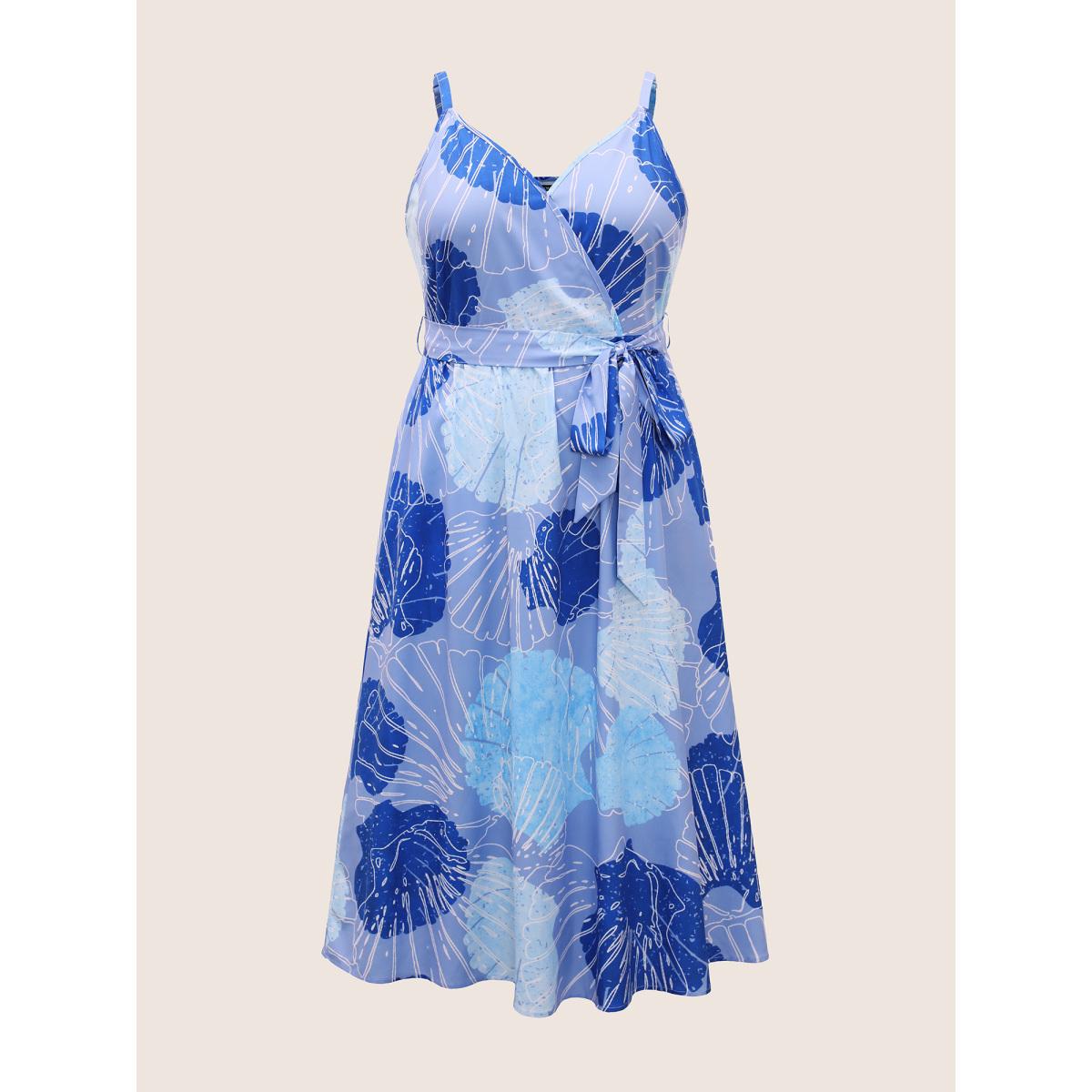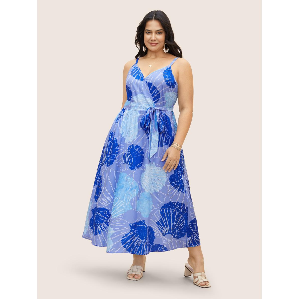 Plus Size Sea Shells Overlap Collar Cami Maxi Dress LightBlue Women Resort Belted Overlap Collar Sleeveless Curvy BloomChic 26/4X