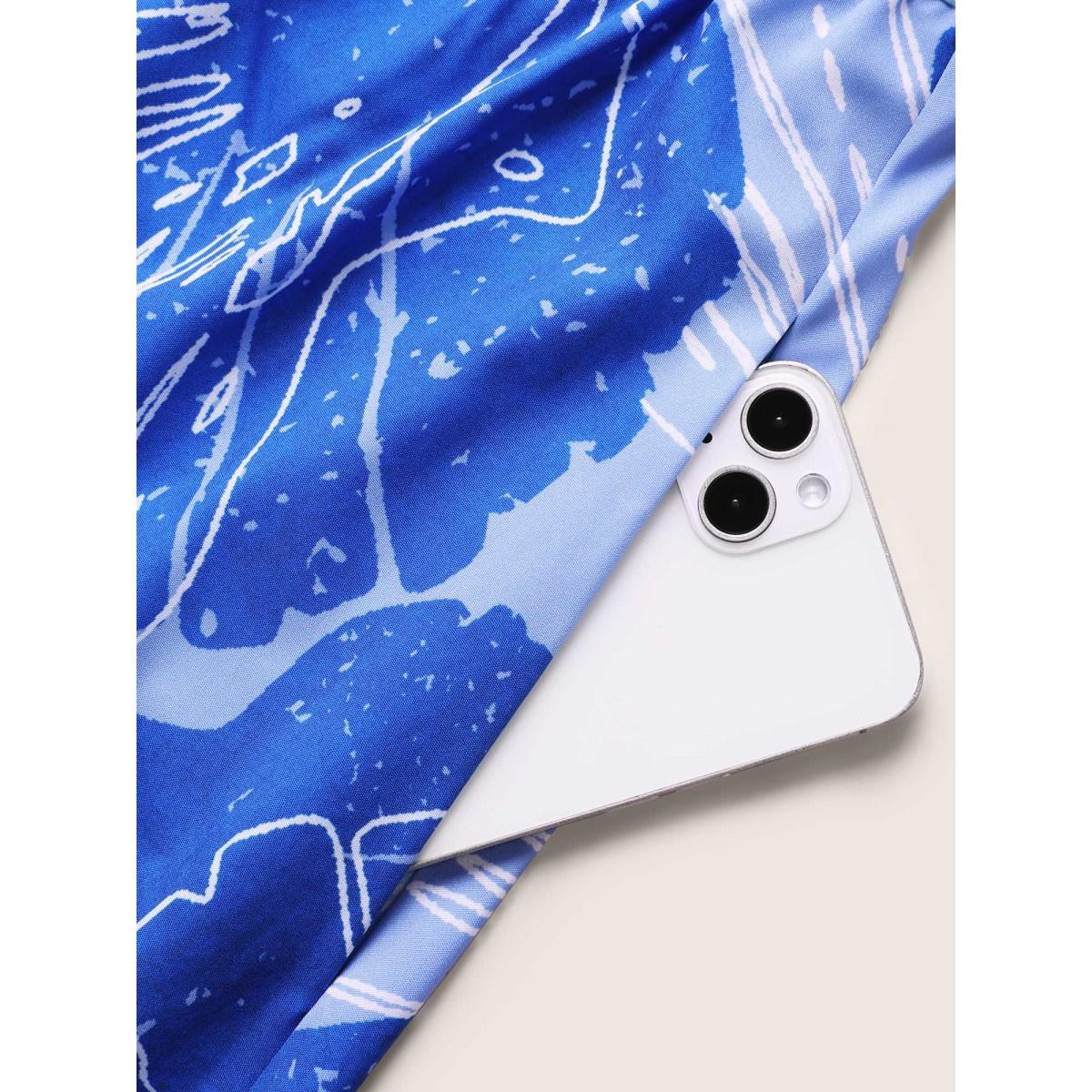 Plus Size Boho Print Sheer Back Adjustable Buckle Swim Dress Women's Swimwear Indigo Beach Bodycon Overlap Collar High stretch Curve Swim Dresses BloomChic 10/M