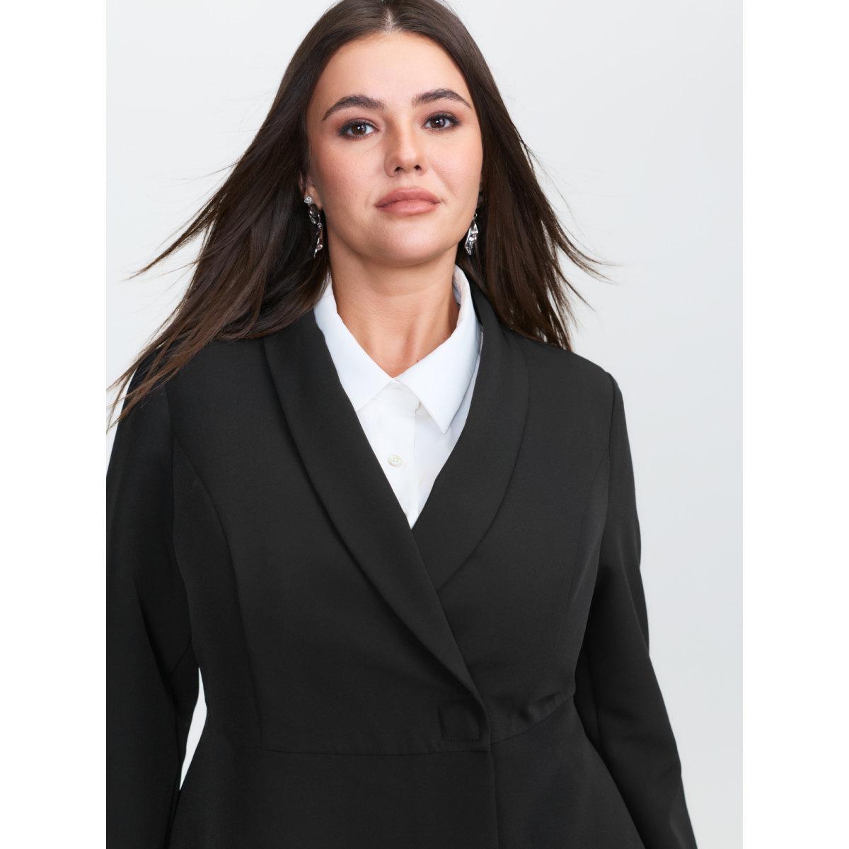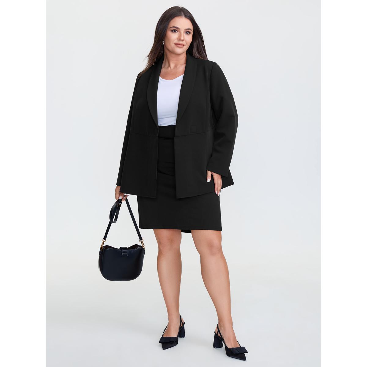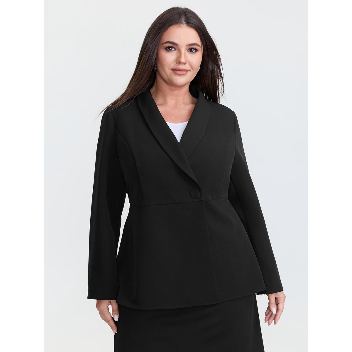 Plus Size Semi Stretchy Pockets Curvy Hem Blazer Black Women Office Sleeve Long Sleeve Suit Collar 22-24/3X Side seam pocket Office Blazers BloomChic